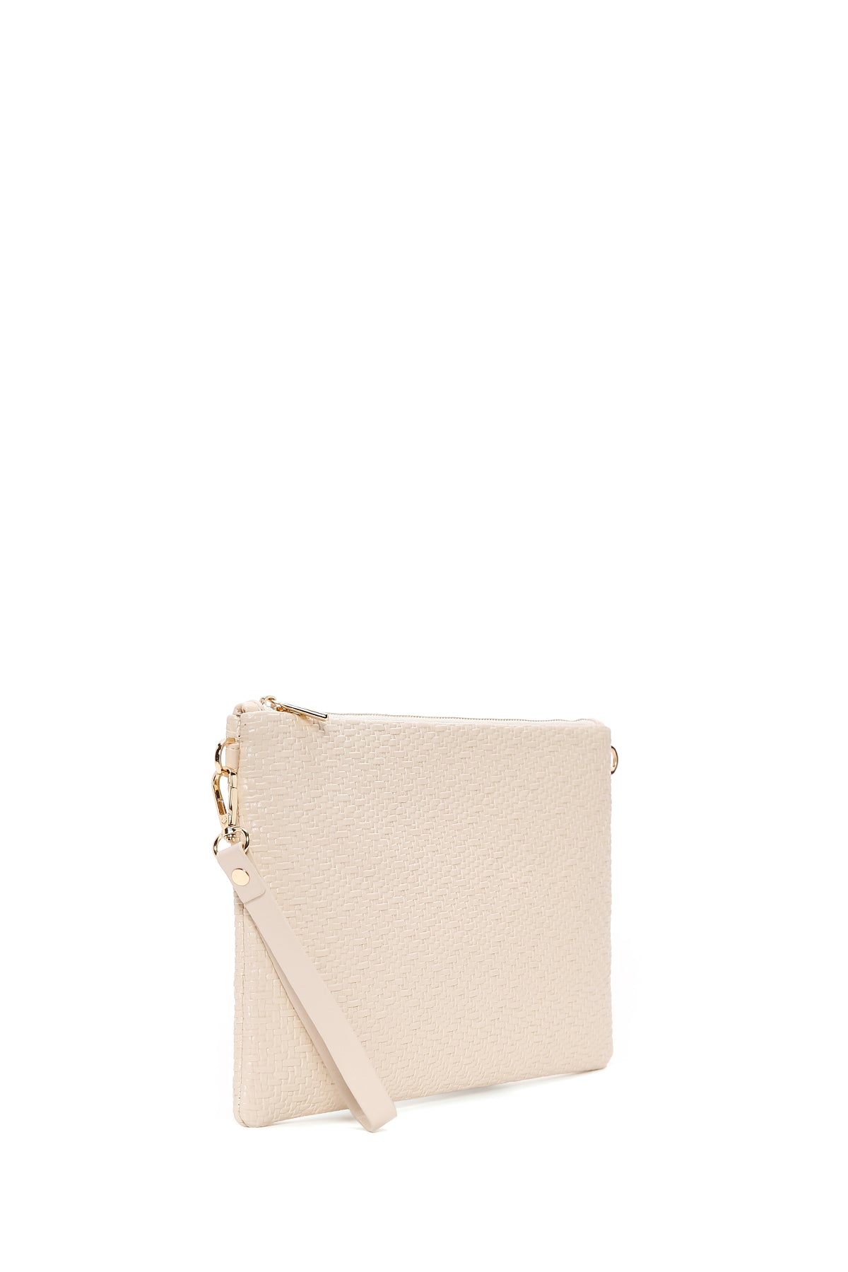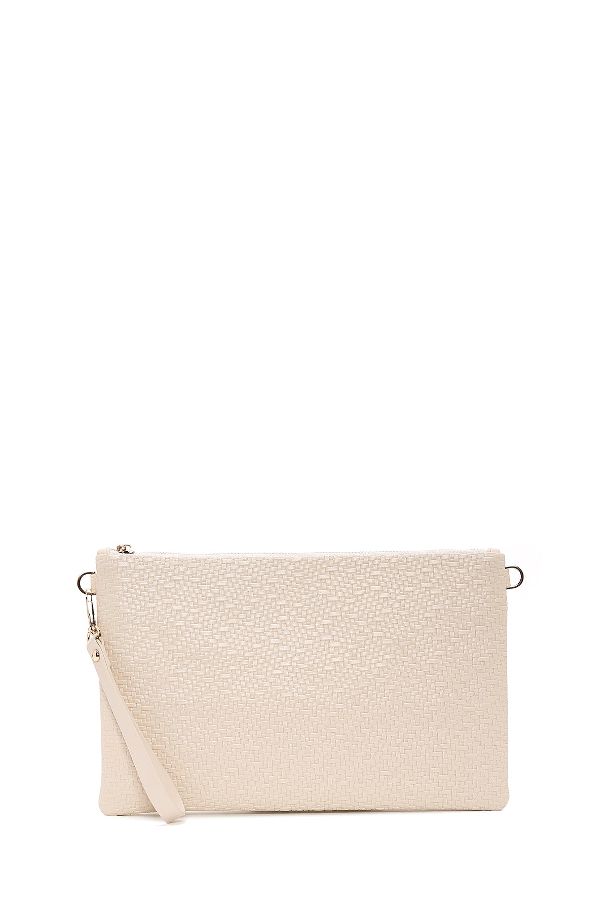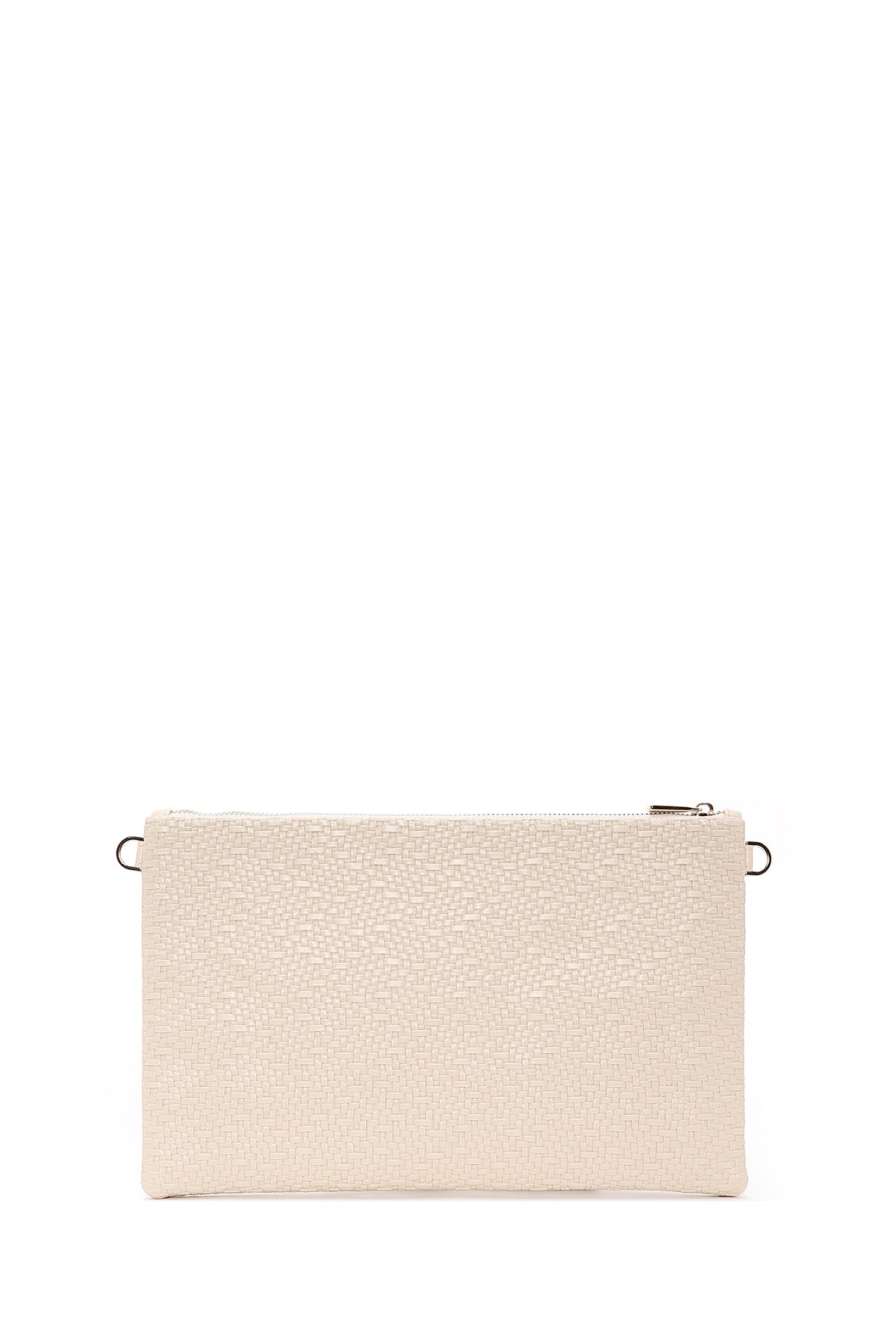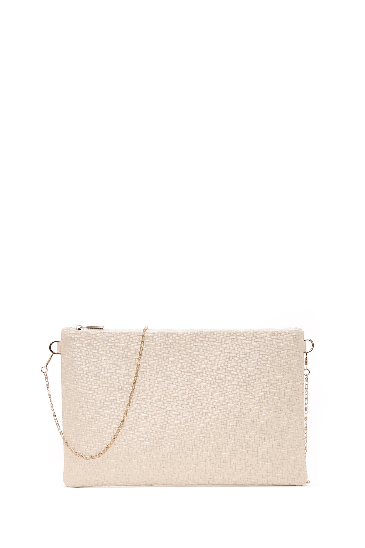 Kadın Krem Uzun Zincir Askılı Örgülü Portföy Çanta