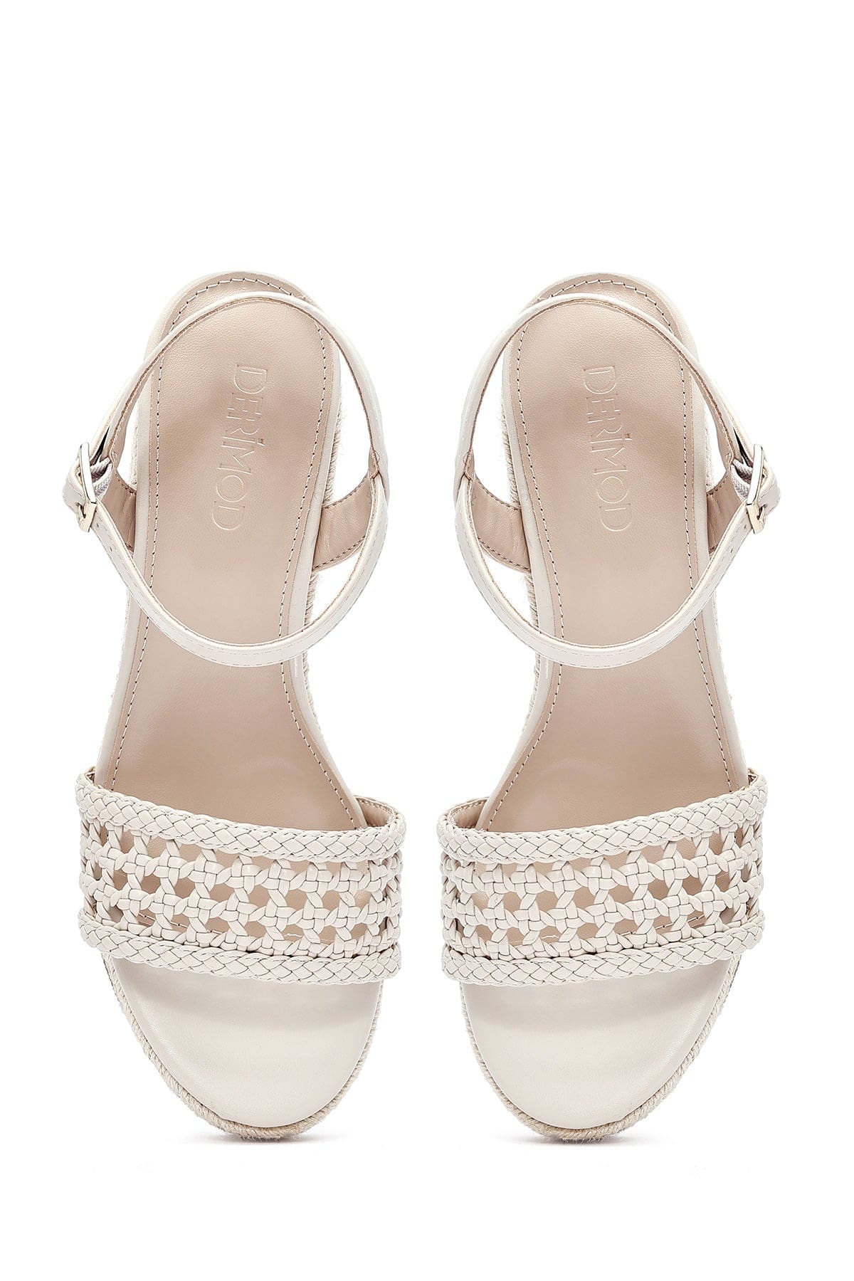 Kadın Krem Bilekten Tokalı Örgülü Dolgu Topuklu Espadril Sandalet
