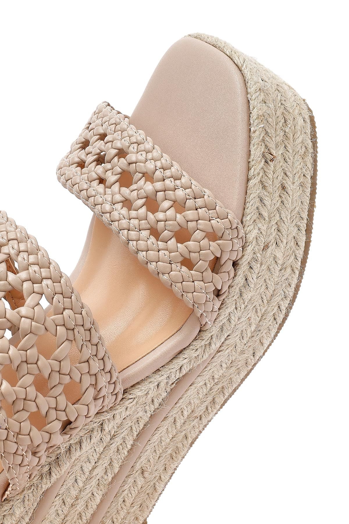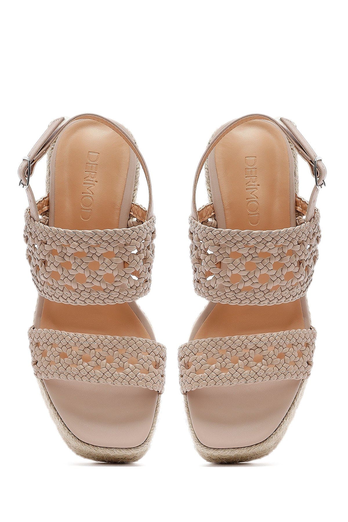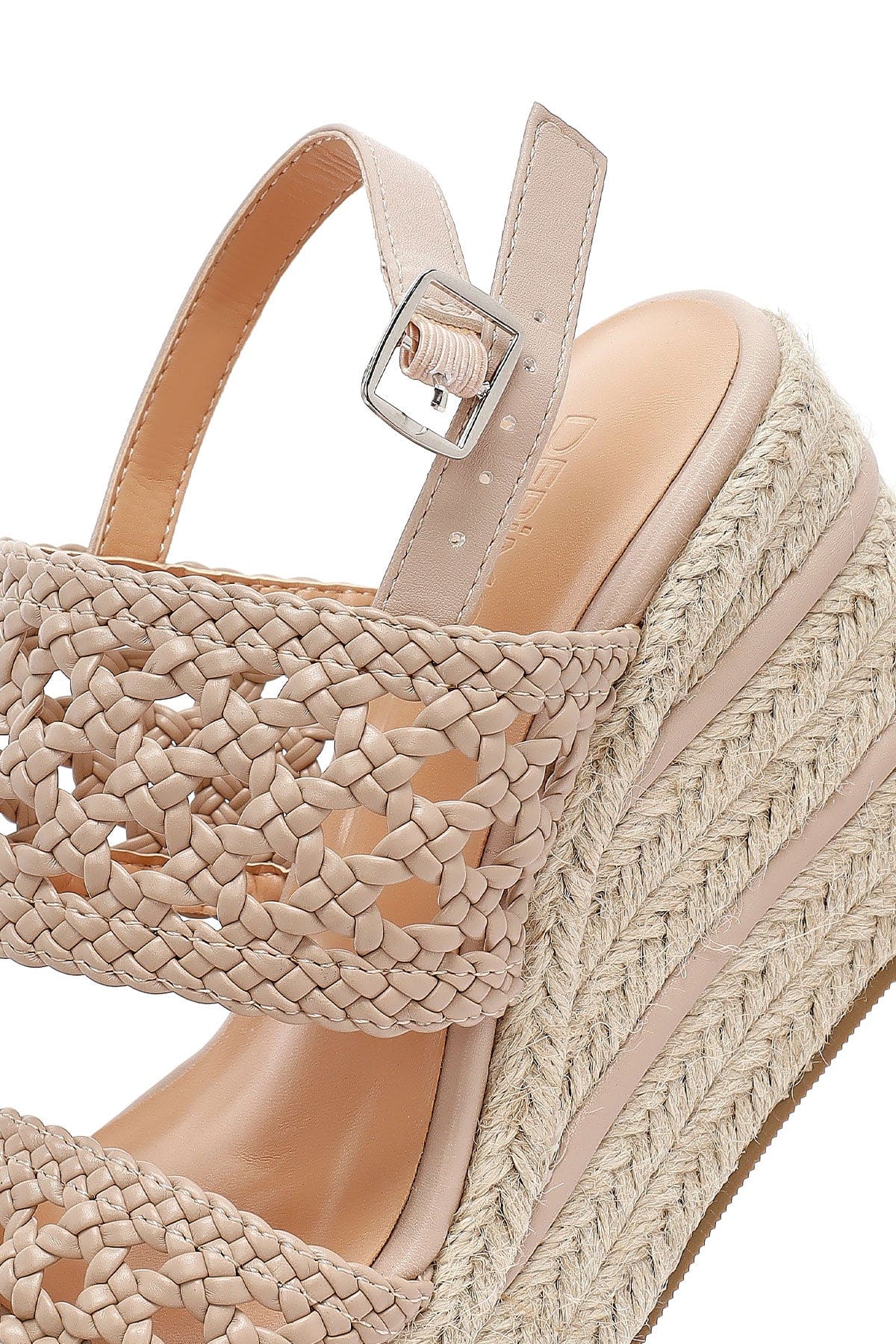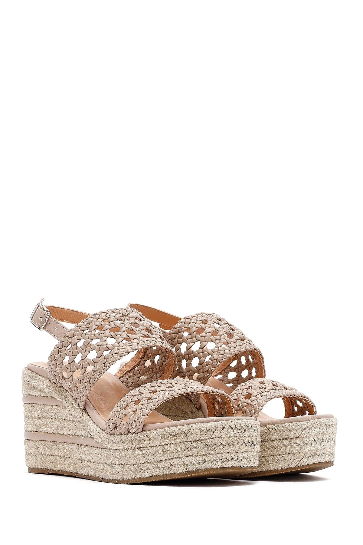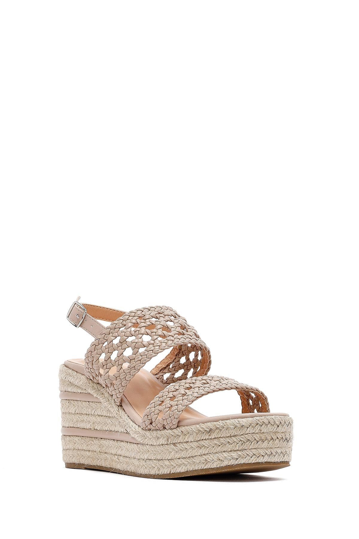 Kadın Krem Örgü Bilekten Tokalı Dolgu Topuklu Espadril Sandalet