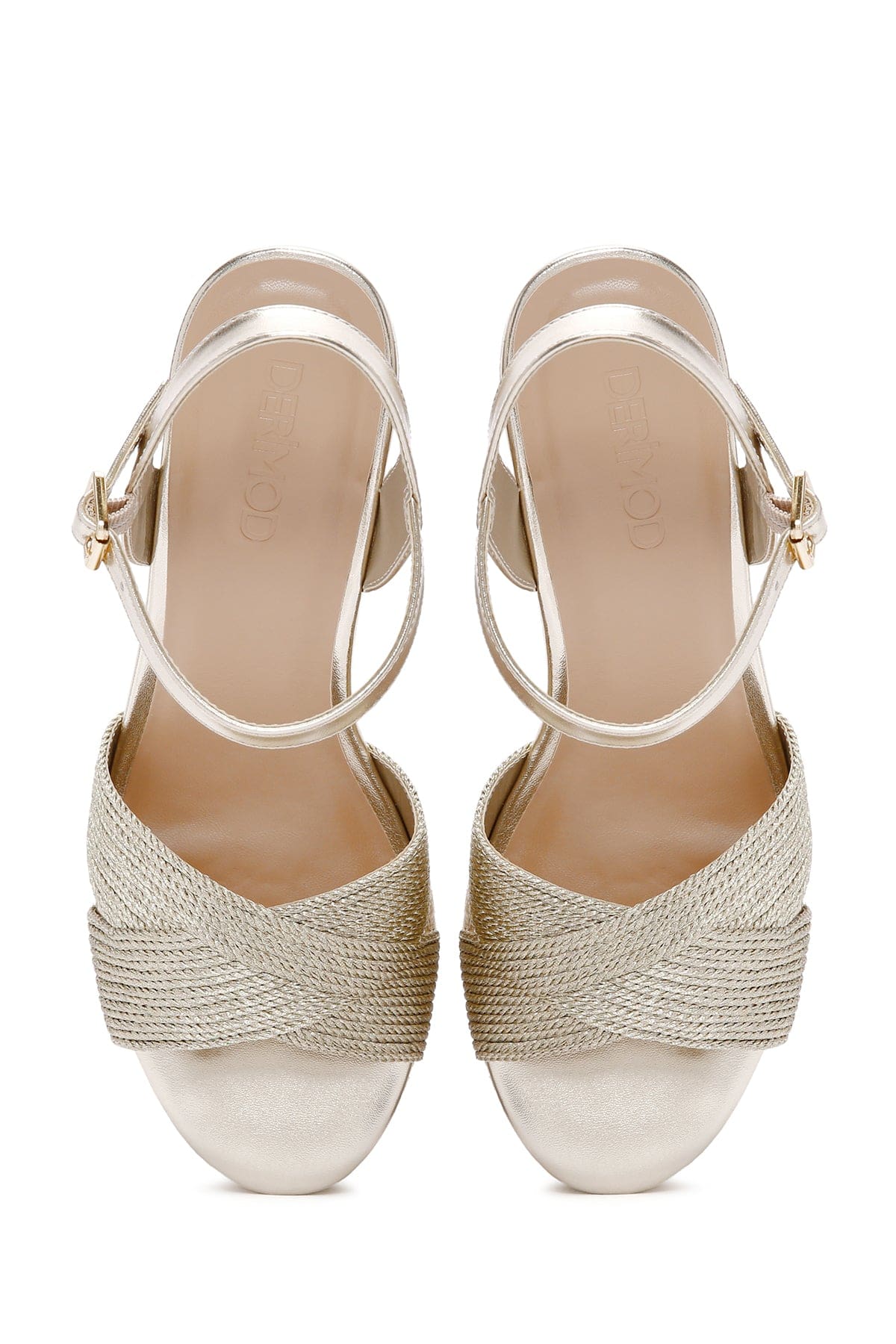 Kadın Altın Bilekten Bantlı Metalik Dolgu Topuklu Espadril