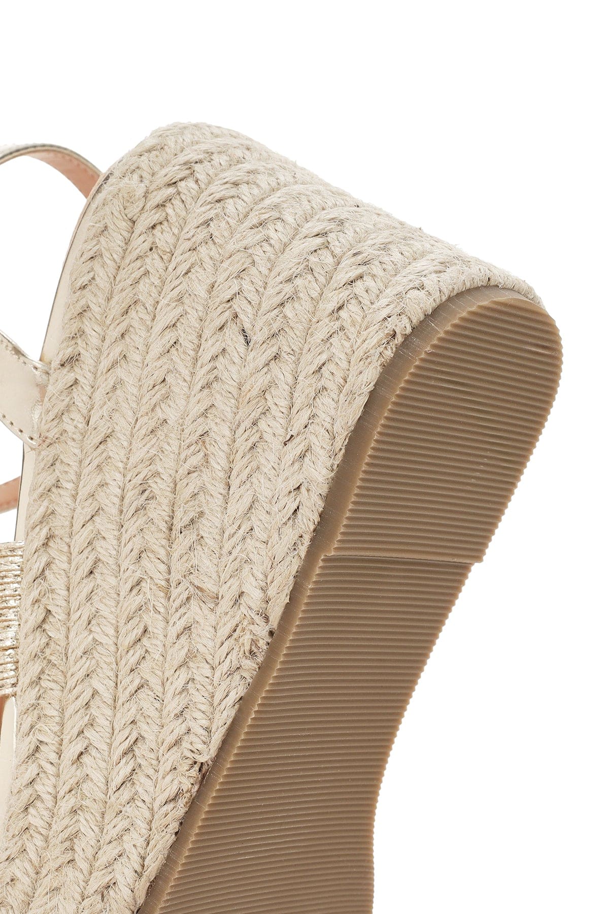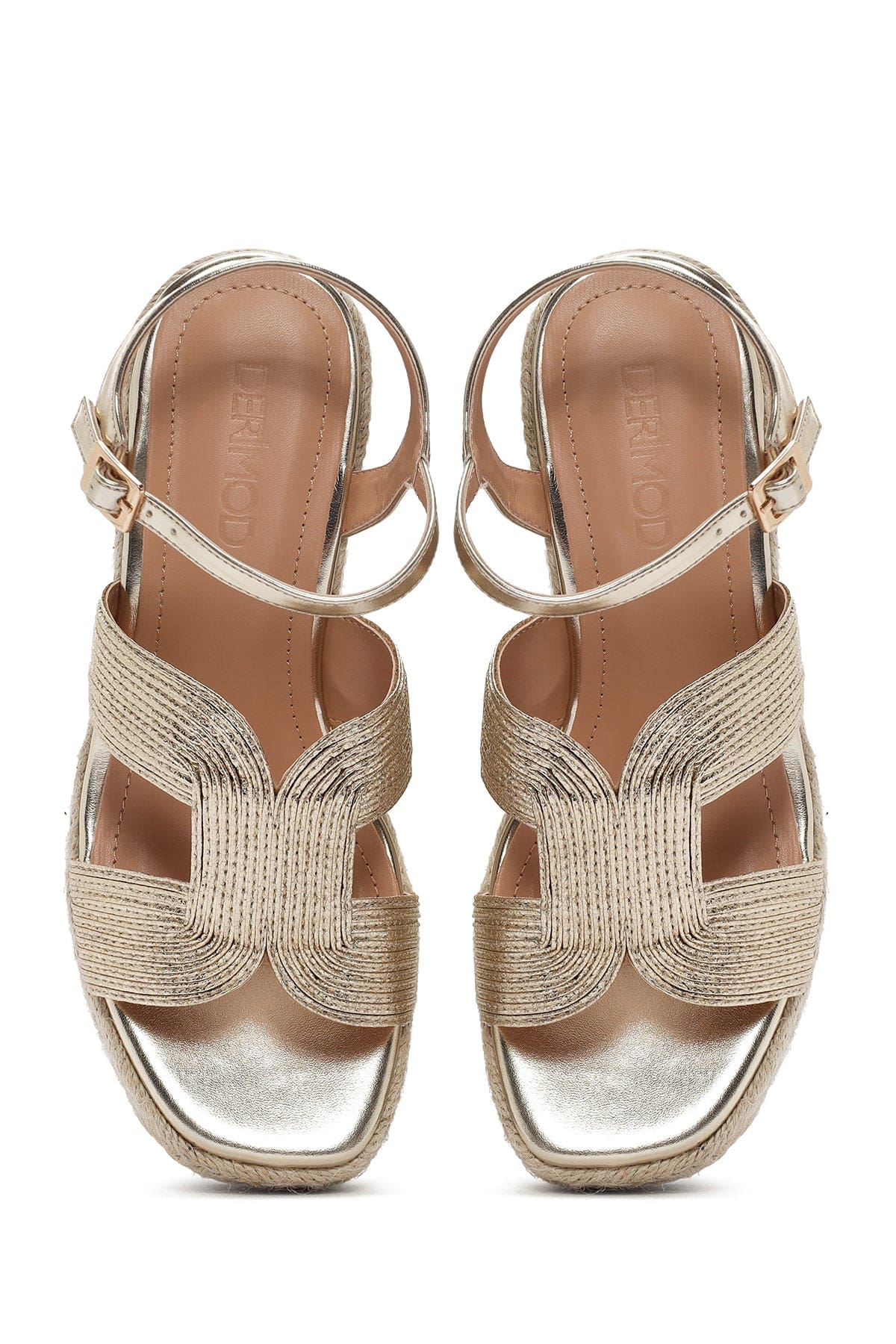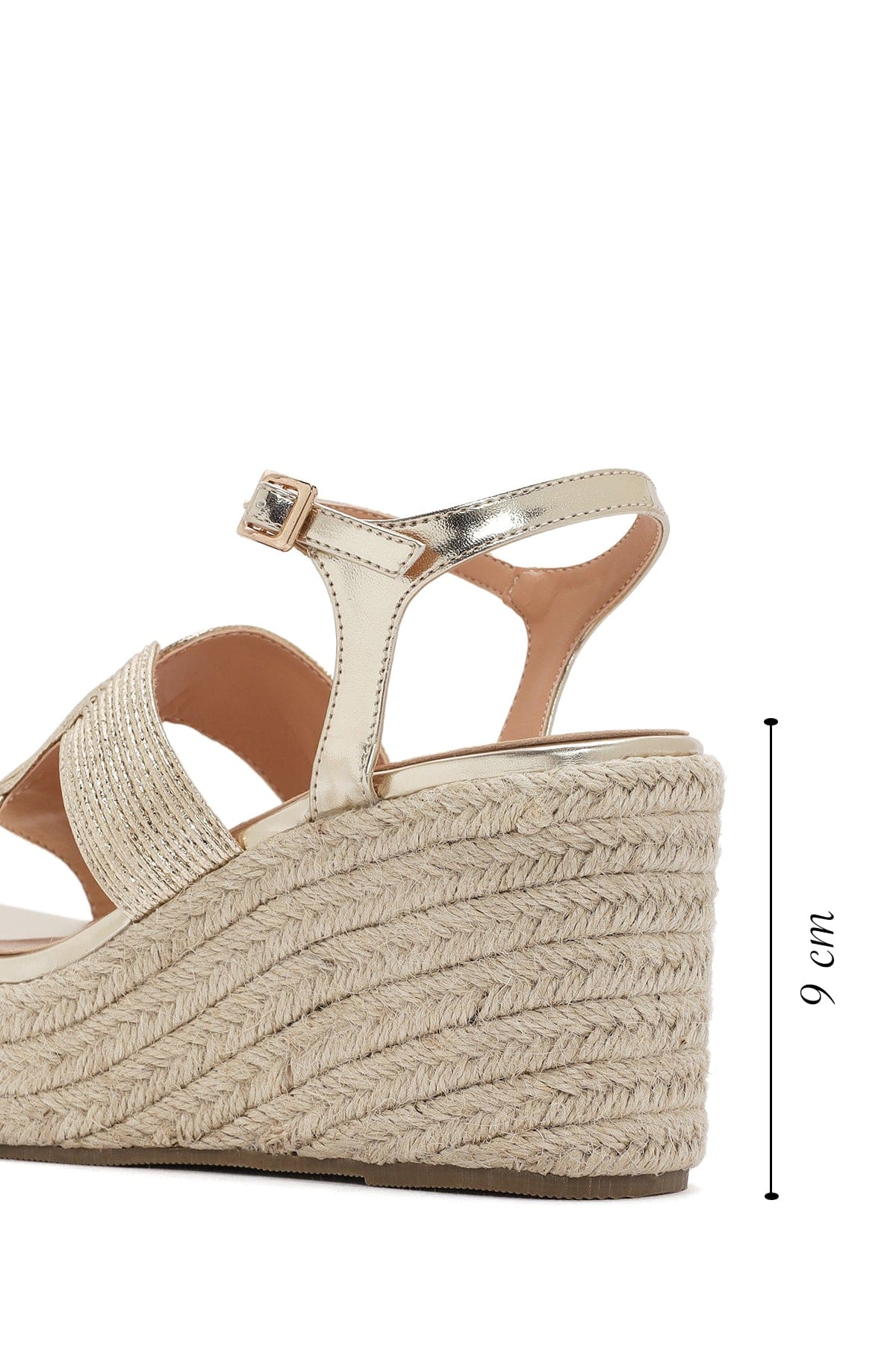 Kadın Altın Bilekten Bantlı Metalik Dolgu Topuklu Espadril