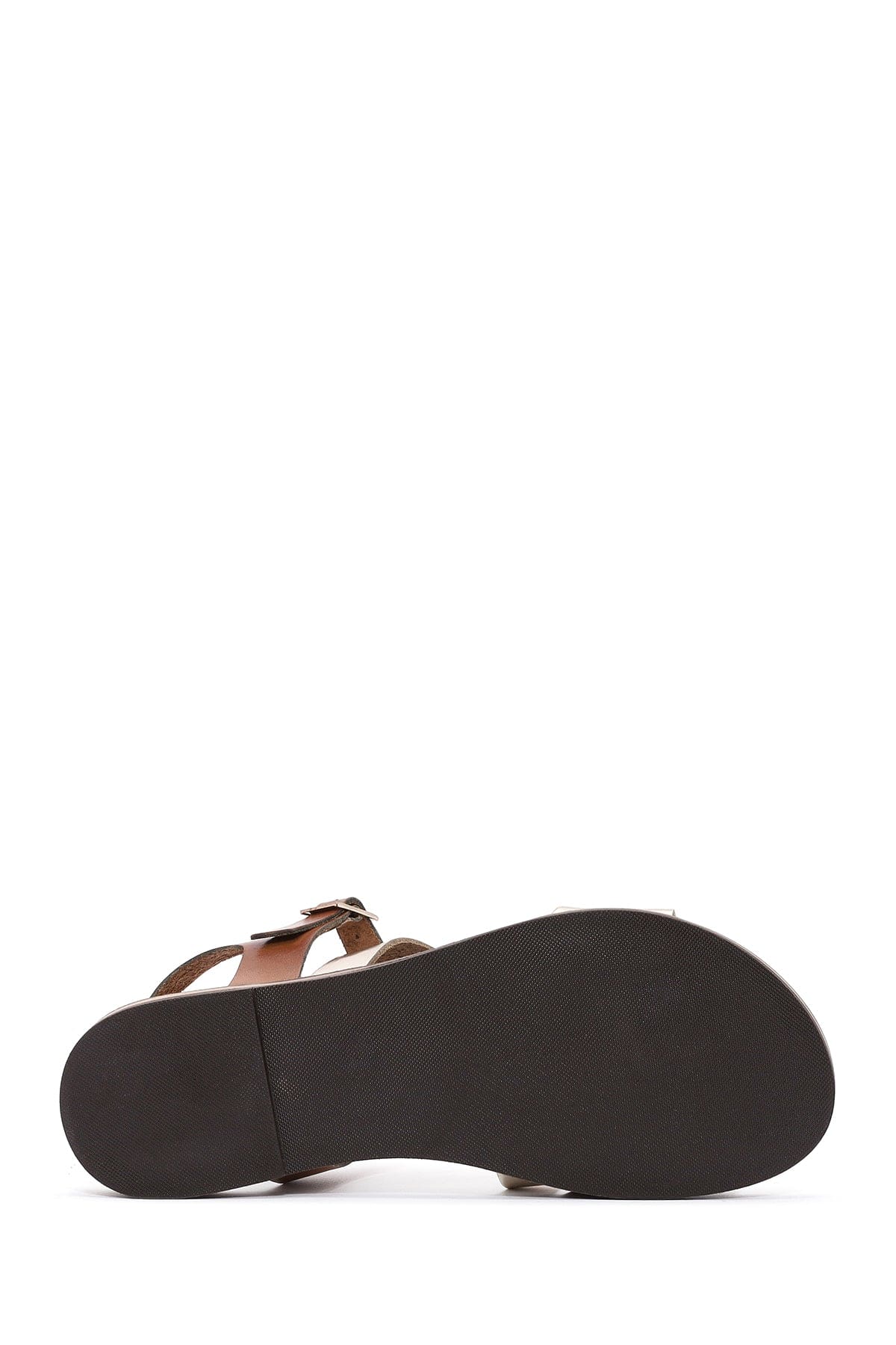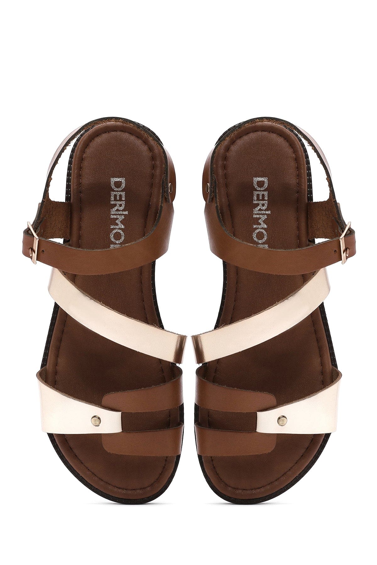 Kadın Altın Tokalı Metalik Deri Bodrum Sandaleti