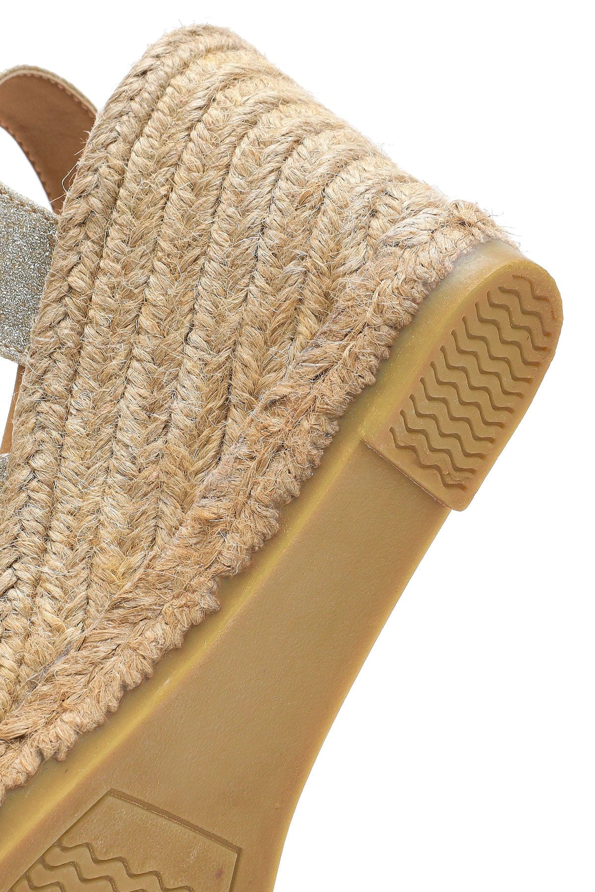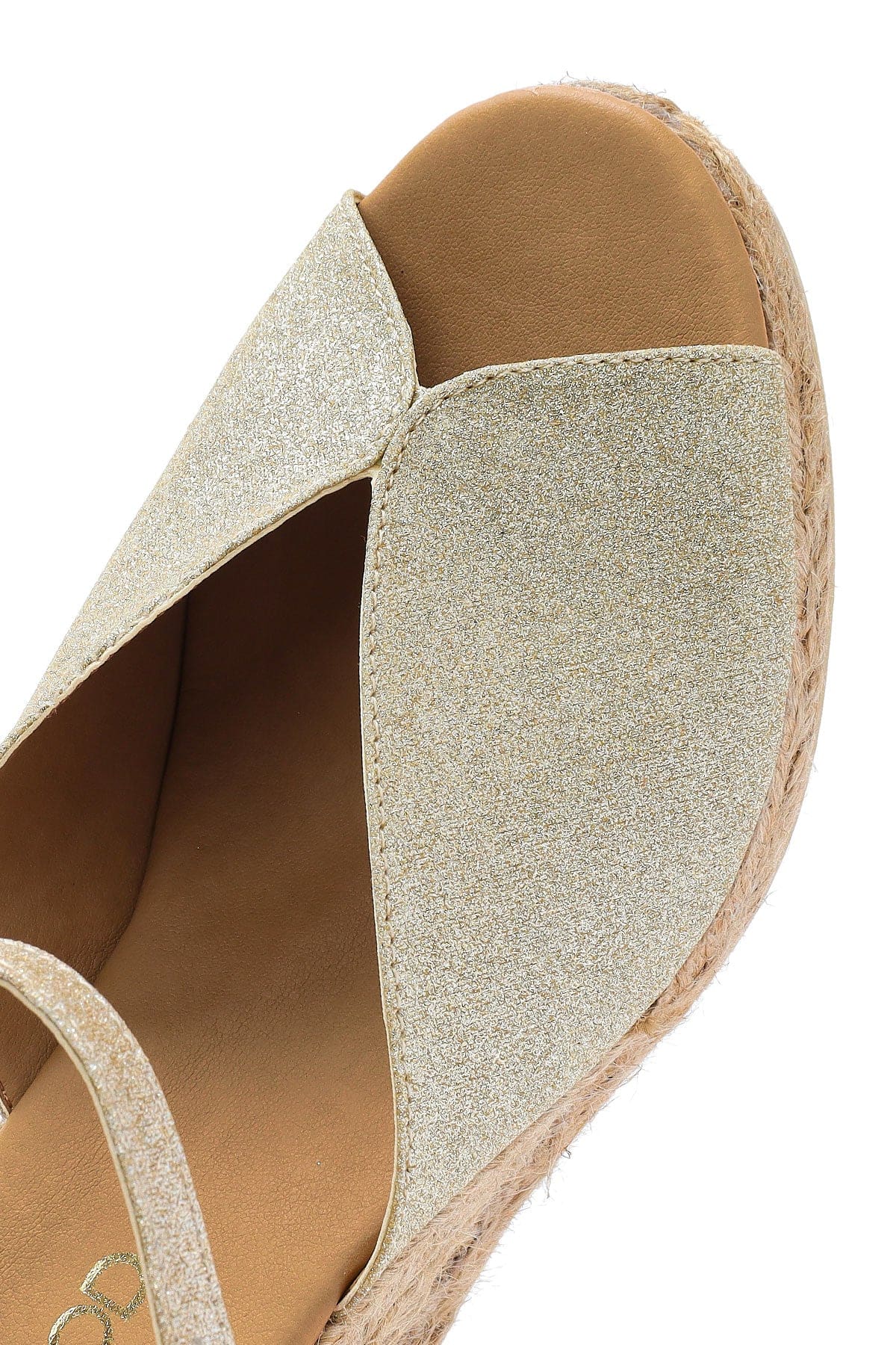 Kadın Altın Simli Bilekten Tokalı Dolgu Topuklu Espadril Sandalet