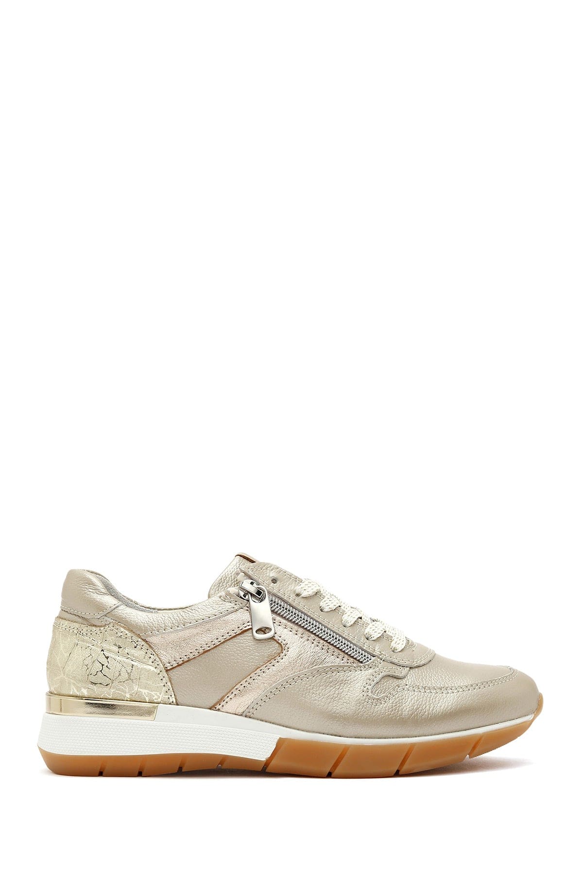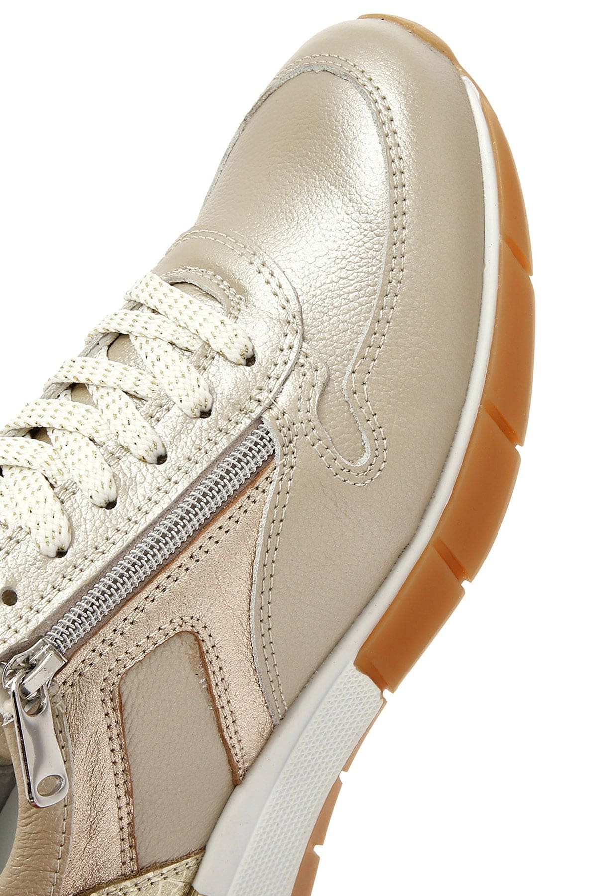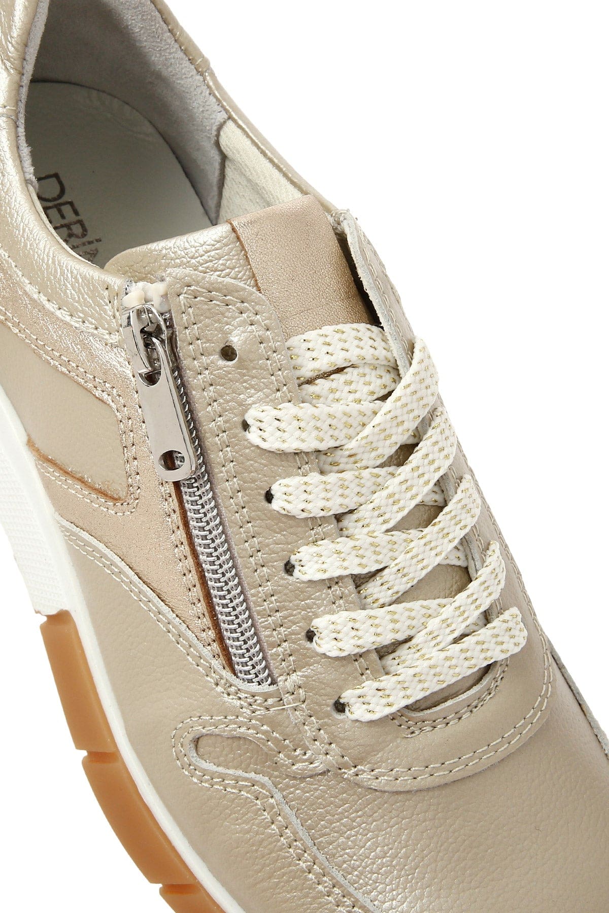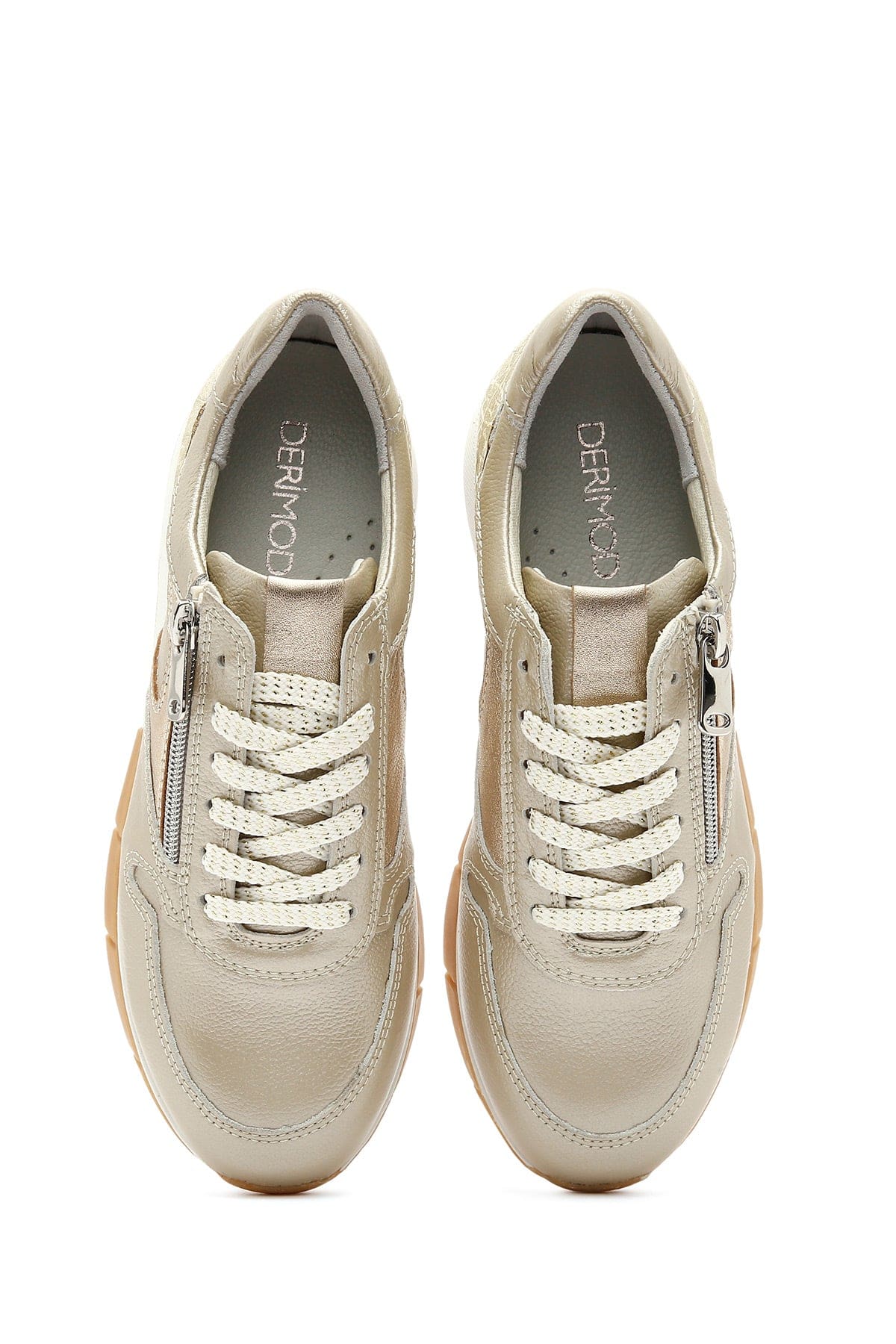 Kadın Altın Bağcıklı Yandan Fermuarlı Deri Sneaker