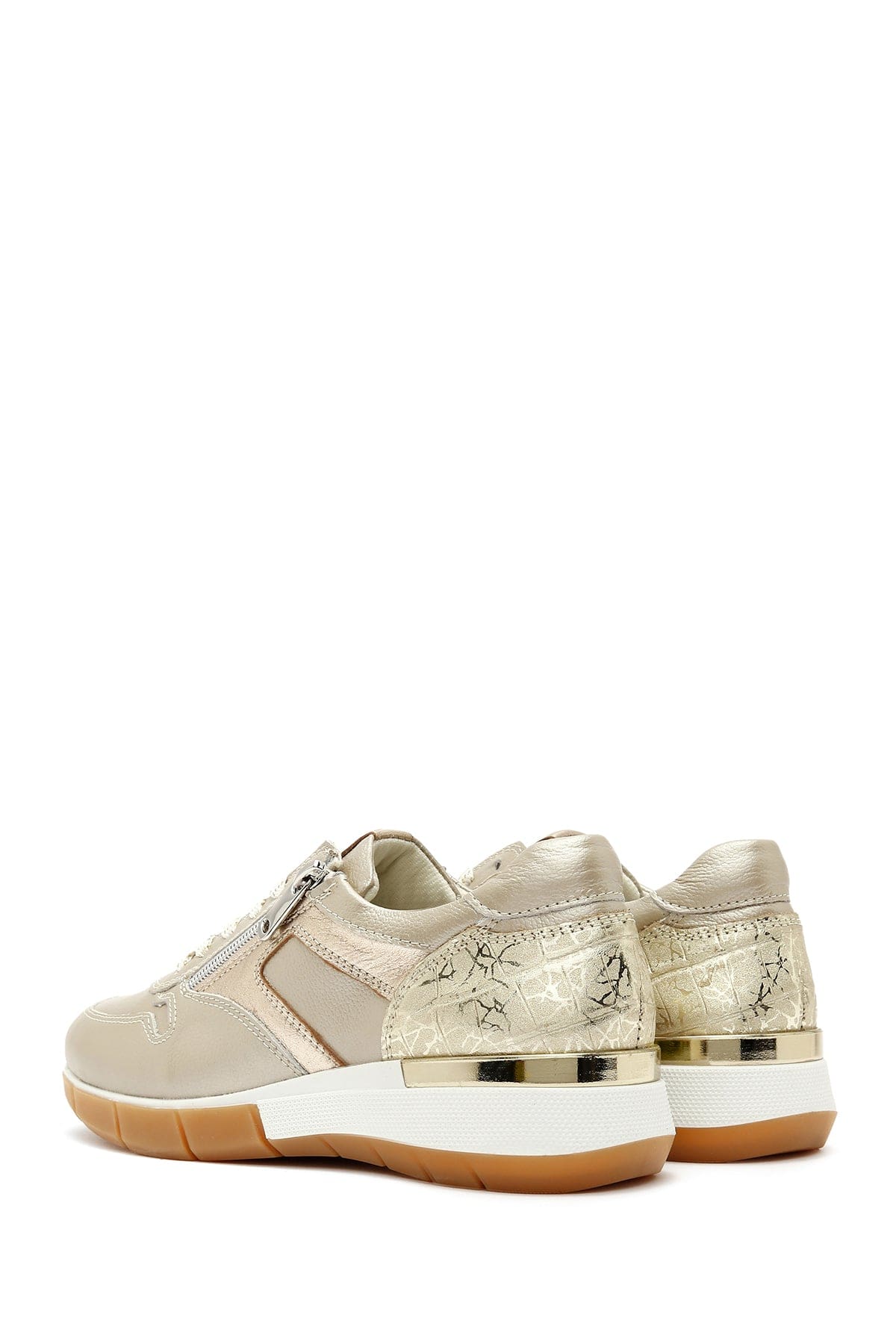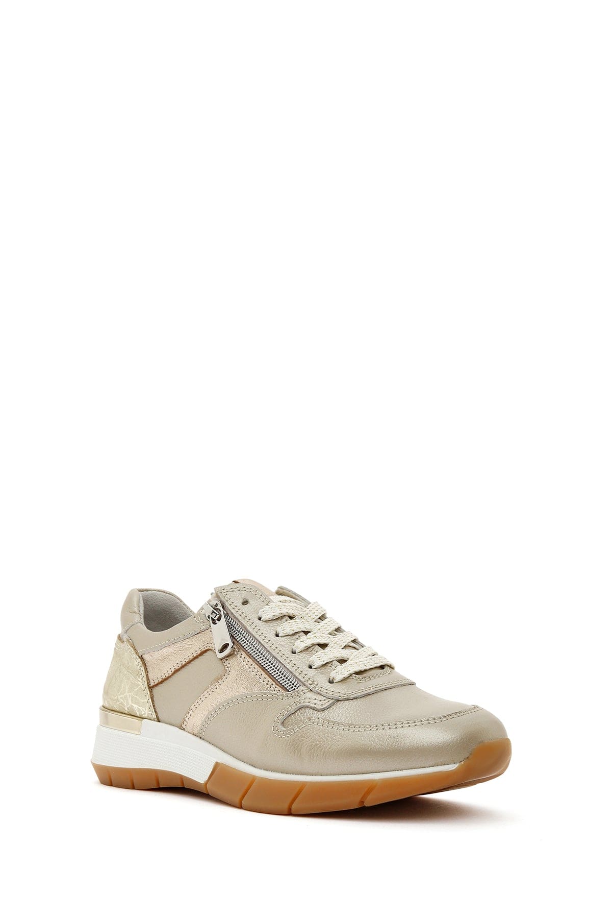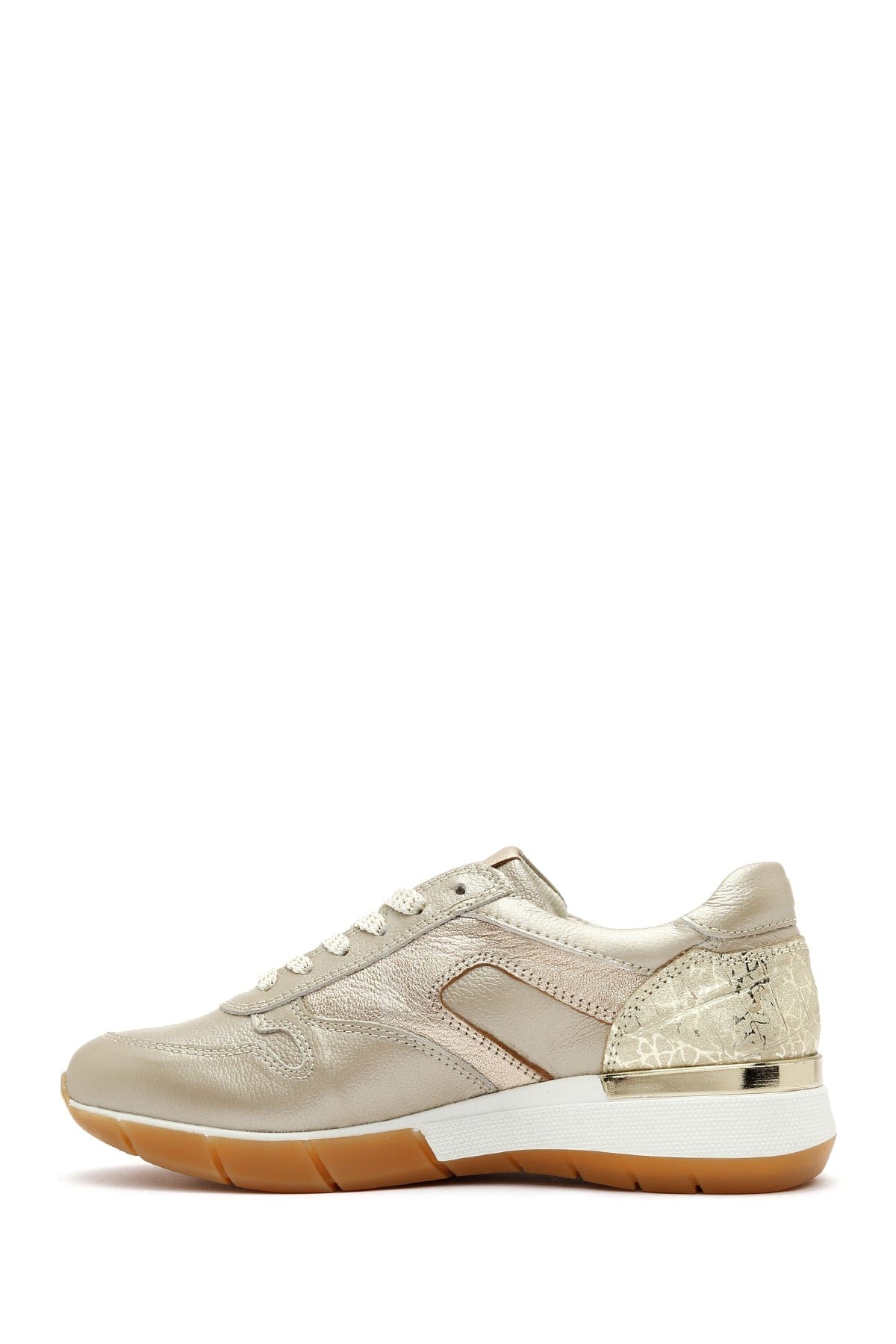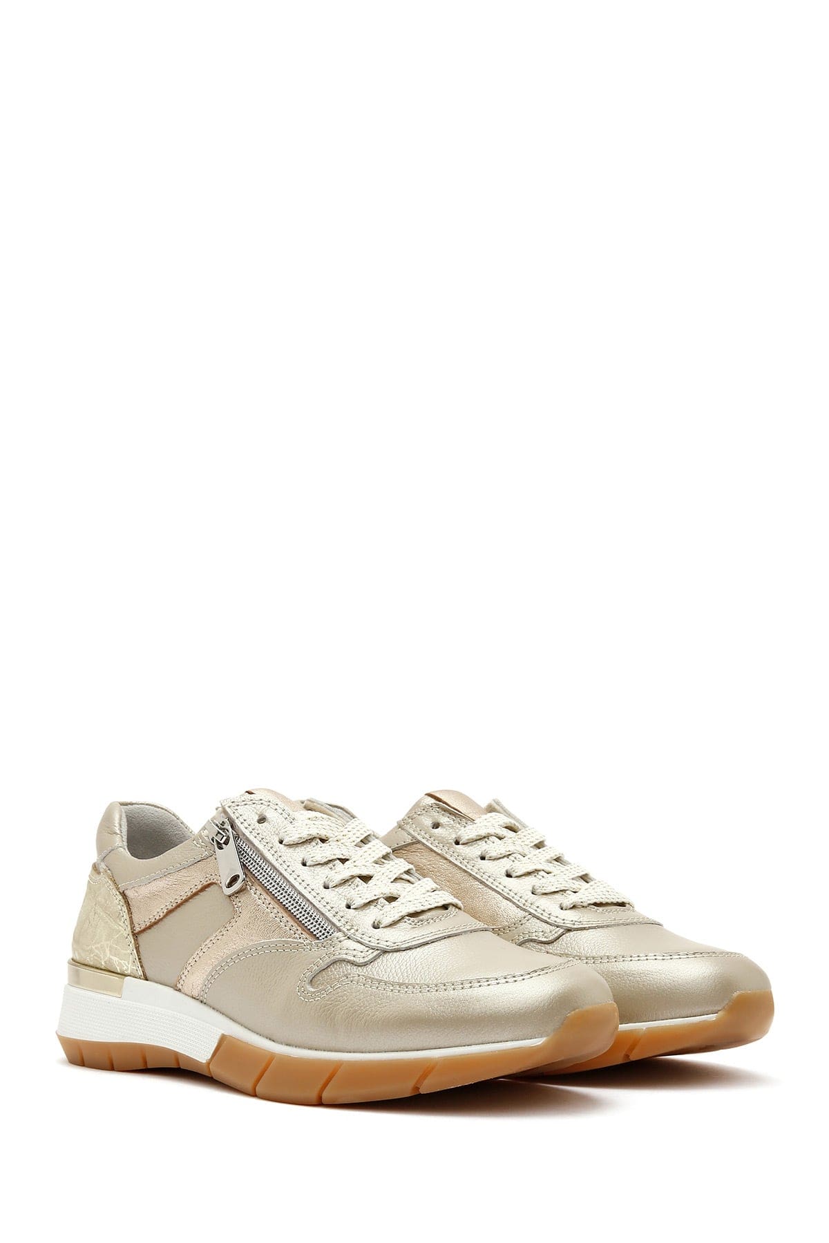 Kadın Altın Bağcıklı Yandan Fermuarlı Deri Sneaker