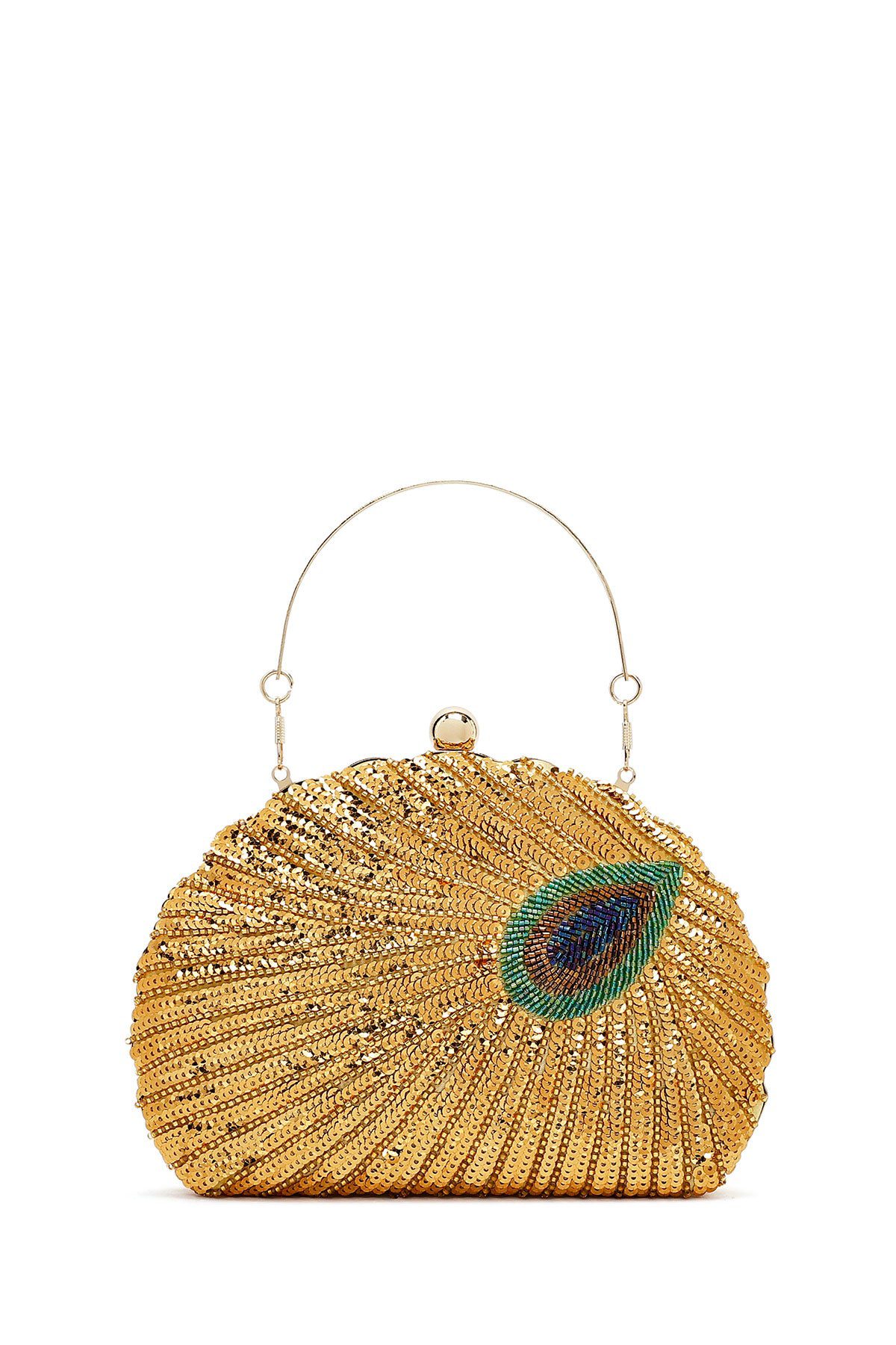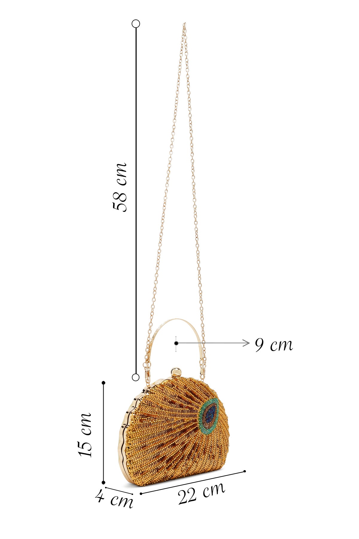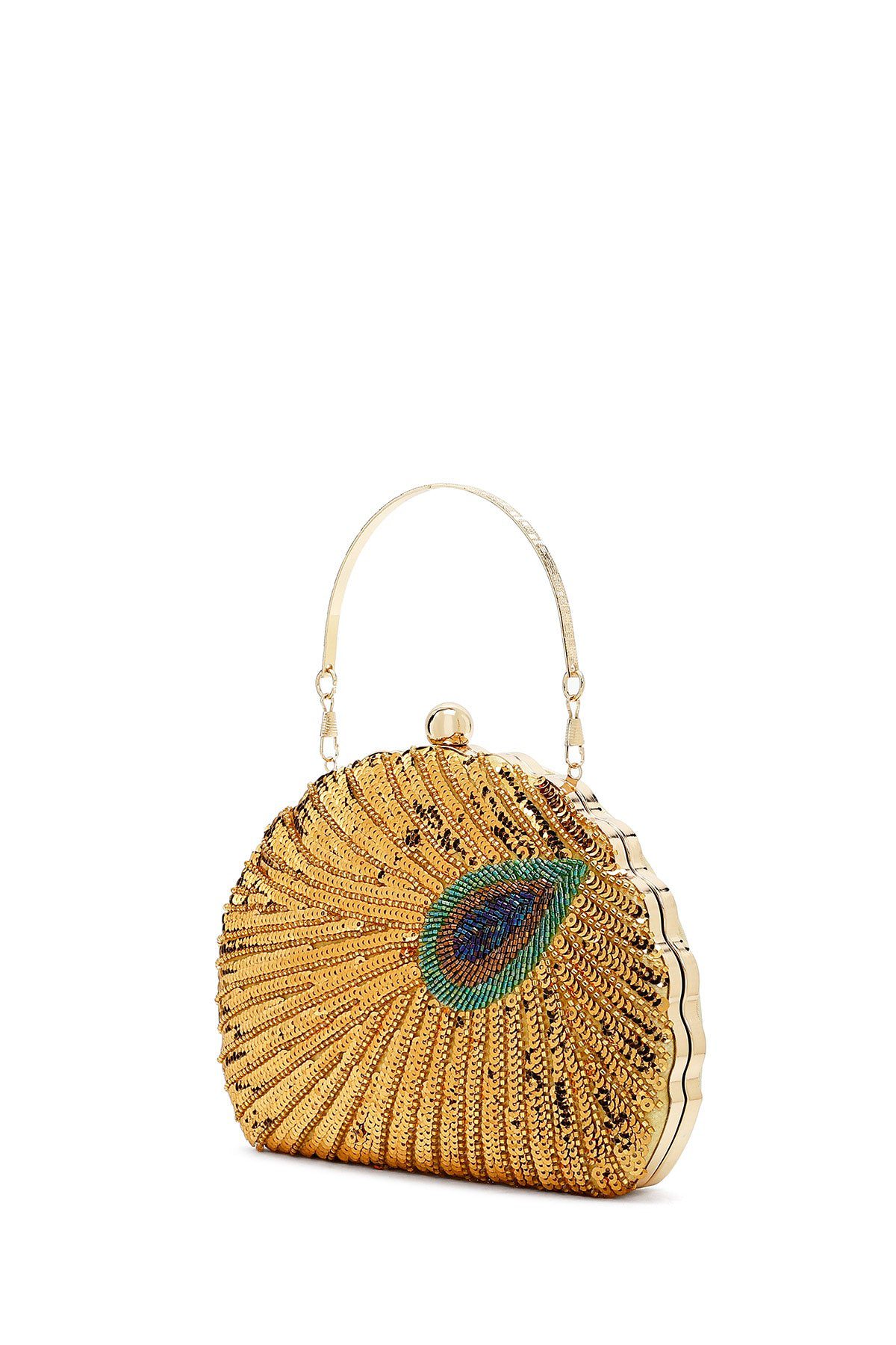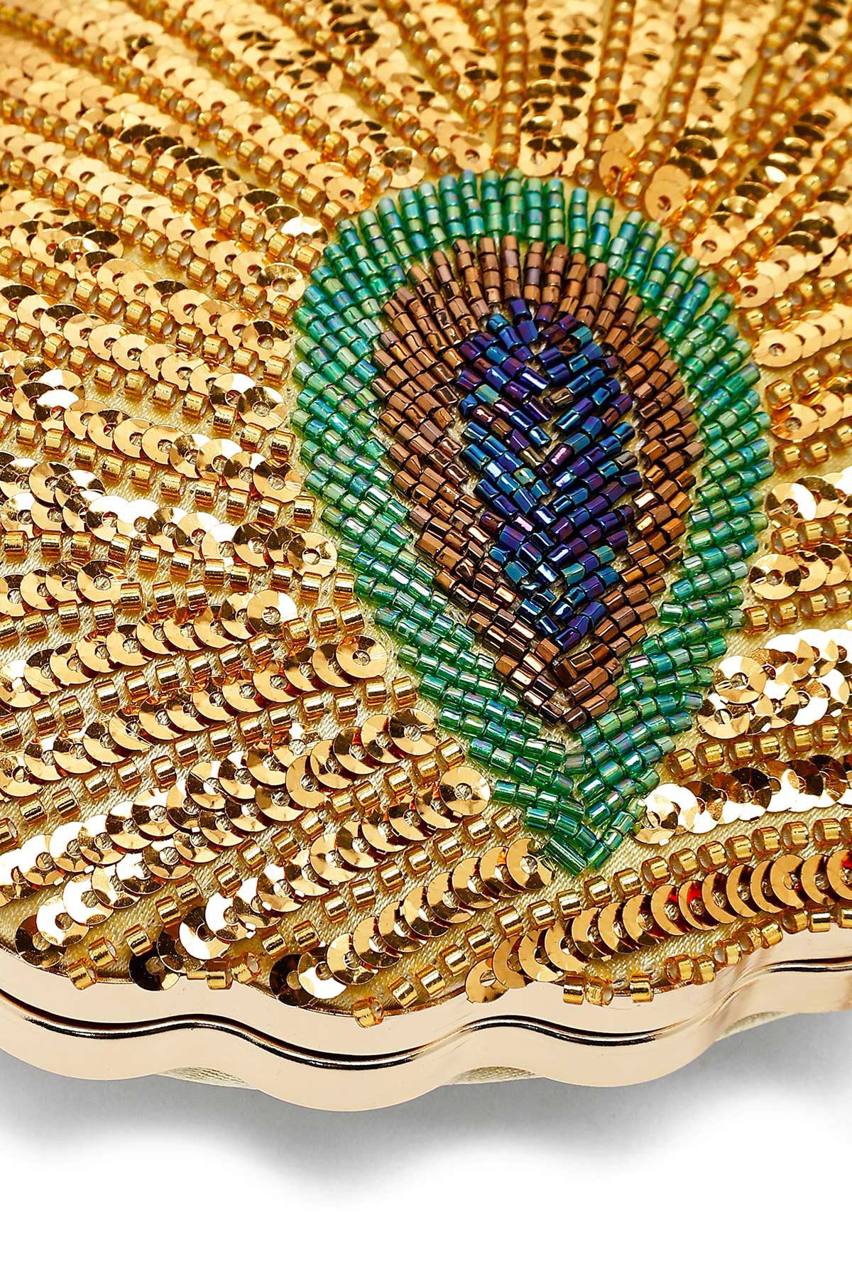 Kadın Altın Uzun Zincir Askılı Pullu Kutu Abiye Kol Çantası