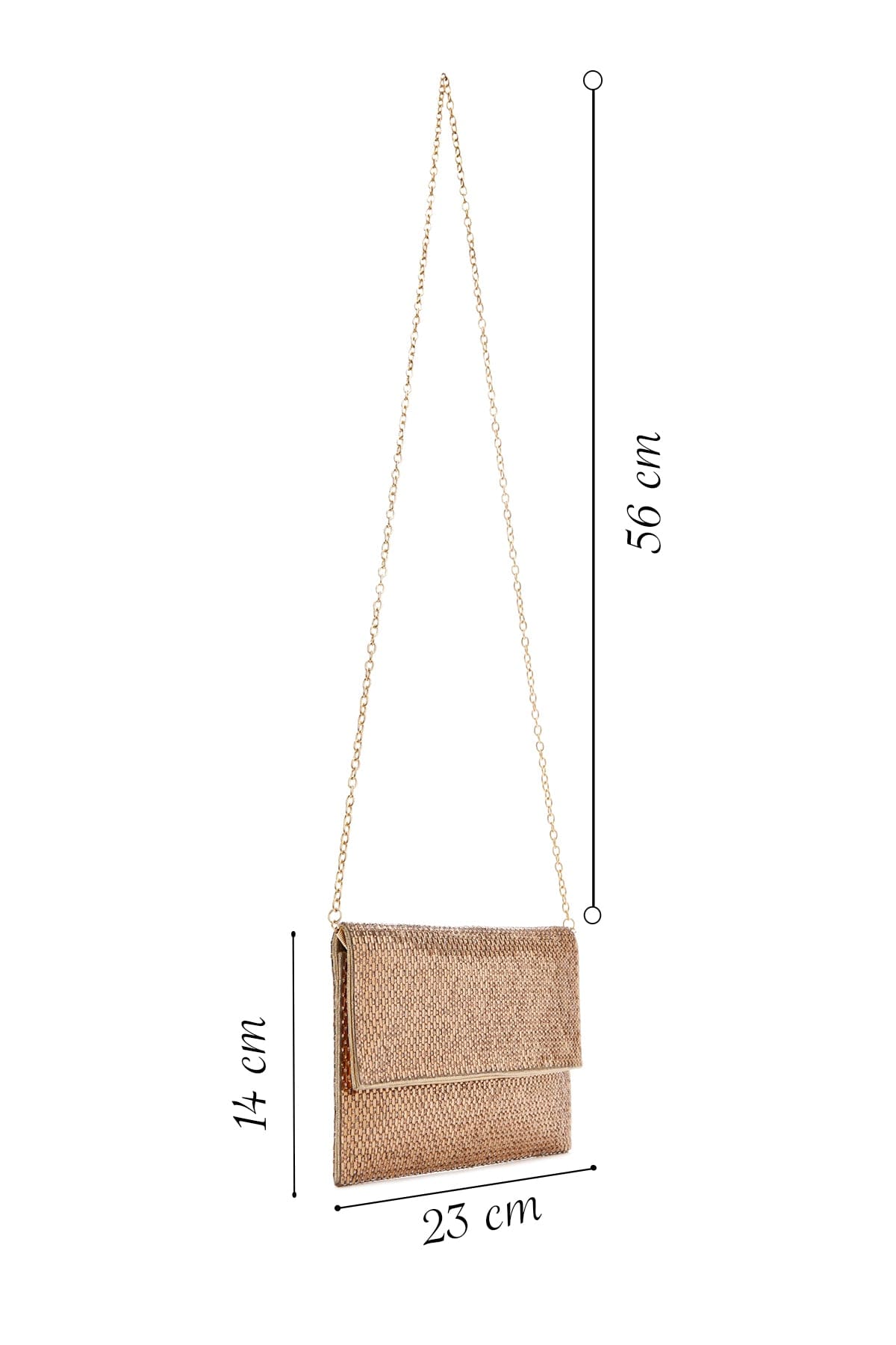 کیف مجلسی زنانه طلایی بند بلند زنجیری نگیندار دری مد