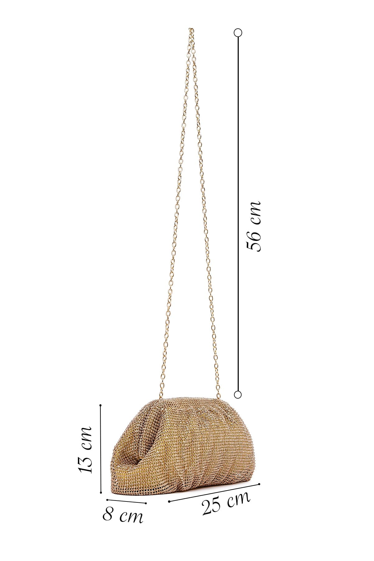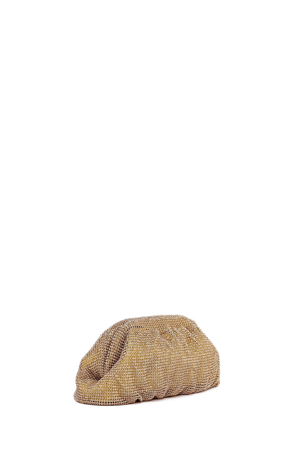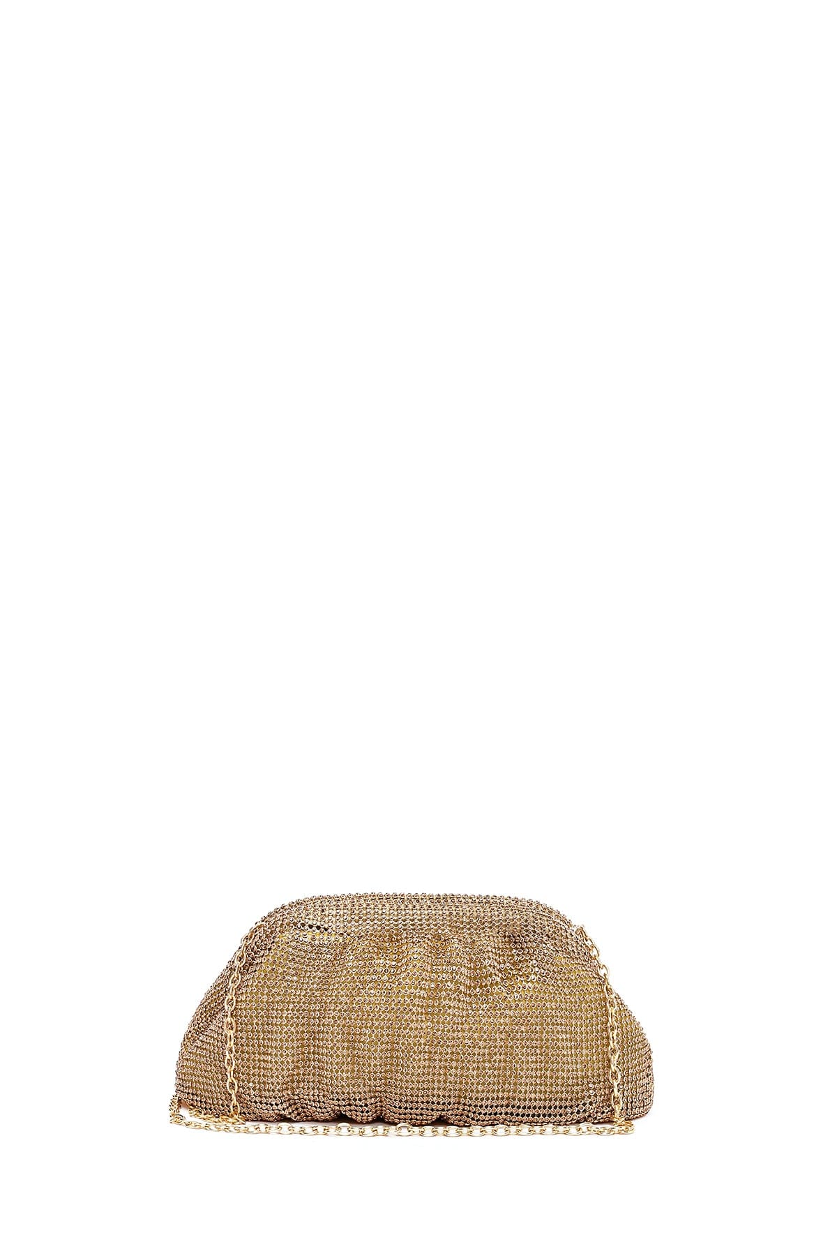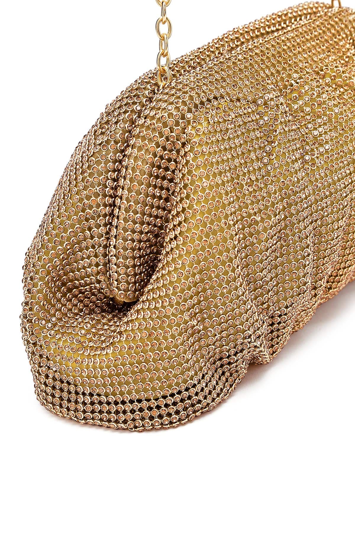 Kadın Altın Uzun Zincir Askılı Taşlı Abiye Portföy Çanta