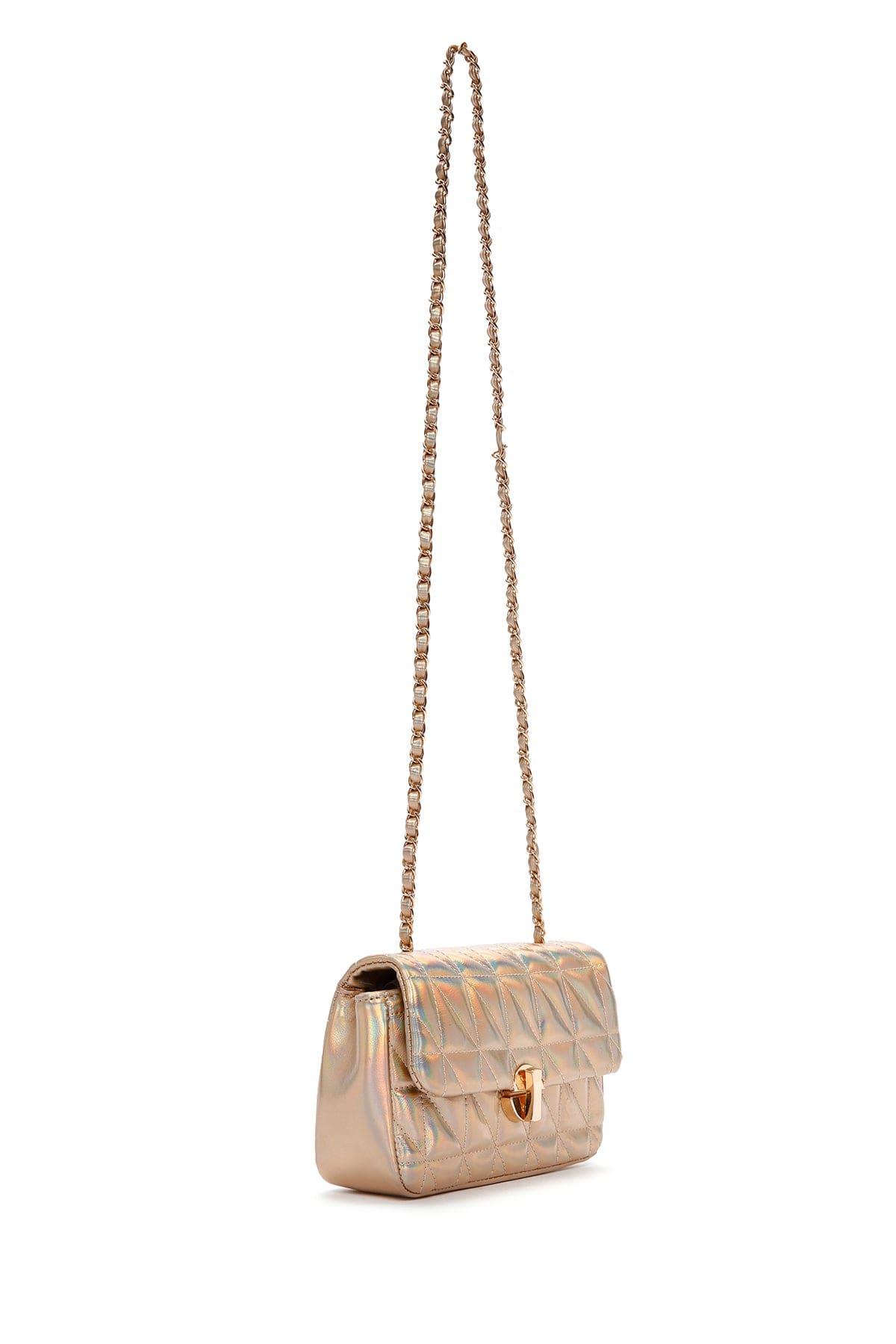 Kadın Altın Uzun Askılı Kapitone Çapraz Çanta