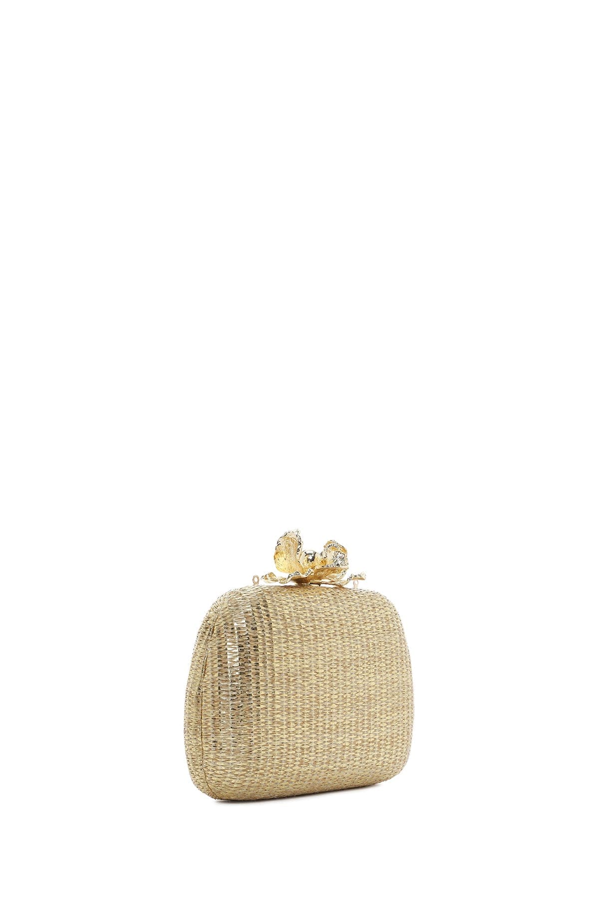 Kadın Altın Uzun Askılı Taşlı Mini Hasır Abiye Kutu Portföy Çanta