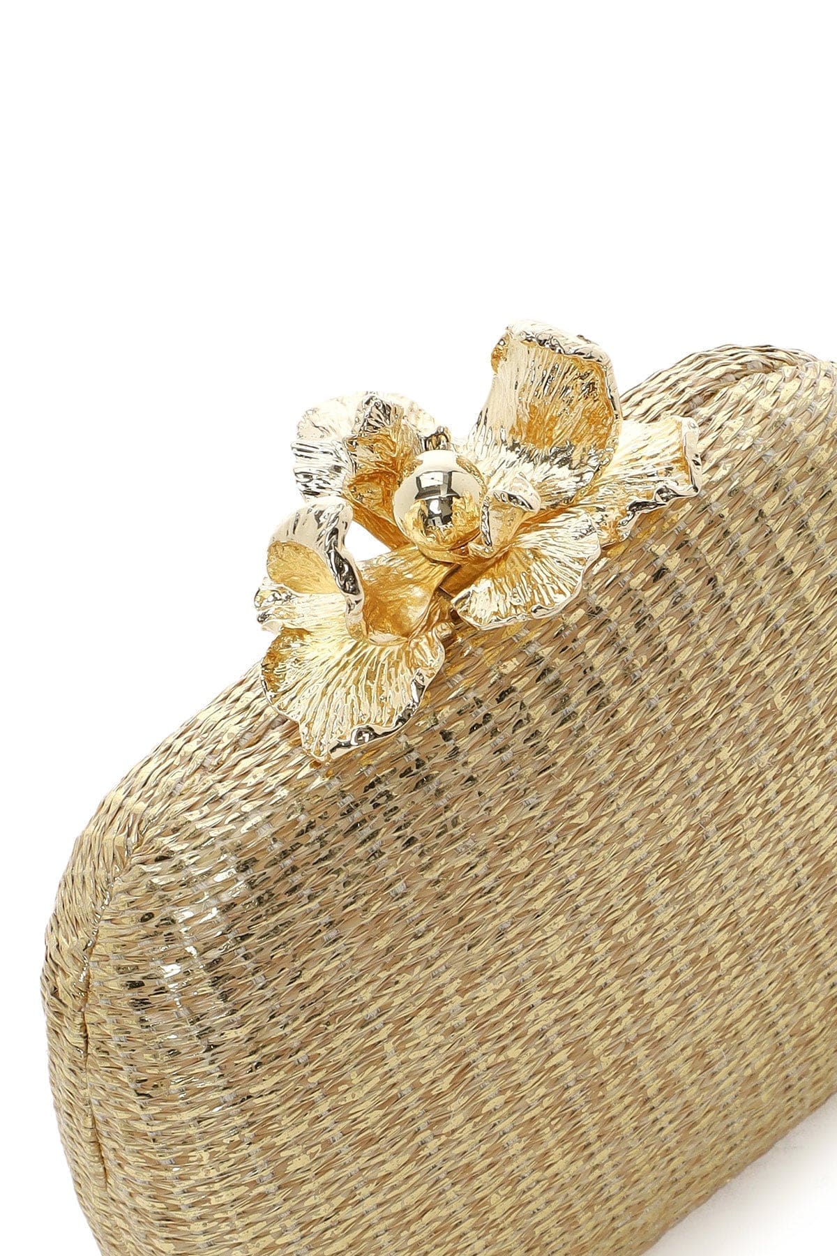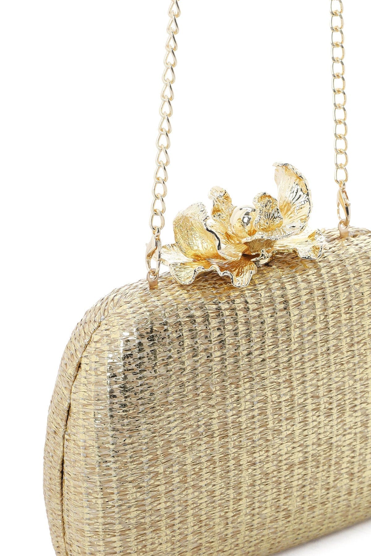 کیف مینی جعبهای زنانه طلایی بند بلند نگیندار و حصیری دری مد