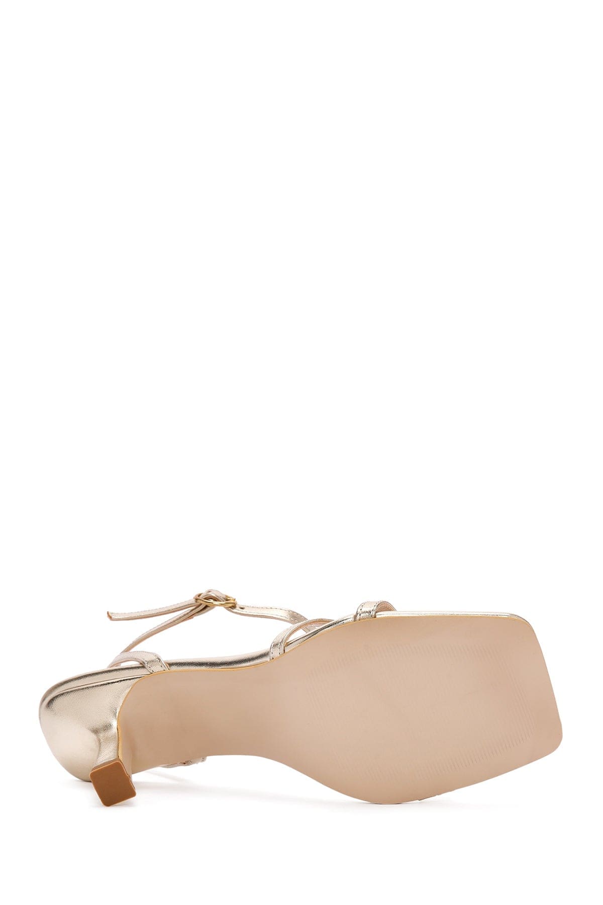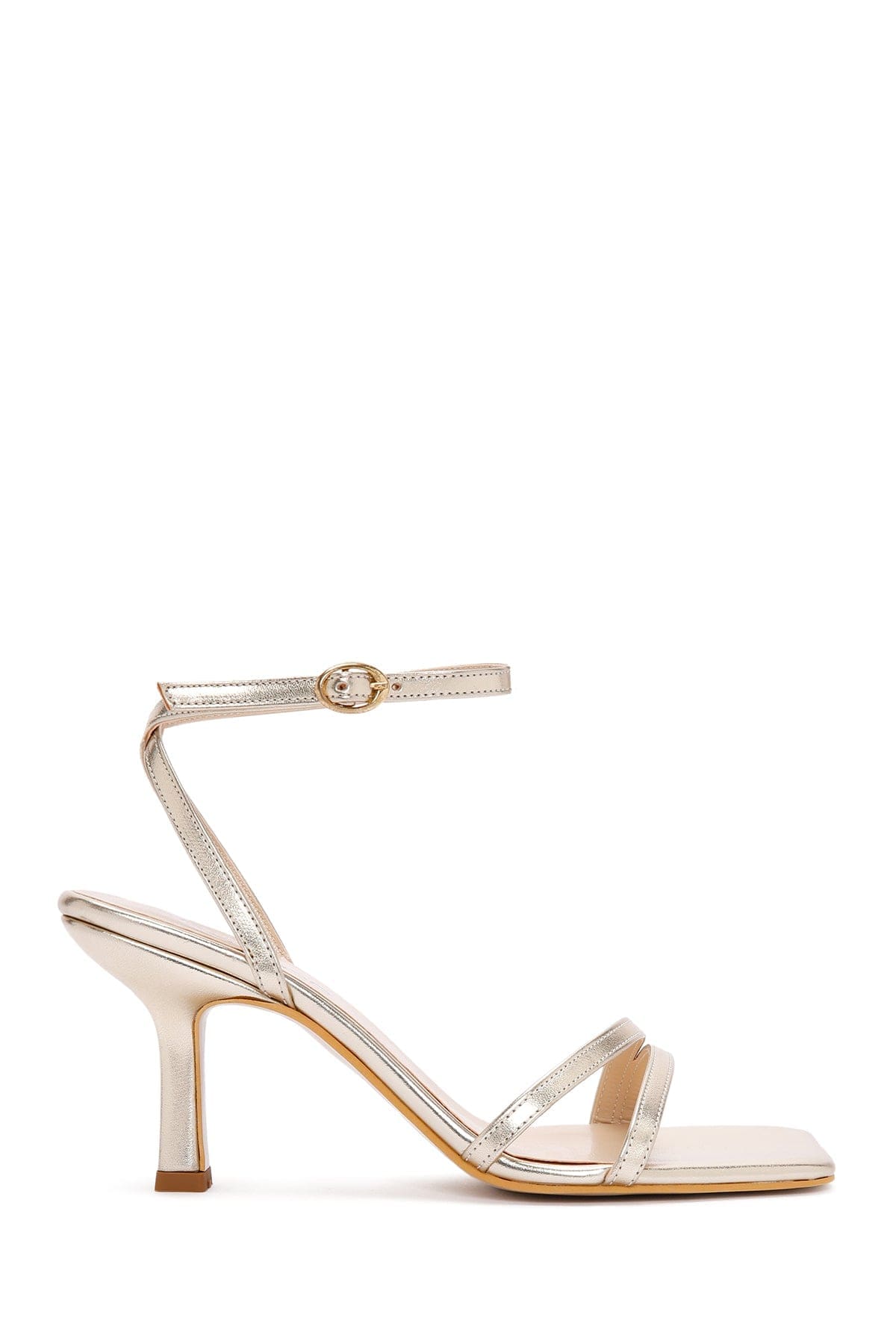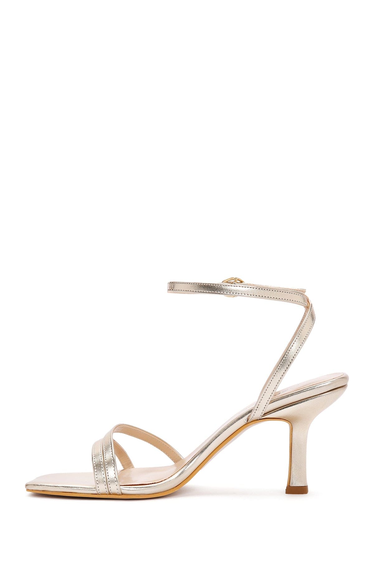 Kadın Altın Metalik Bilekten Bantlı İnce Topuklu Sandalet