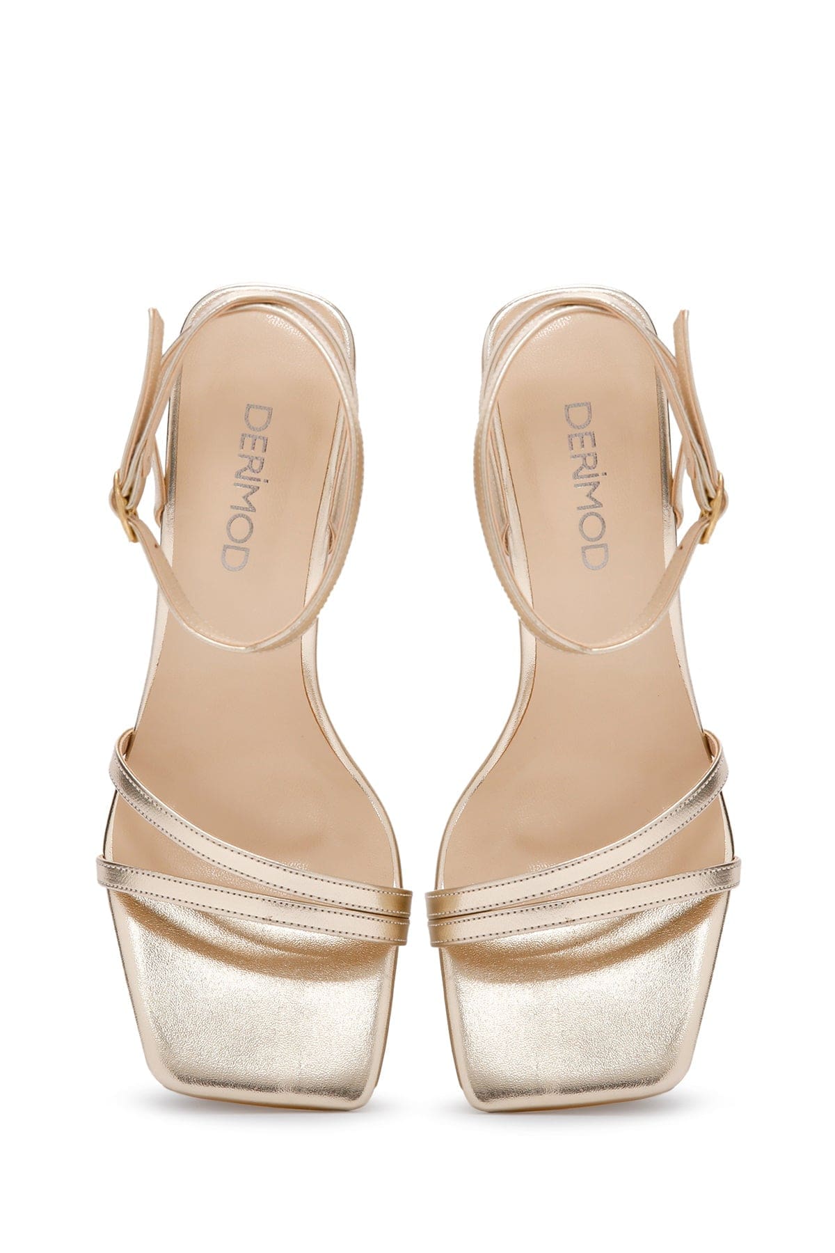 صندل زنانه طلایی متالیک بندی پاشنه نازک دری مد