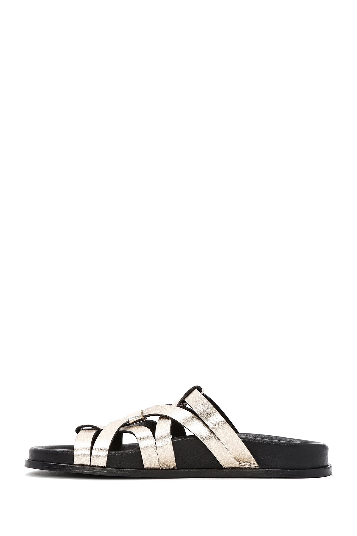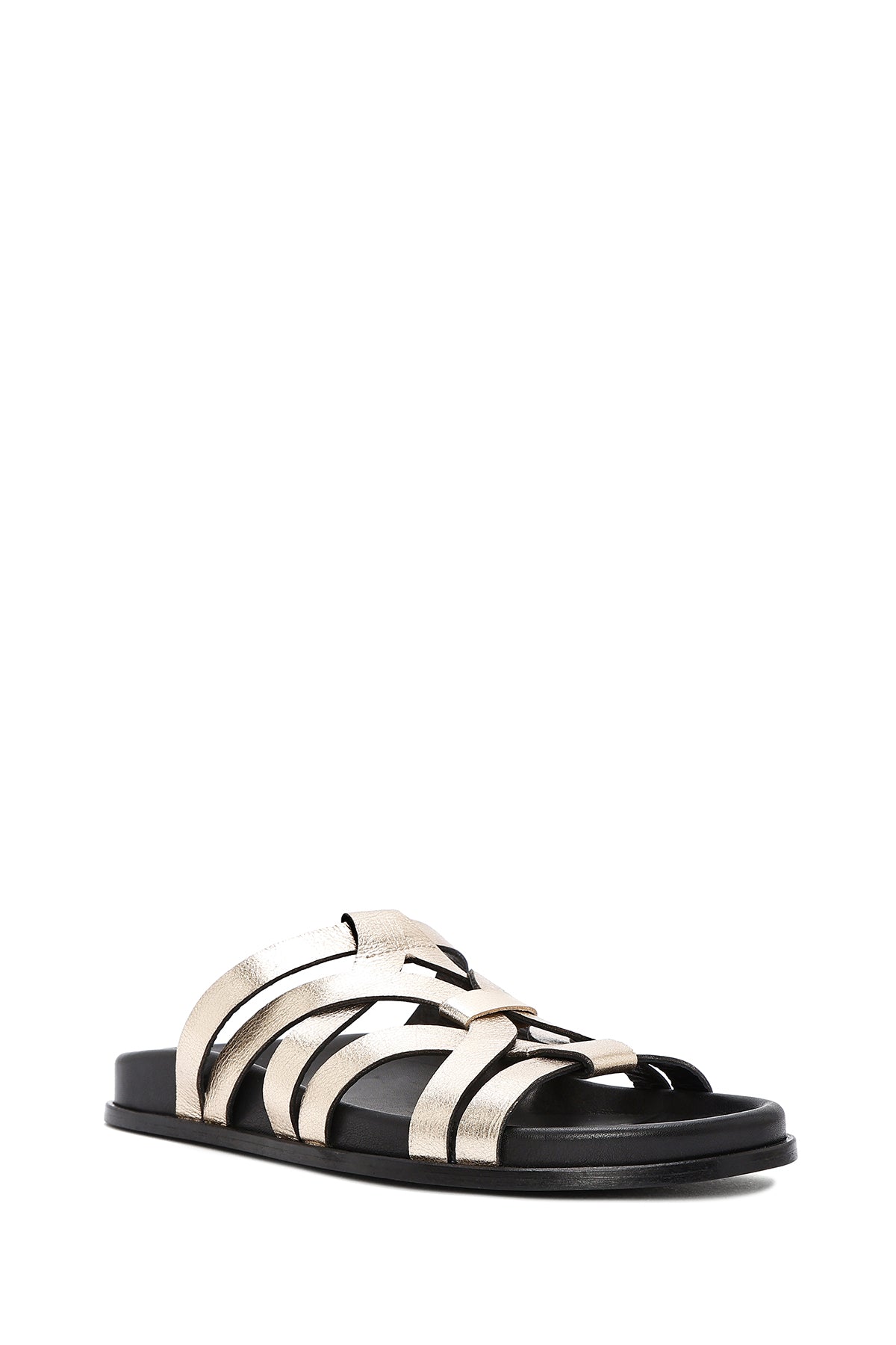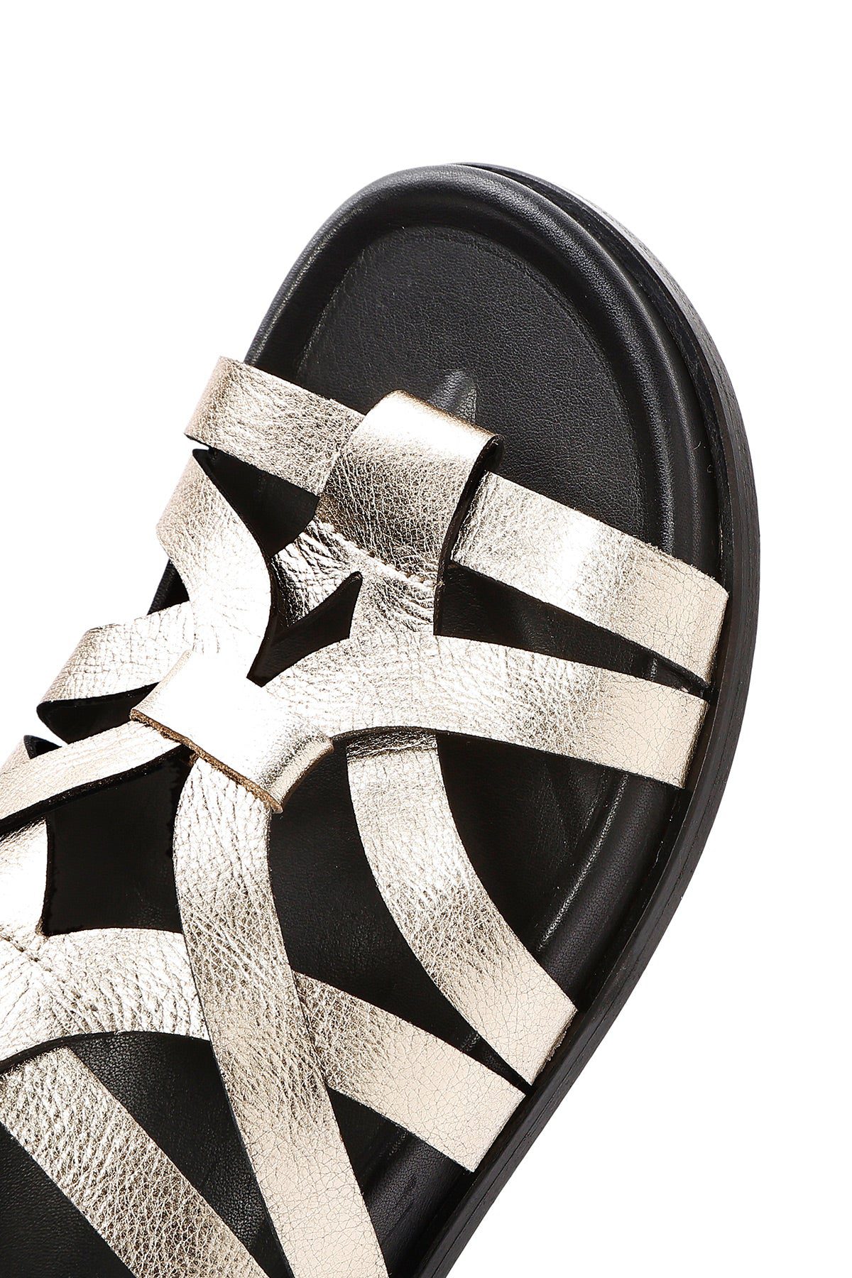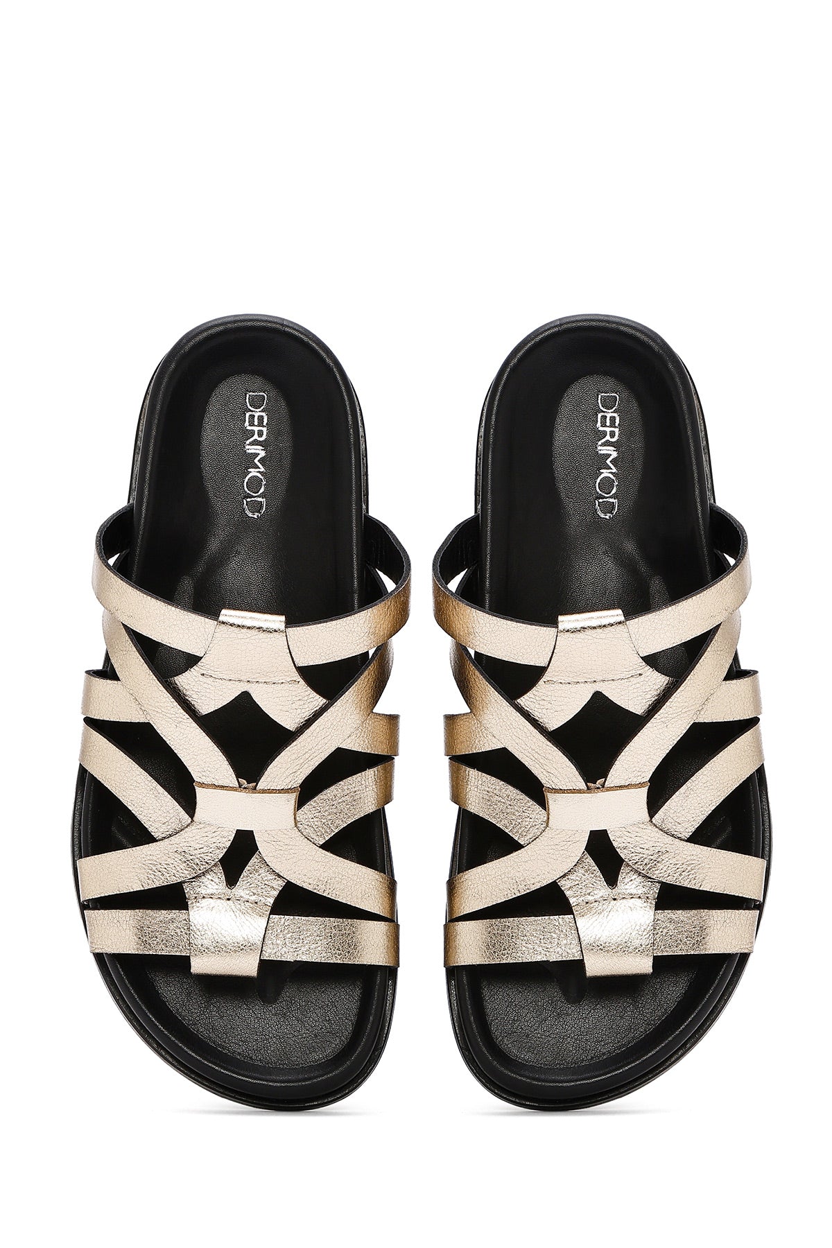 دمپایی زنانه چرمی طلایی متالیک دری مد