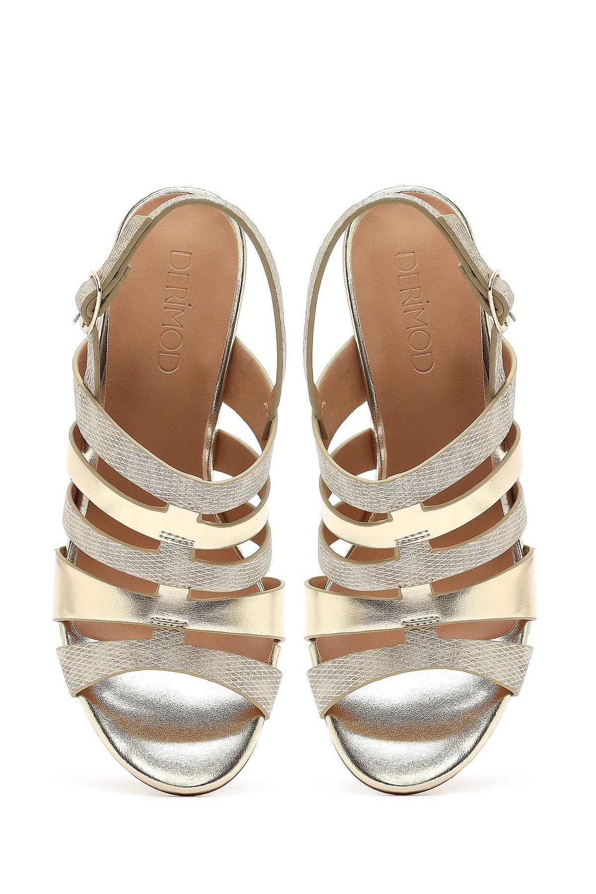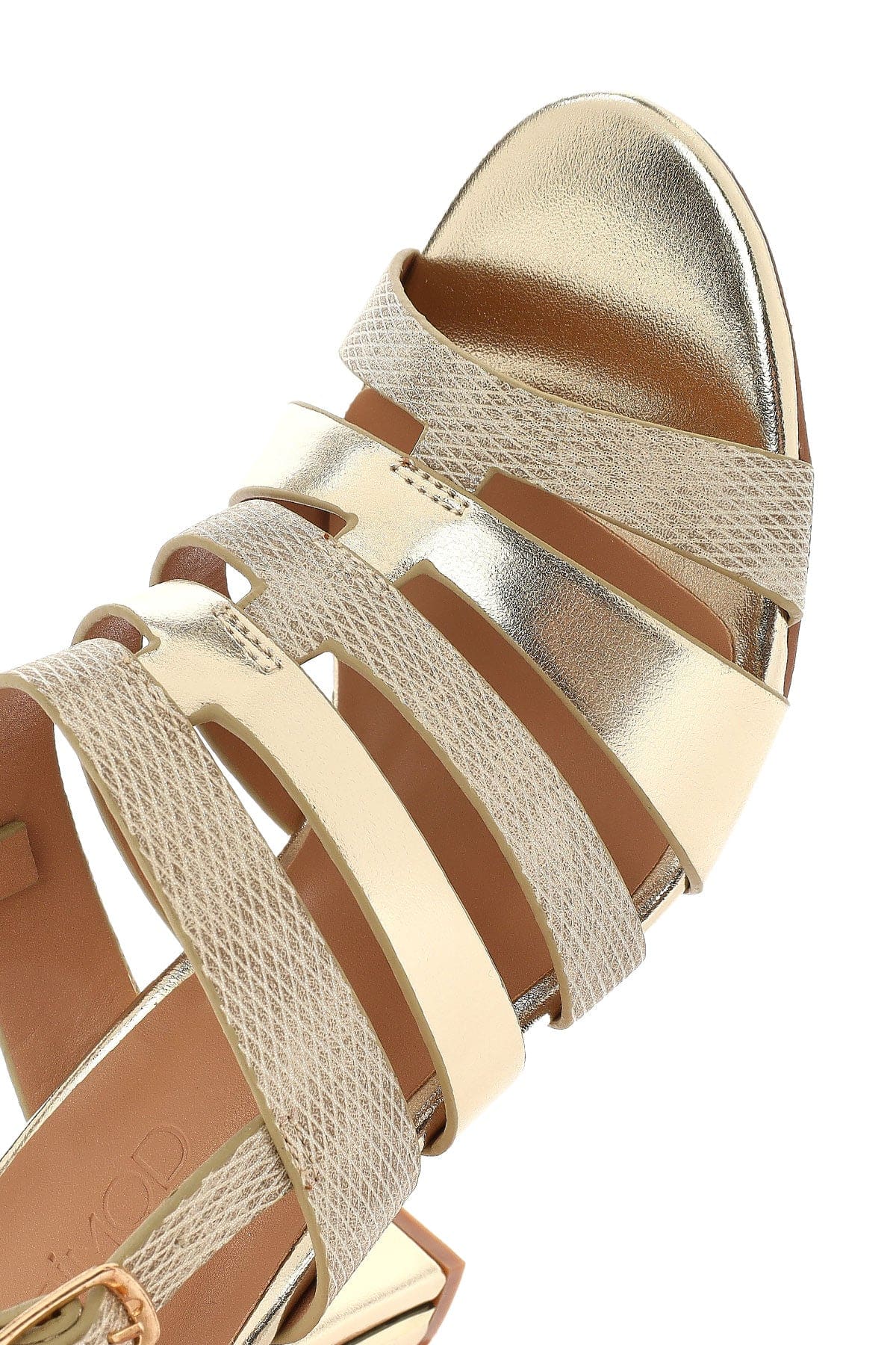 صندل زنانه طلایی متالیک پاشنهضخیم بنددار دری مد