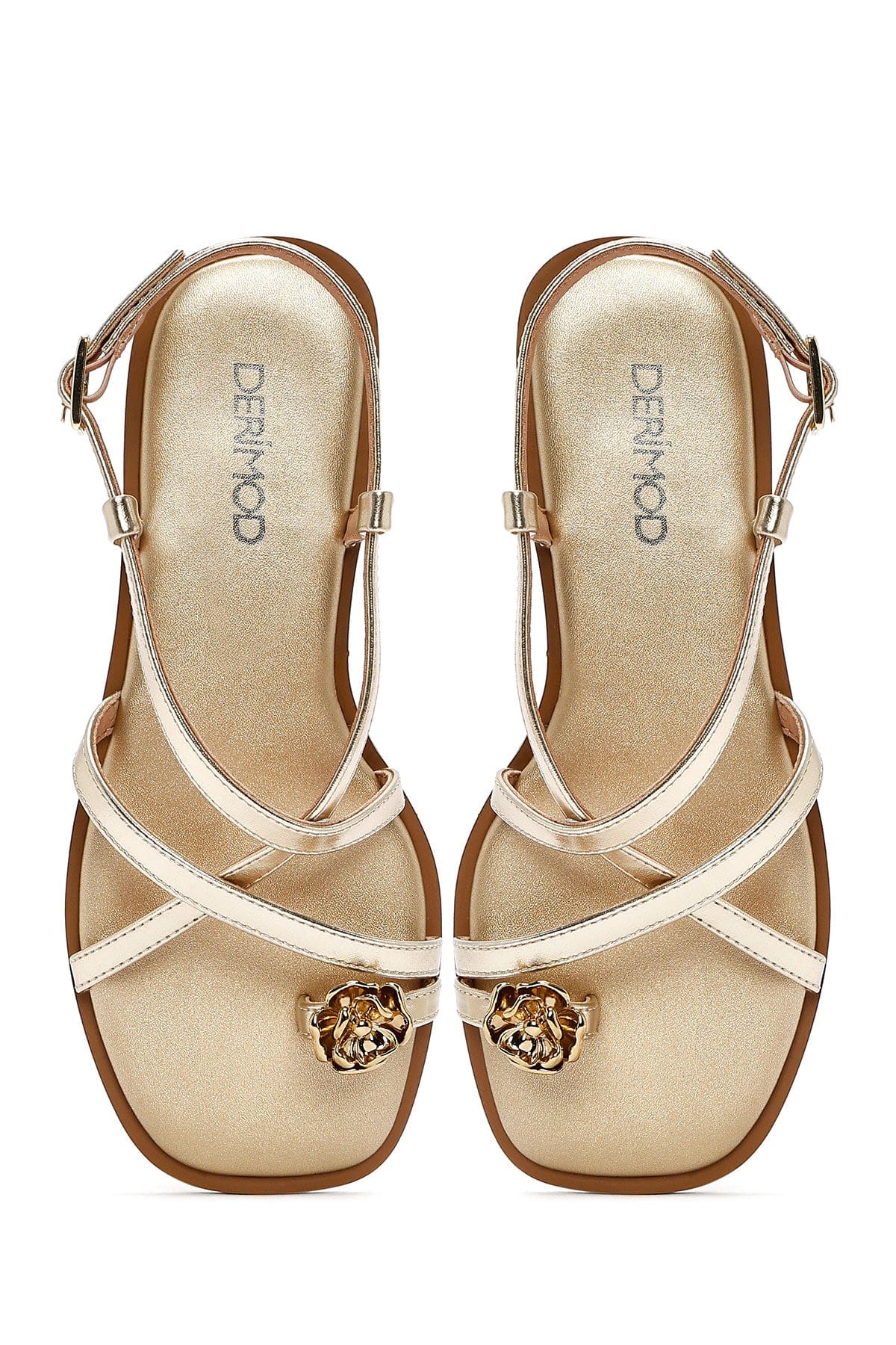 صندل زنانه طلایی لایانگشتی متالیک دری مد