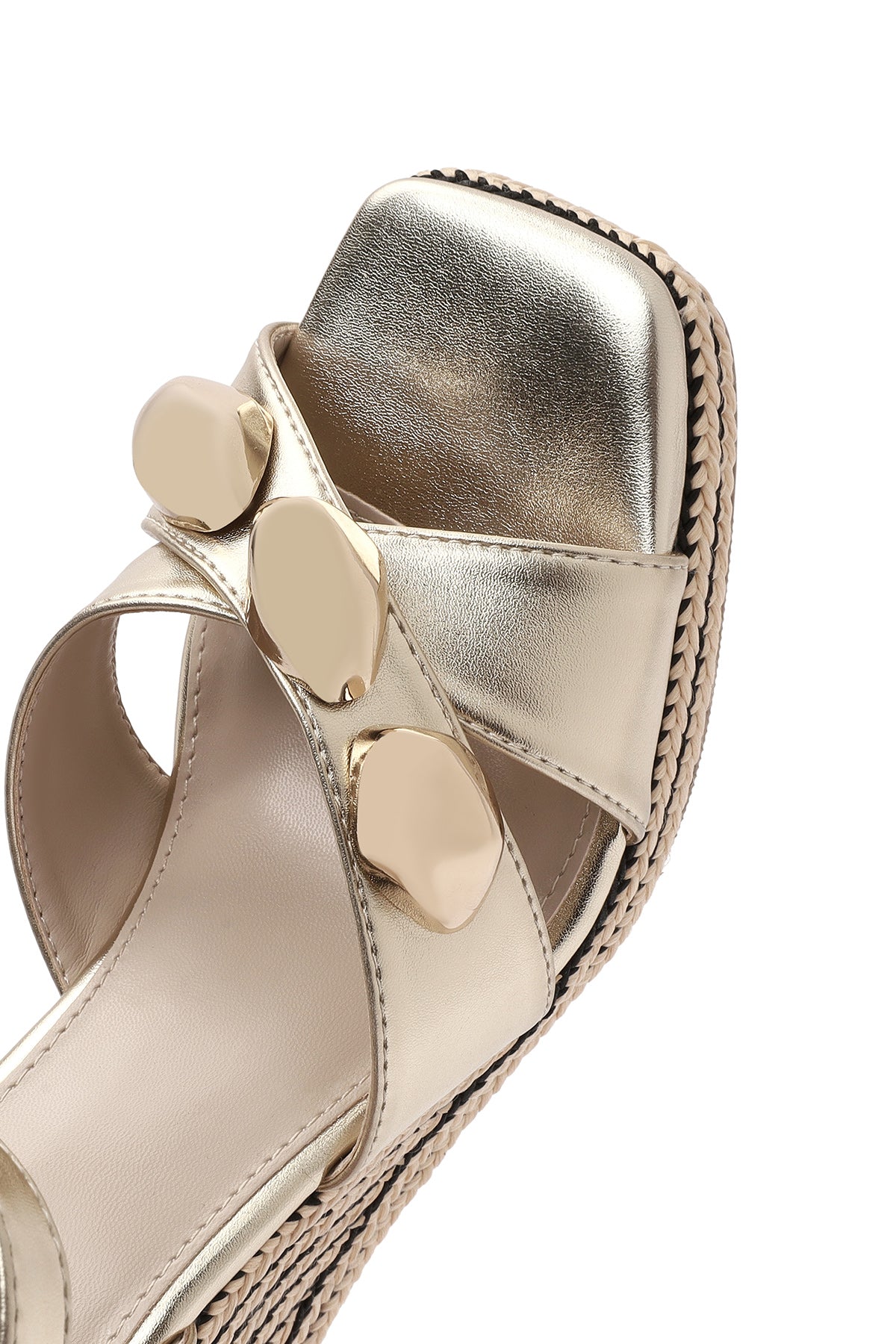 صندل اسپادریل زنانه طلایی بنددار پاشنه لژ متالیک دری مد