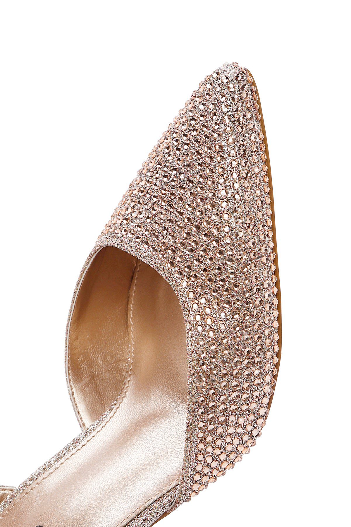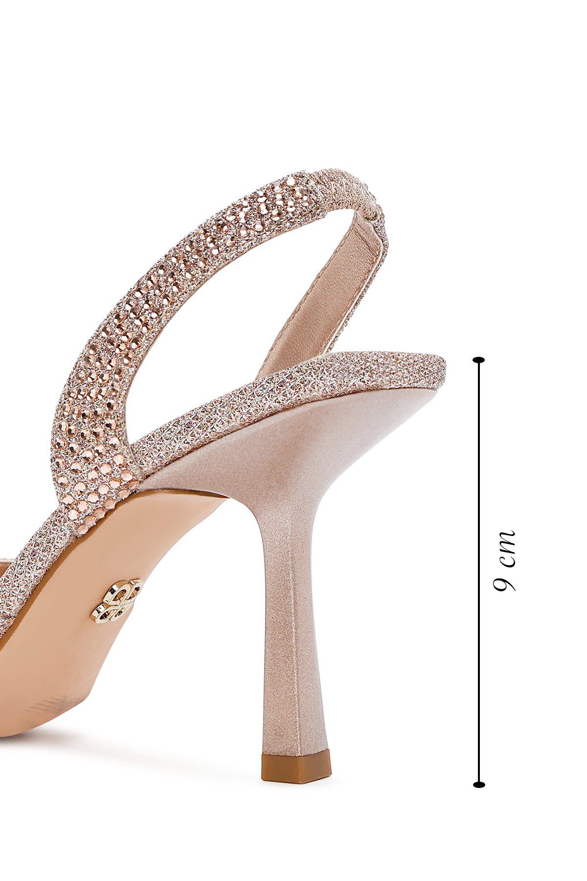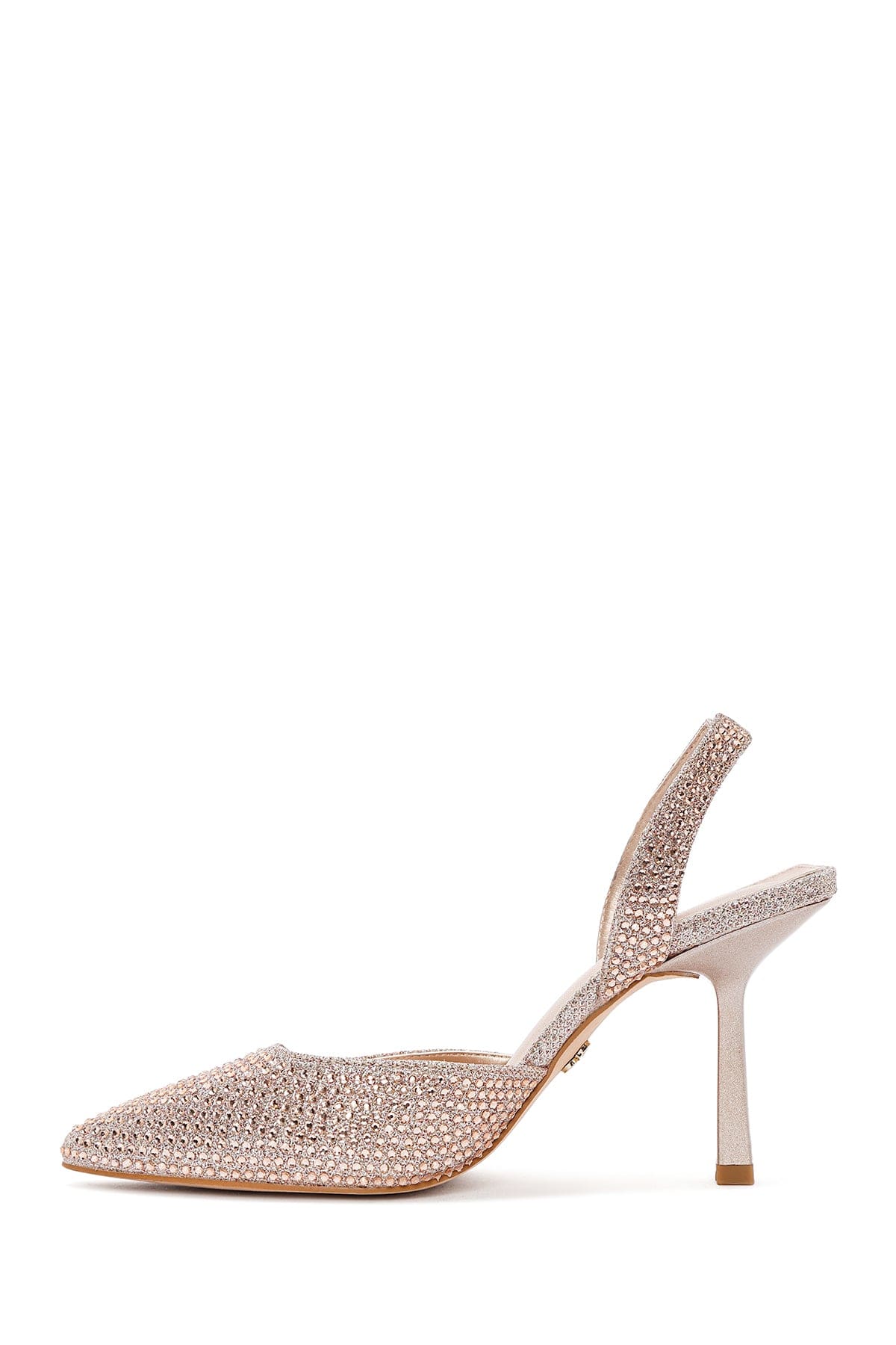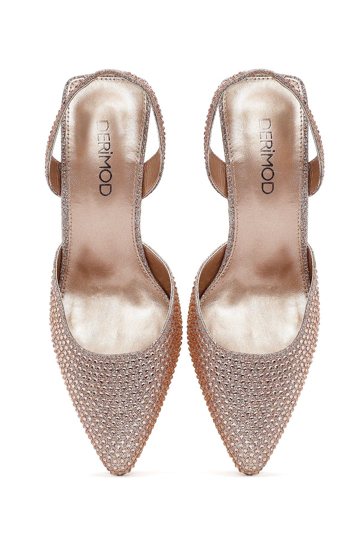 Kadın Altın Taşlı Arkası Açık İnce Topuklu Ayakkabı
