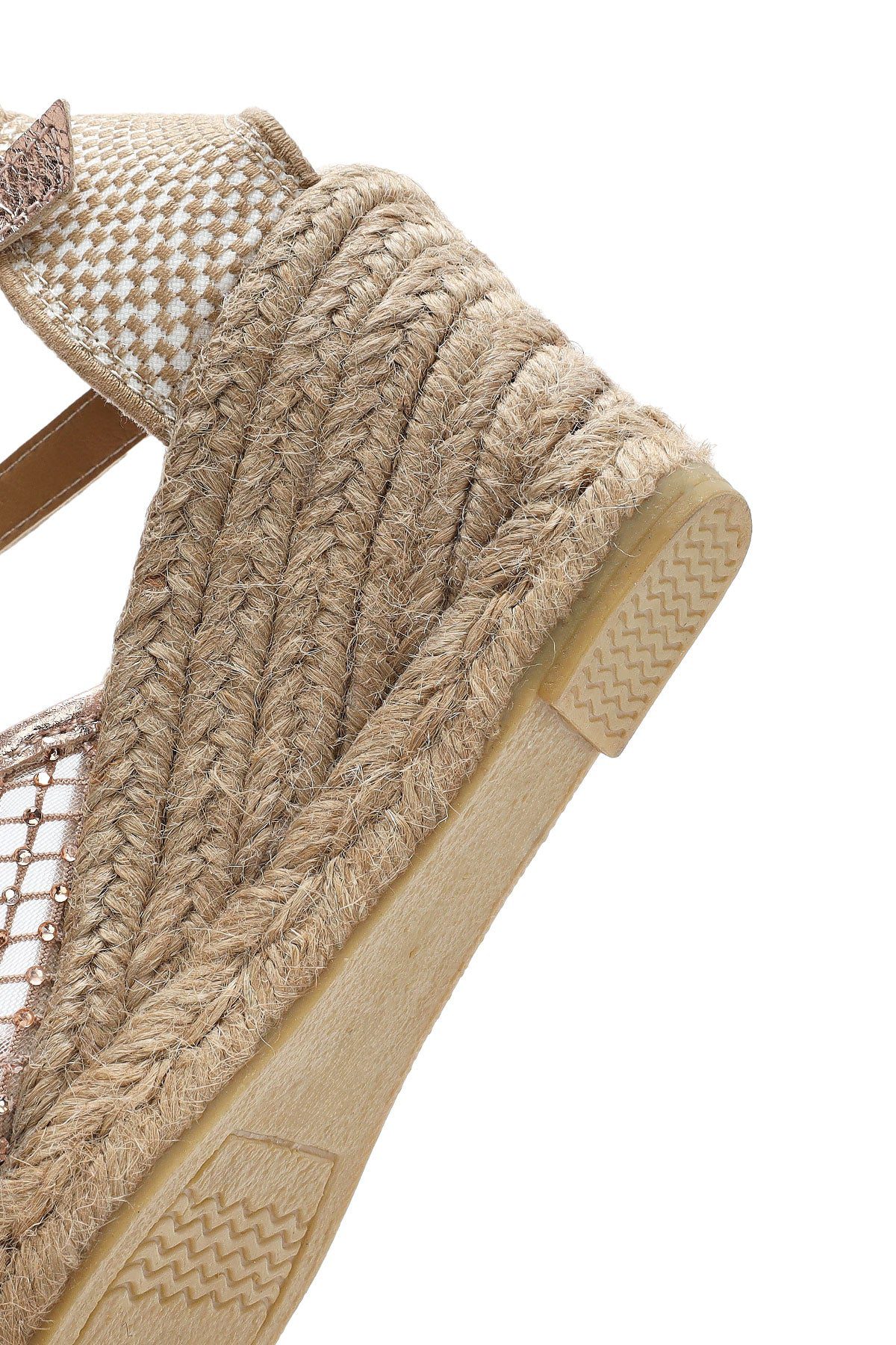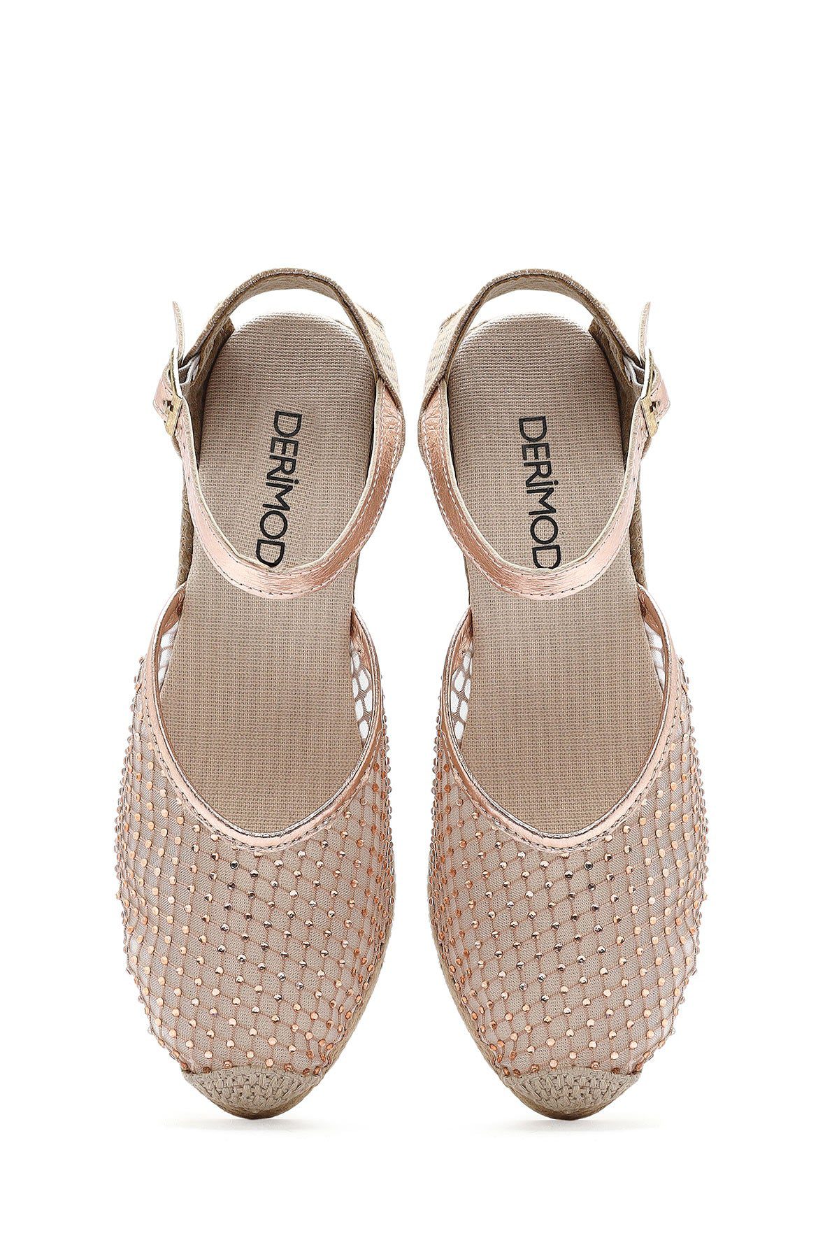 Kadın Altın Bilekten Tokalı Dolgu Topuklu Espadril Sandalet