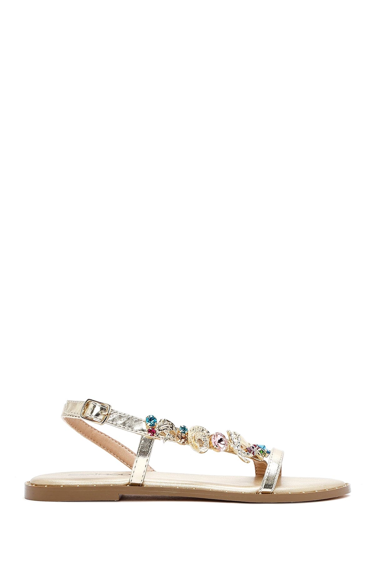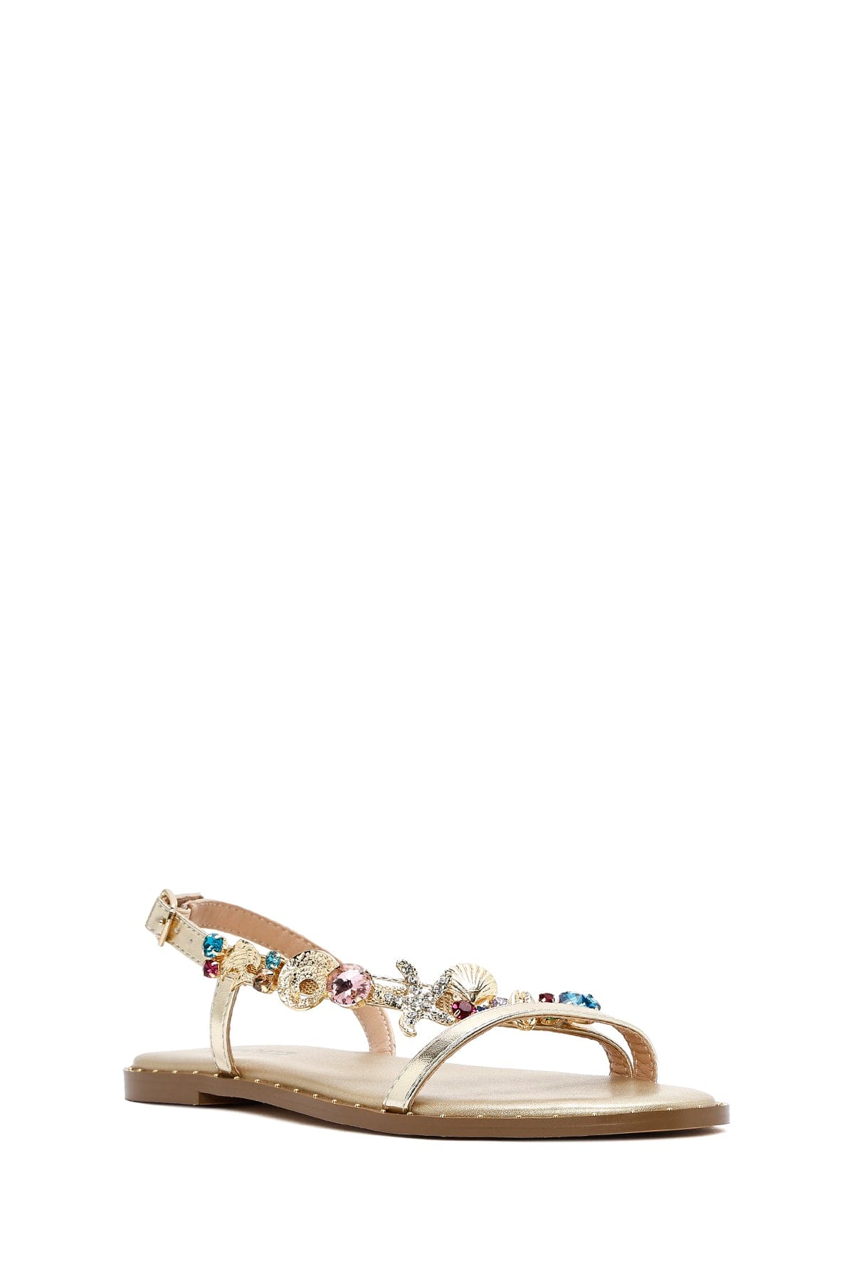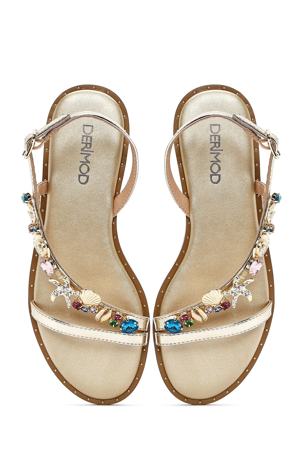 Kadın Altın Bilekten Tokalı Taşlı Sandalet
