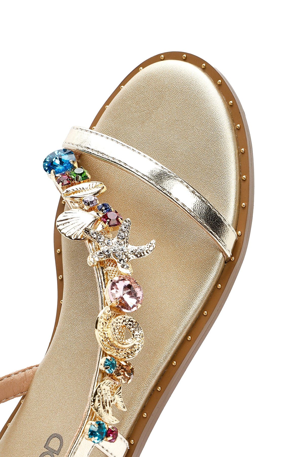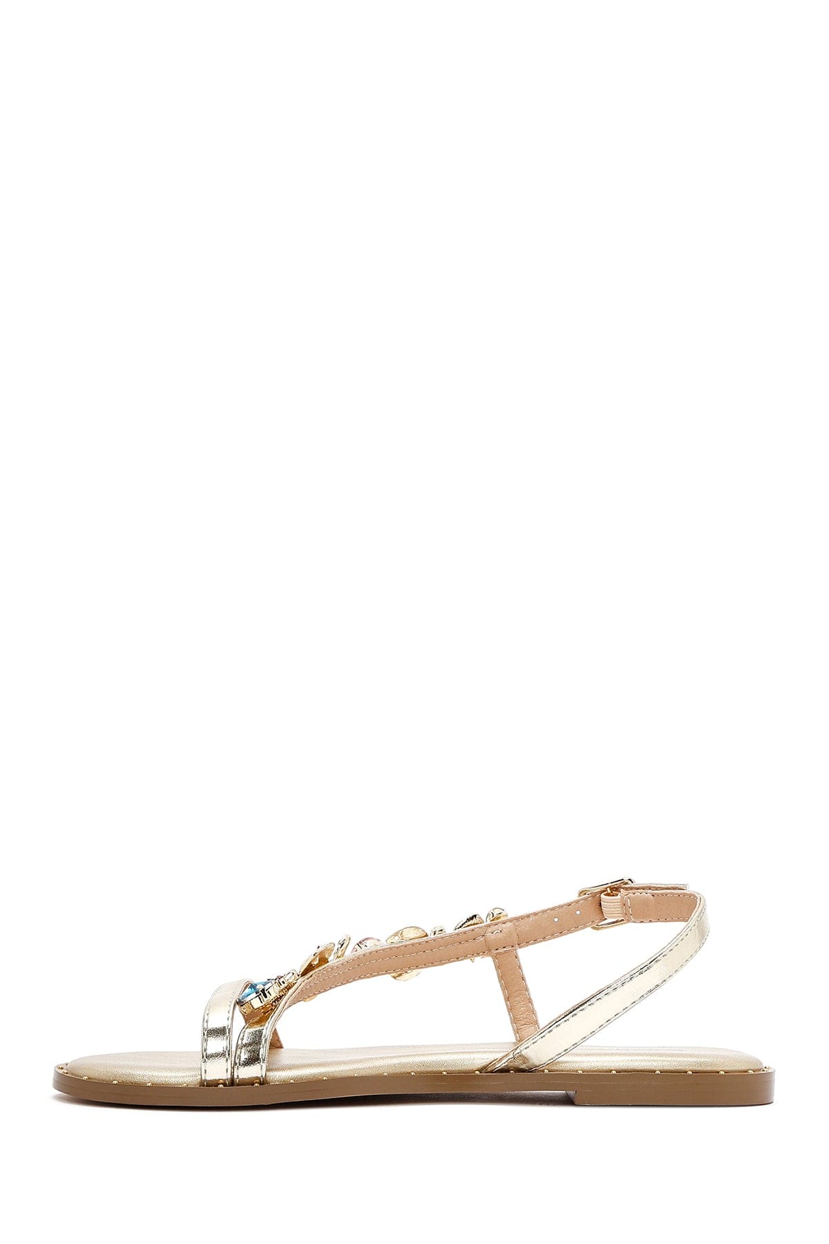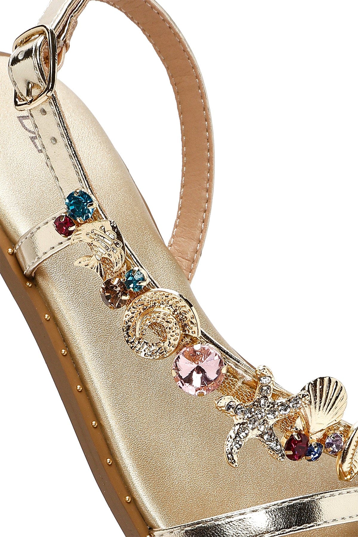 Kadın Altın Bilekten Tokalı Taşlı Sandalet