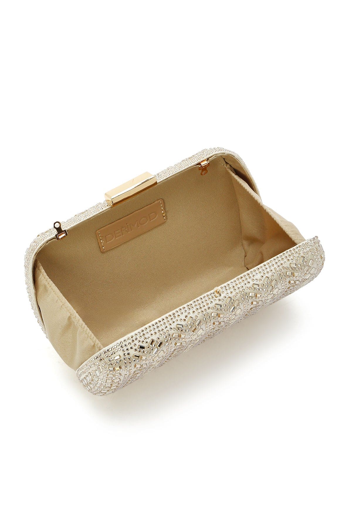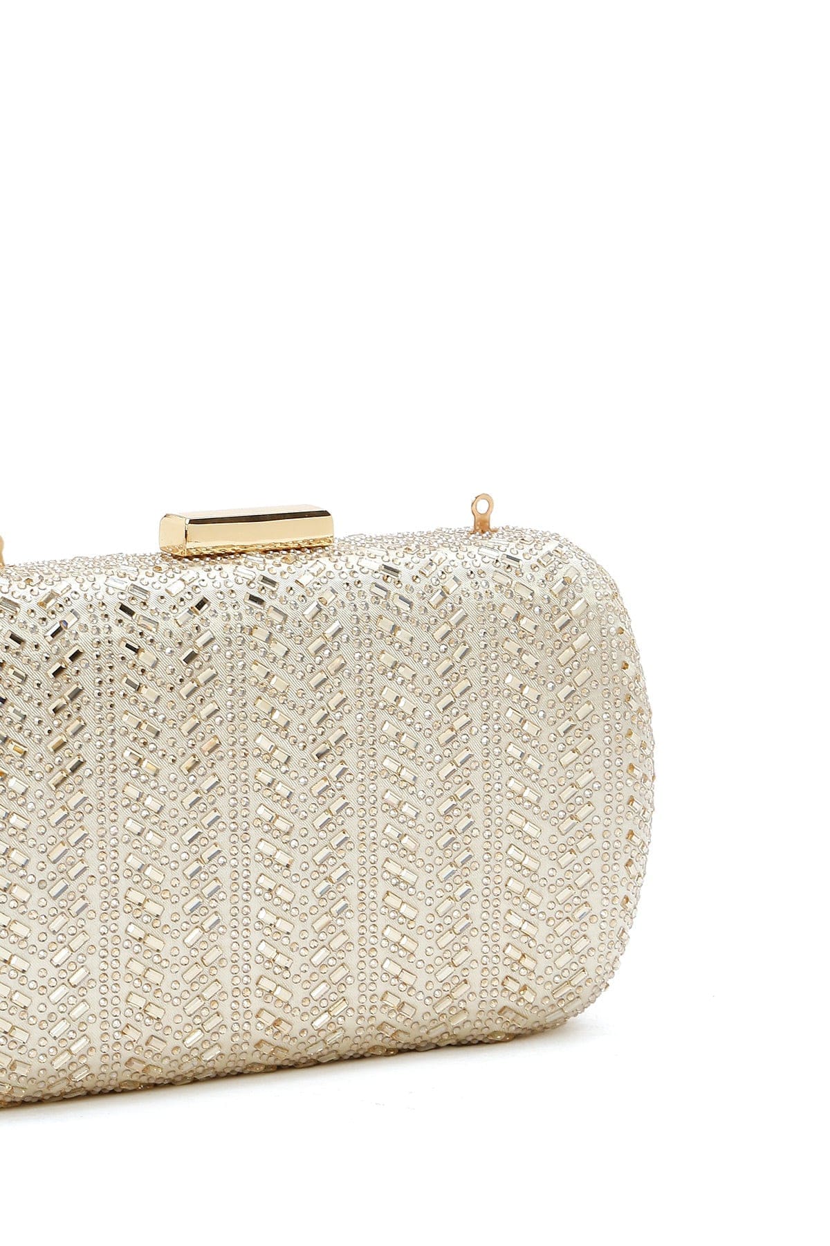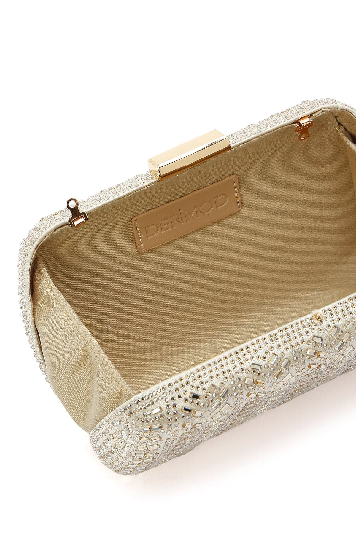 Kadın Altın Taşlı Abiye Mini Kutu Çanta