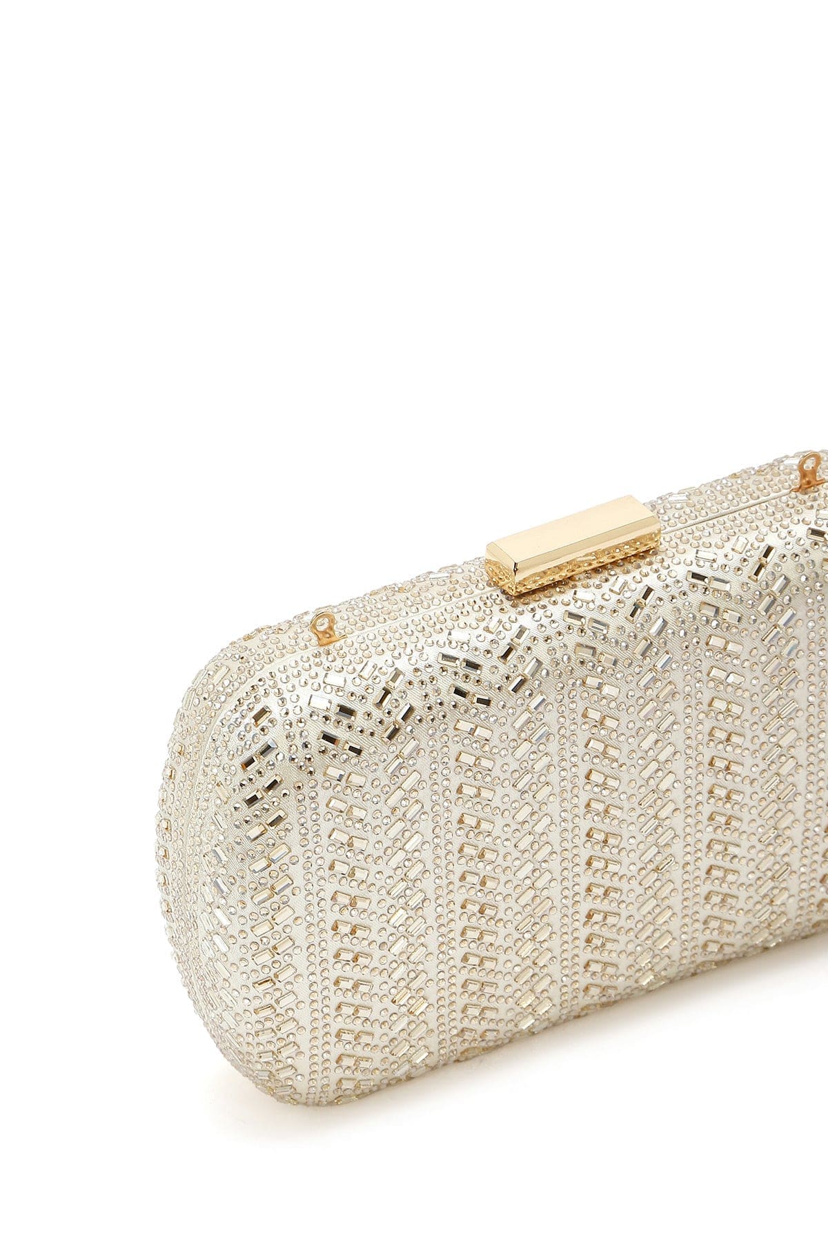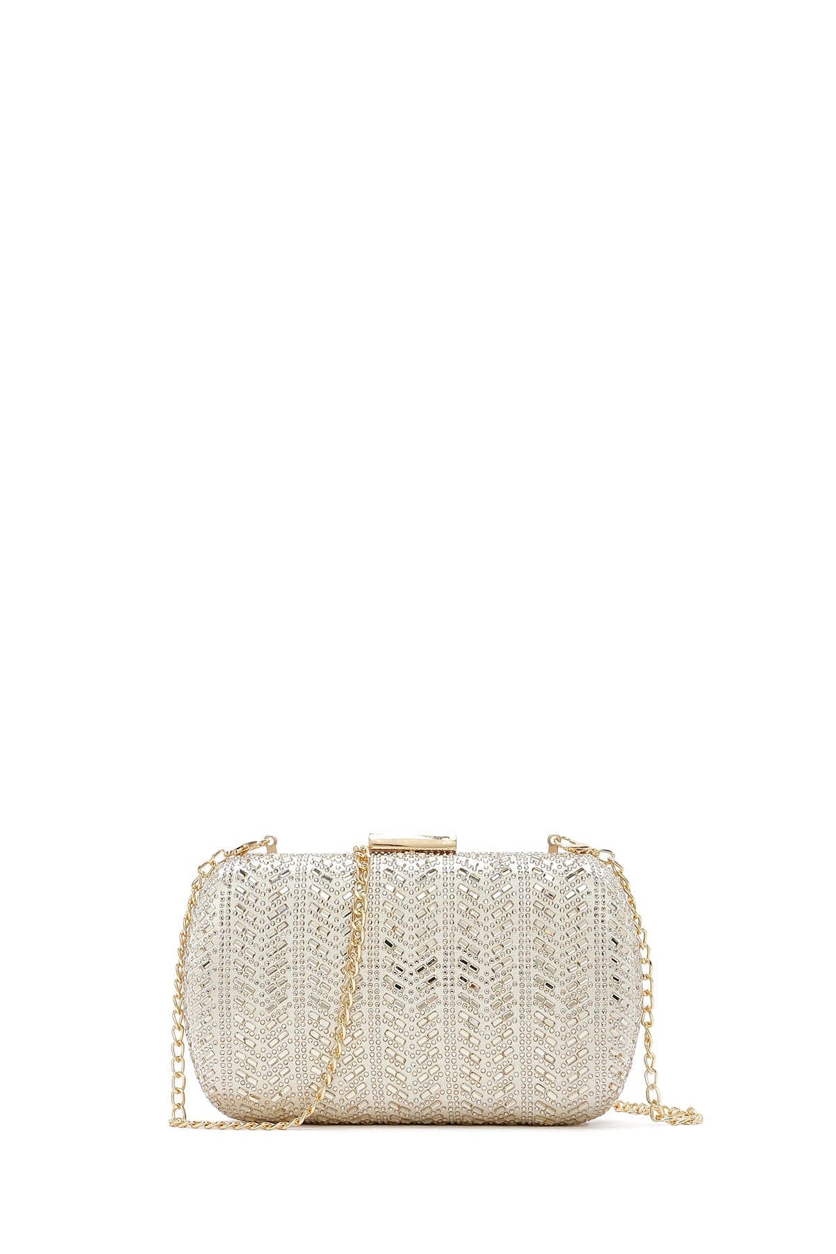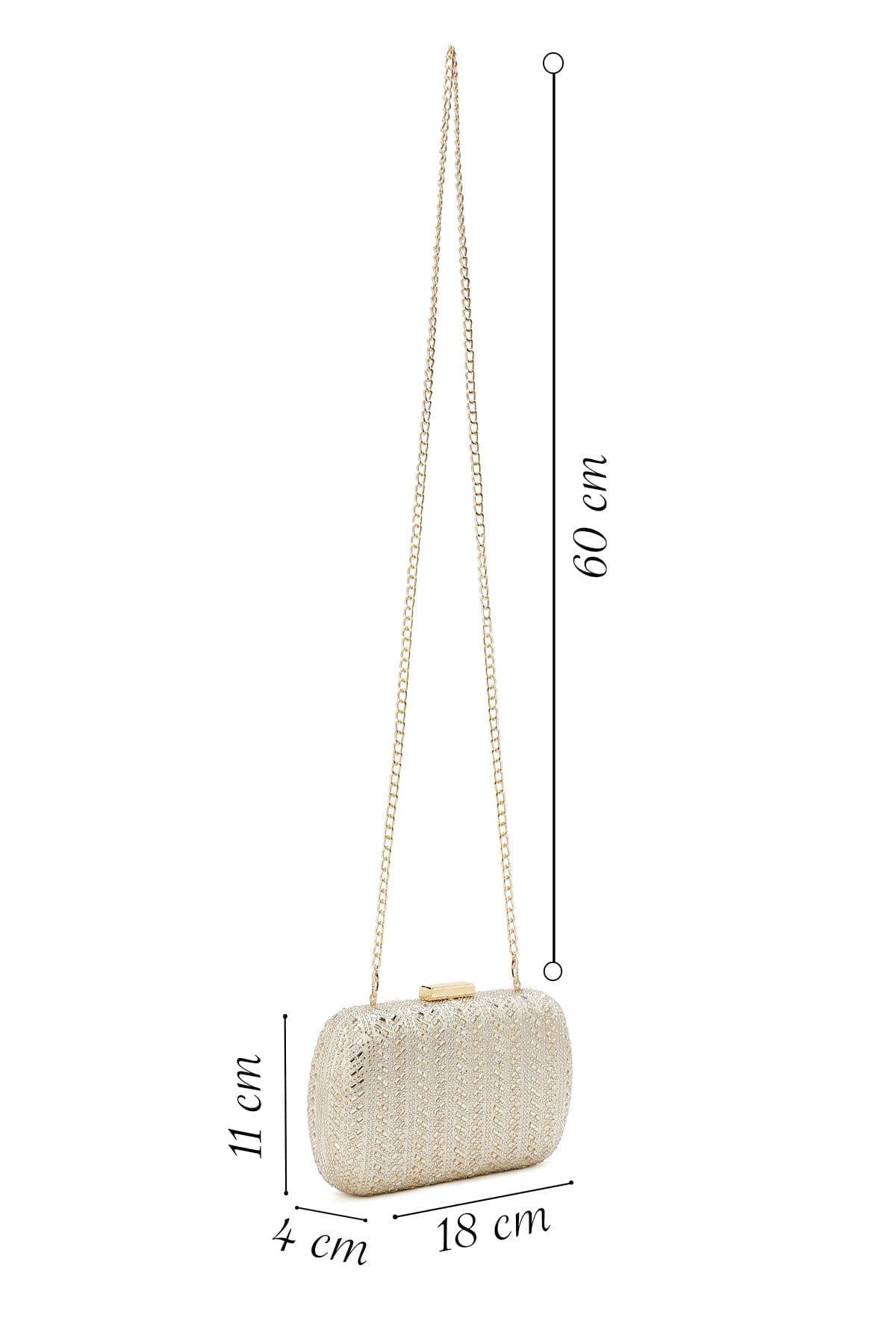 Kadın Altın Taşlı Abiye Mini Kutu Çanta