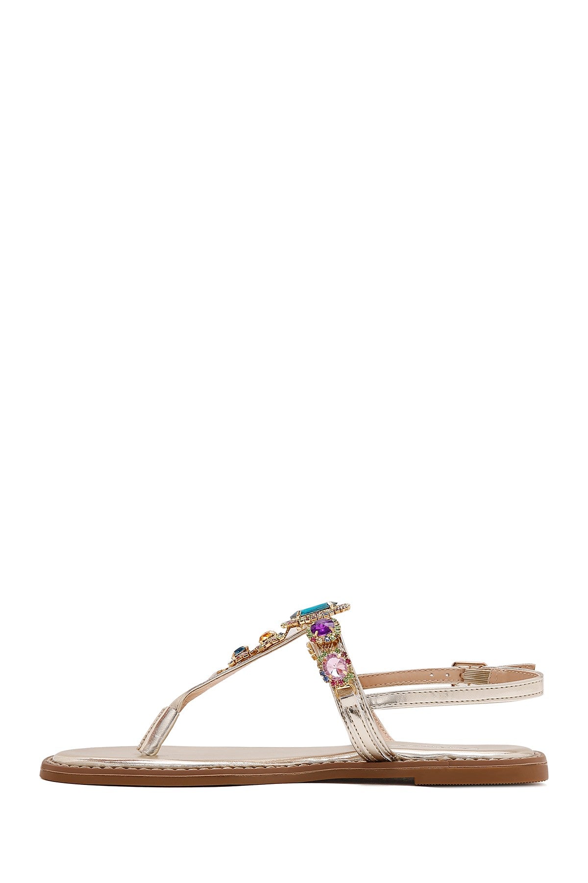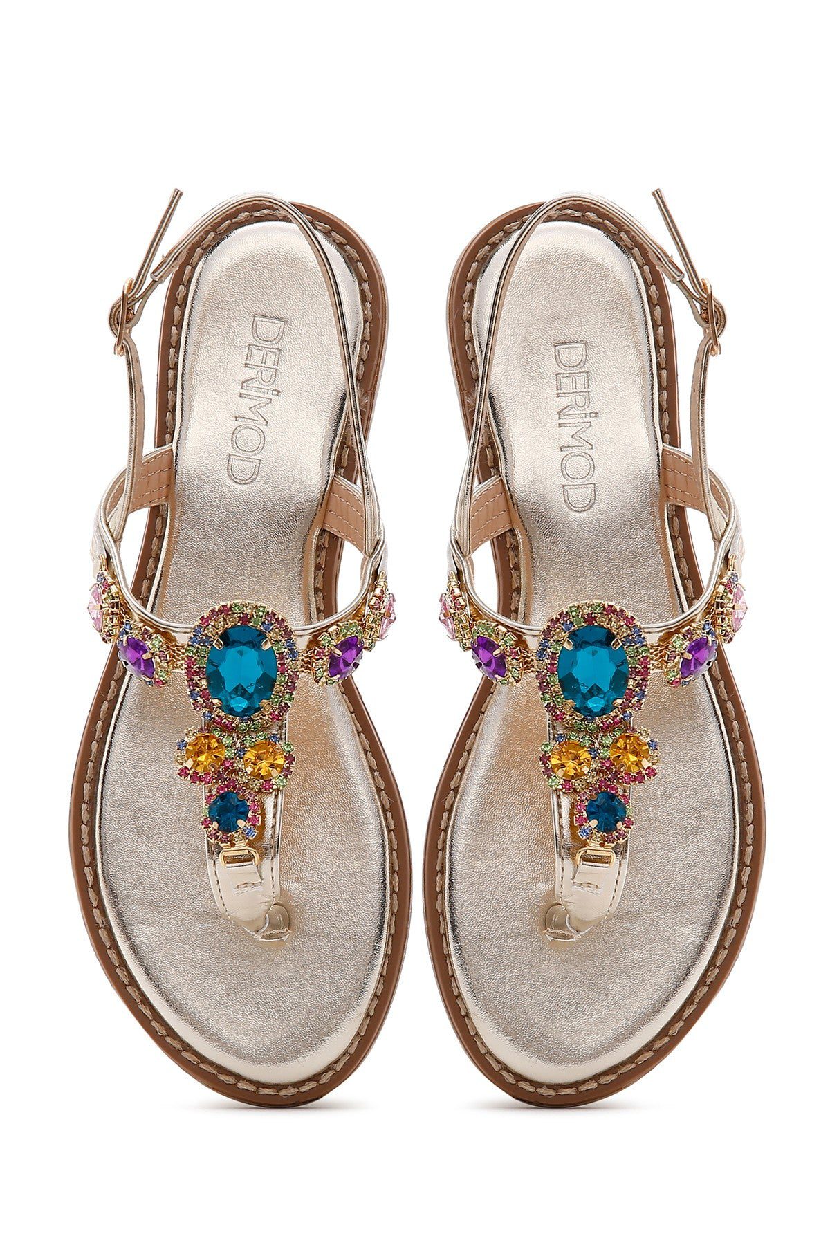 Kadın Altın Taşlı Parmak Arası Sandalet