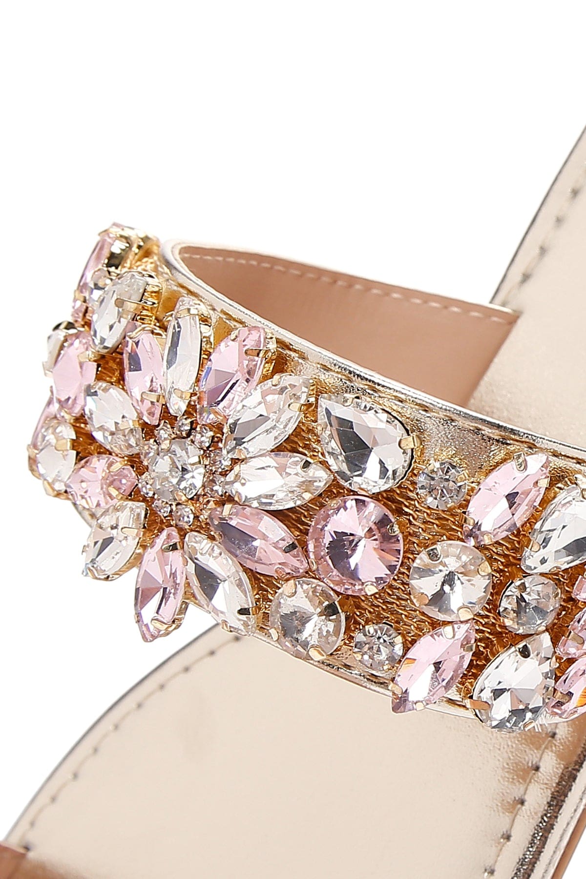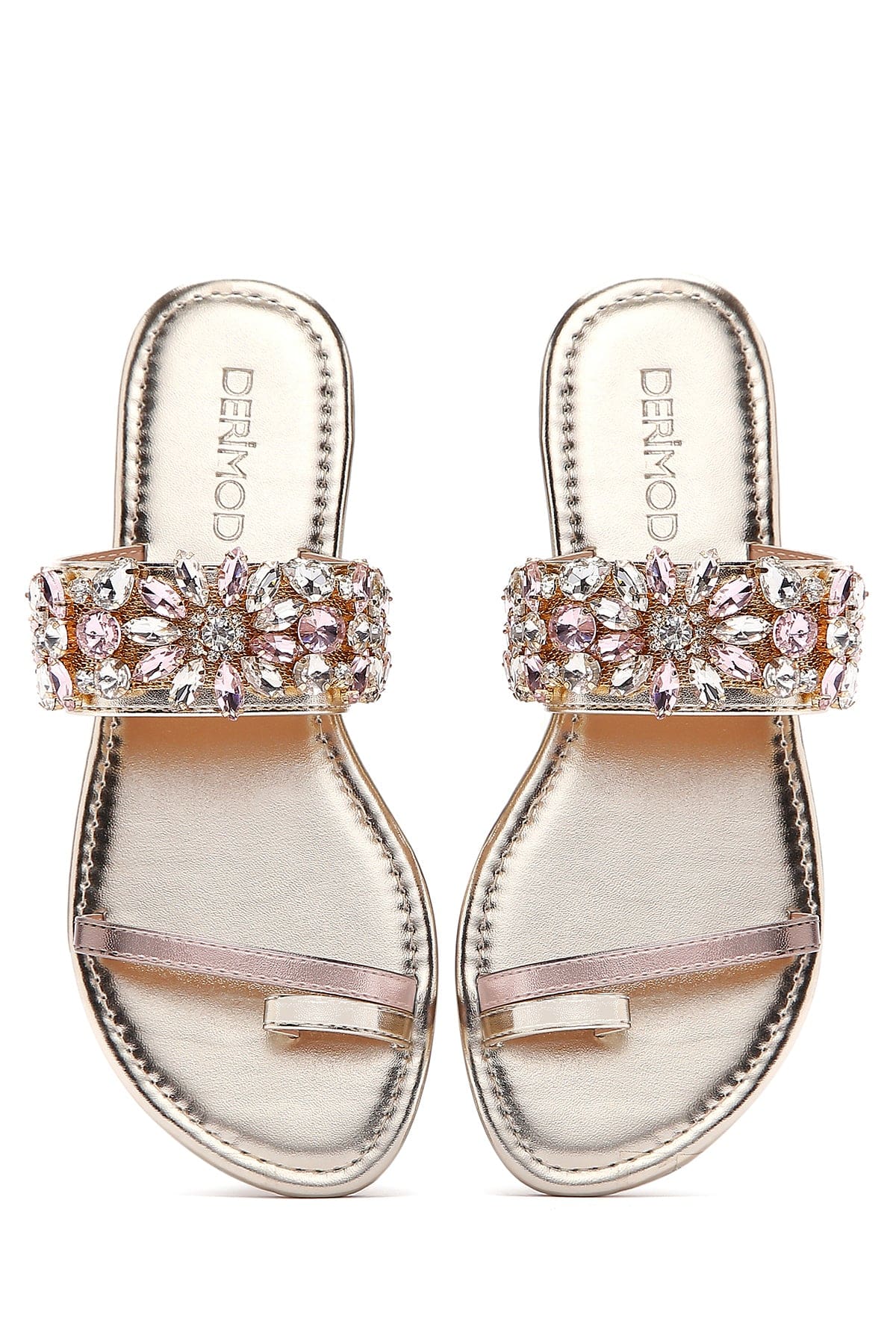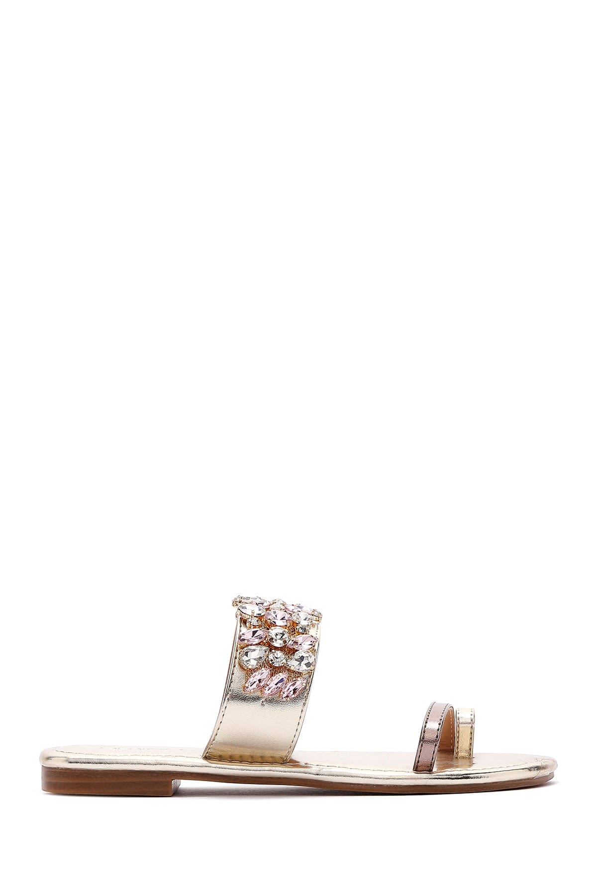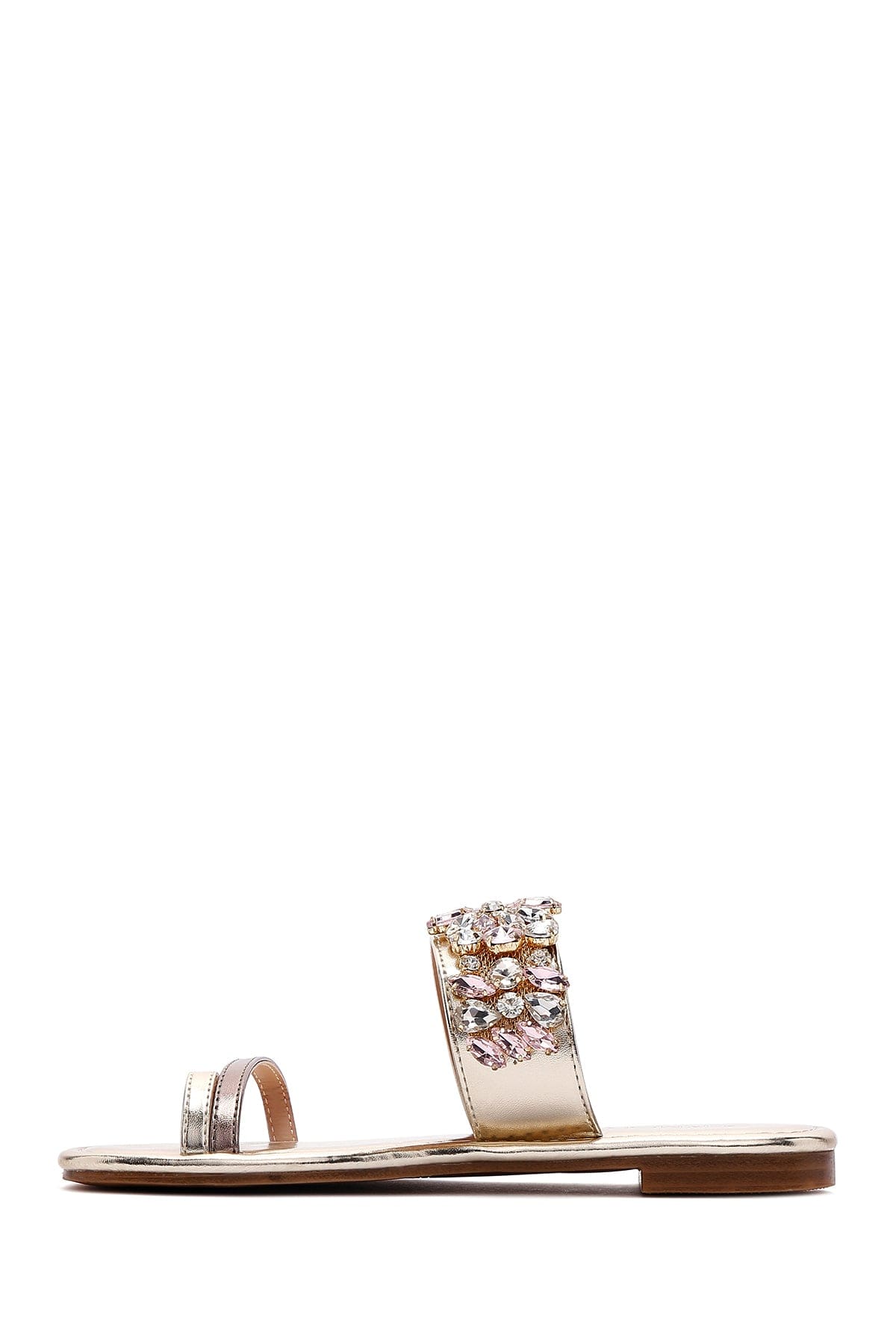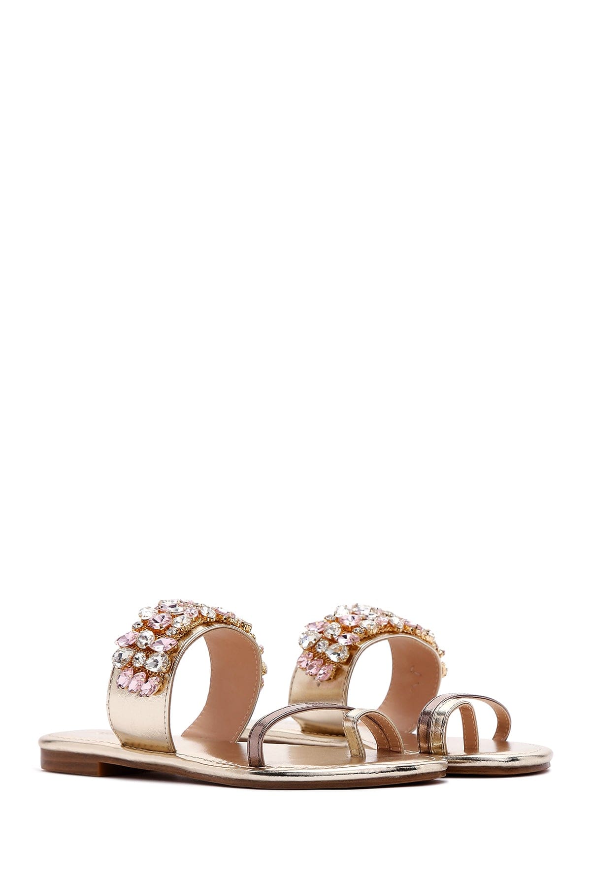 دمپایی زنانه طلایی نگیندار لاانگشتی دری مد