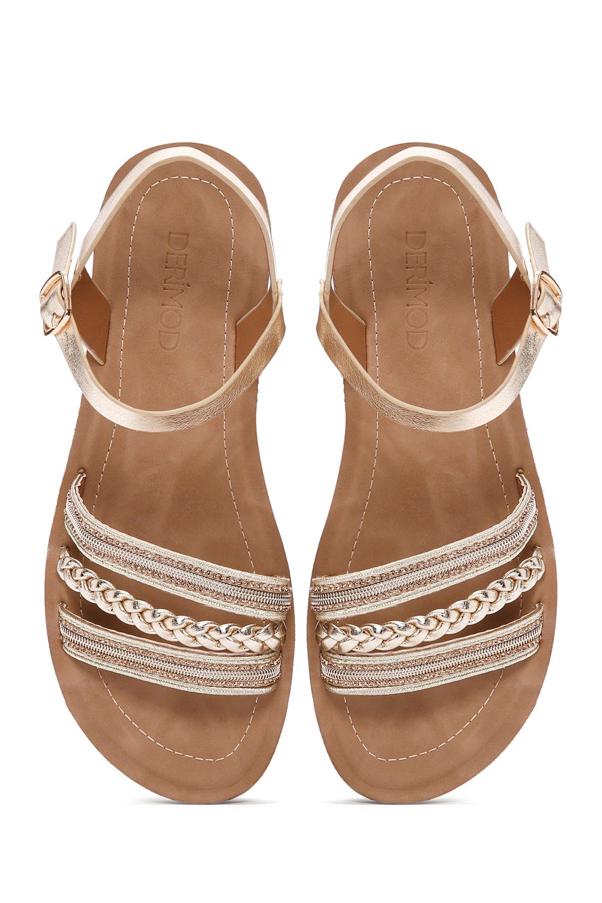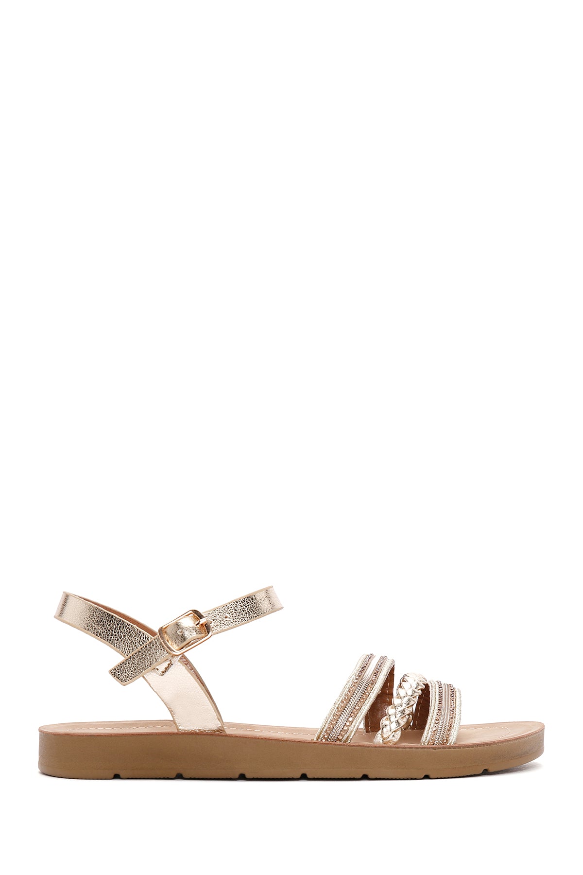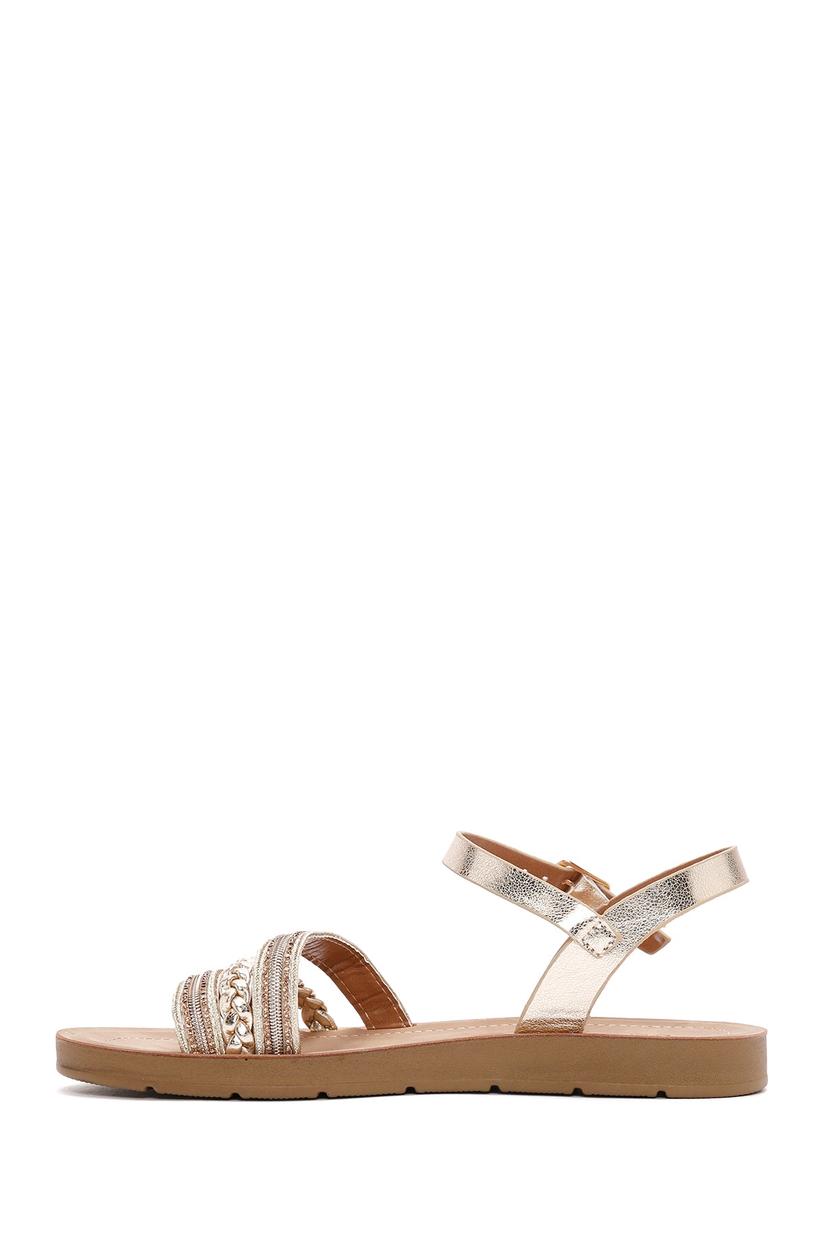 Kadın Altın Bilekten Bantlı Taşlı Sandalet