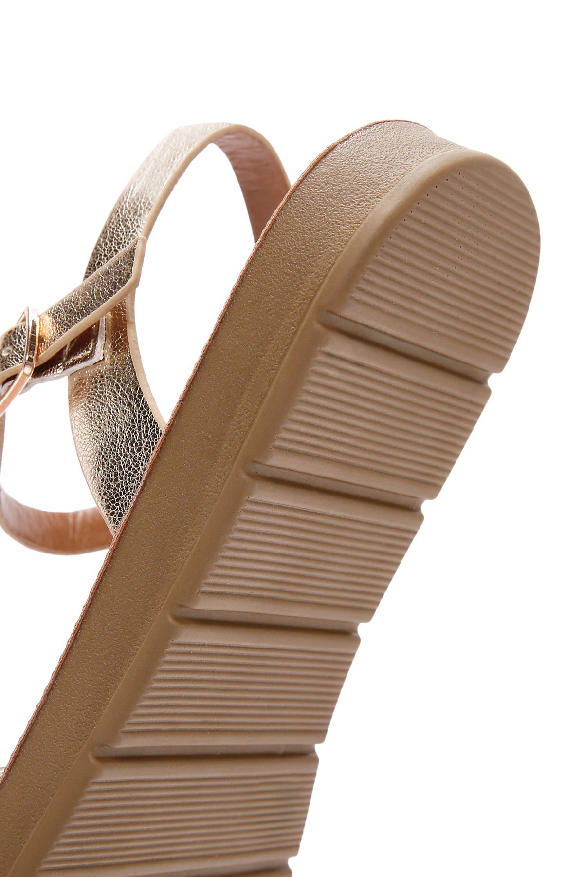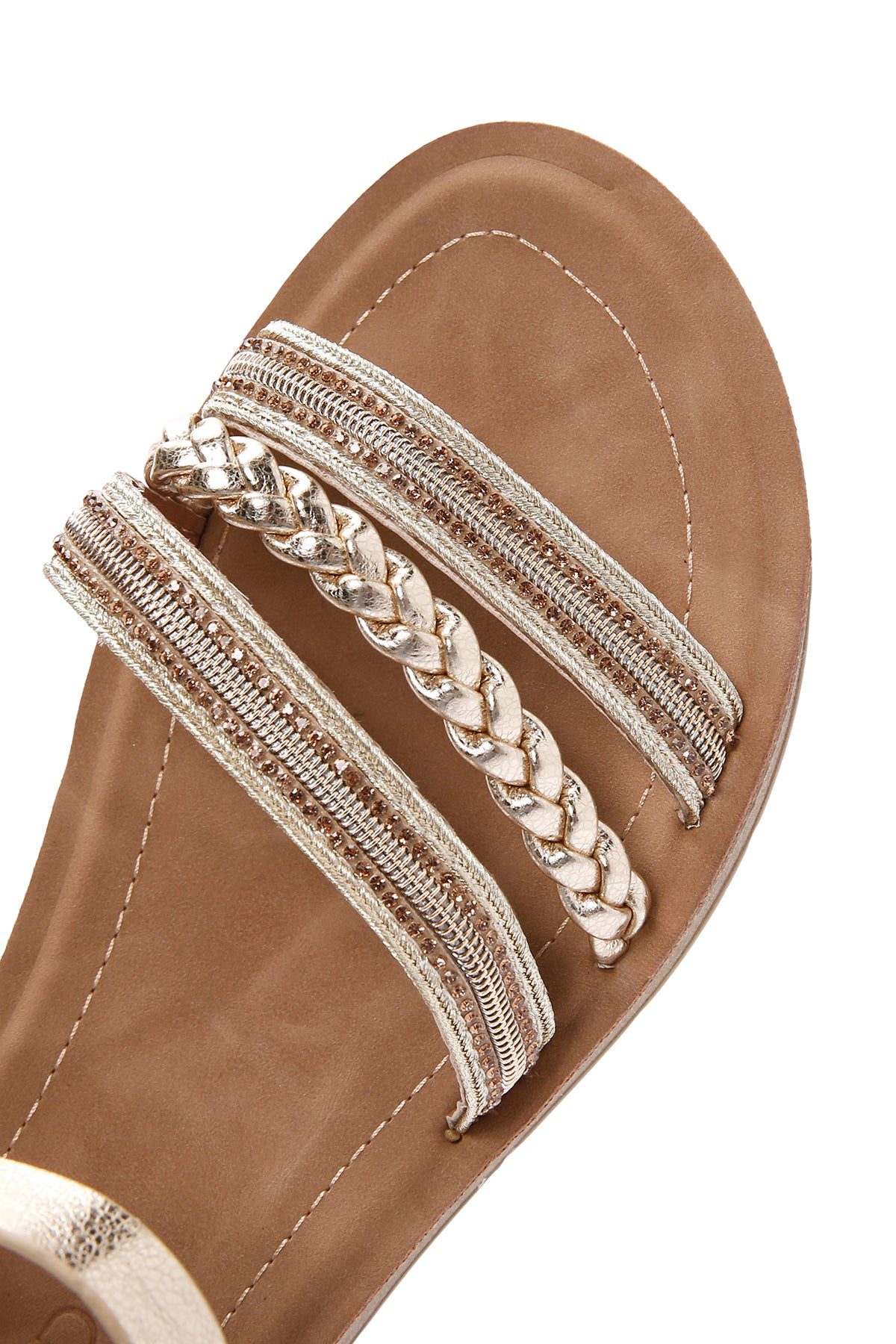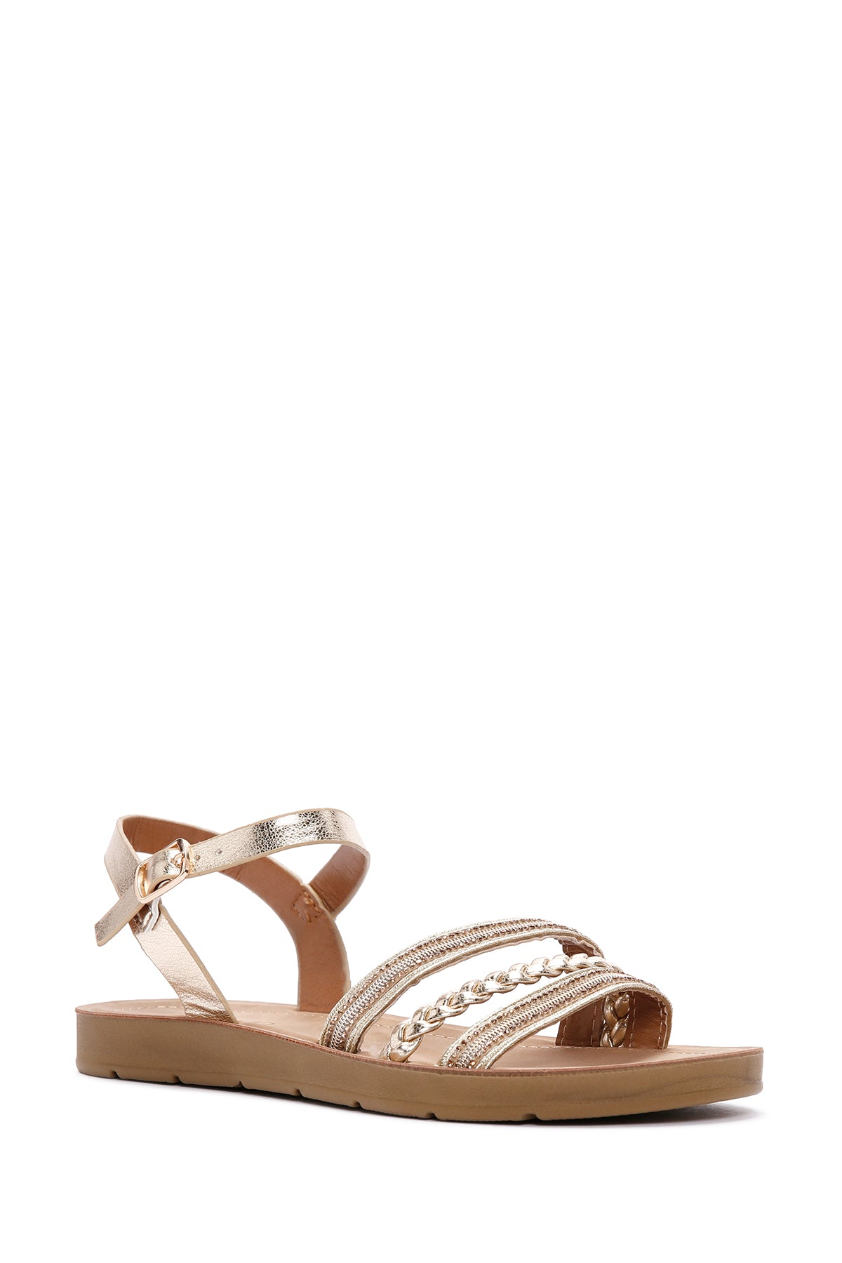 Kadın Altın Bilekten Bantlı Taşlı Sandalet