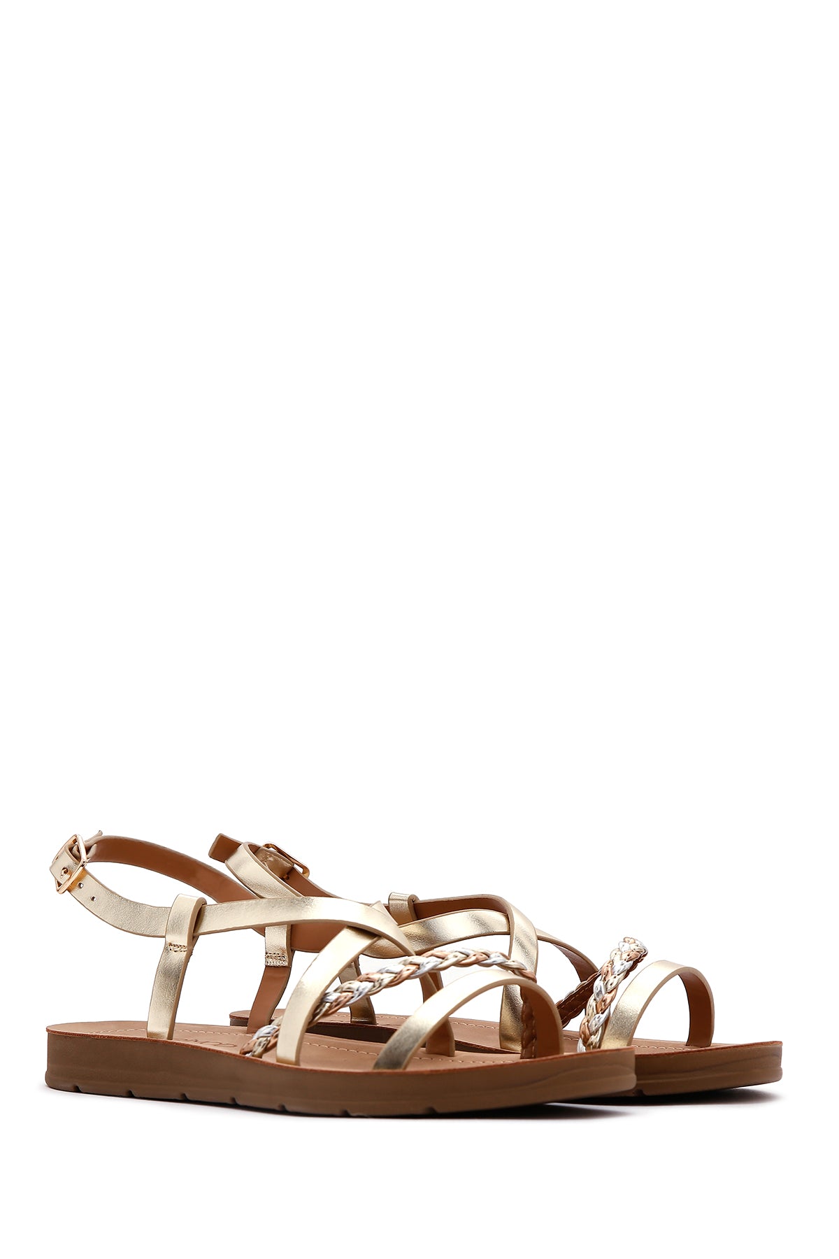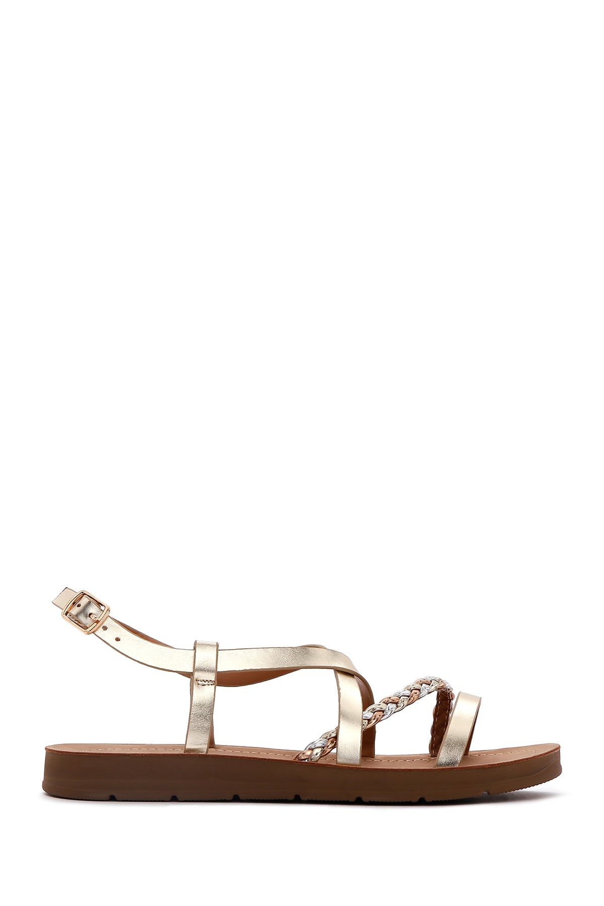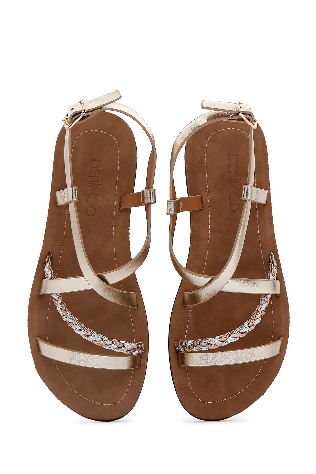 Kadın Altın Örgü Detaylı Sandalet