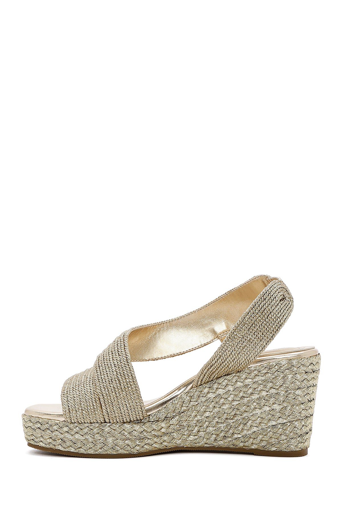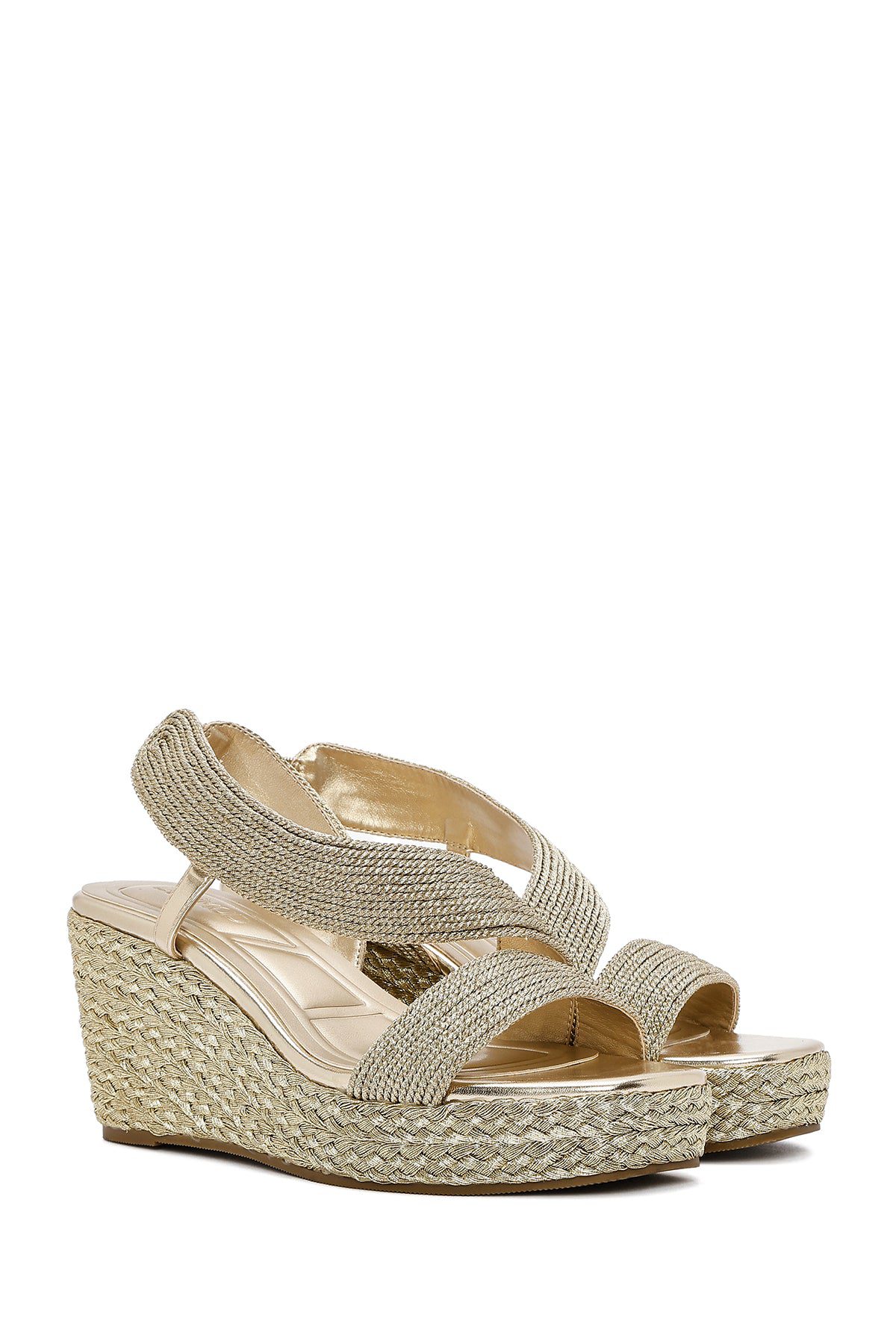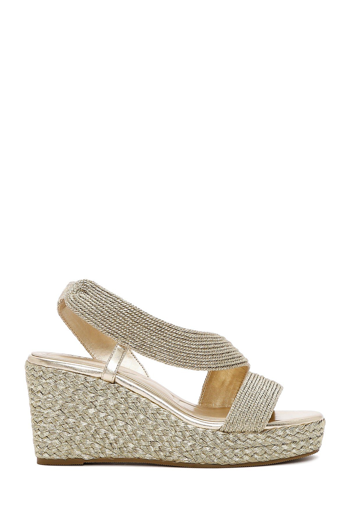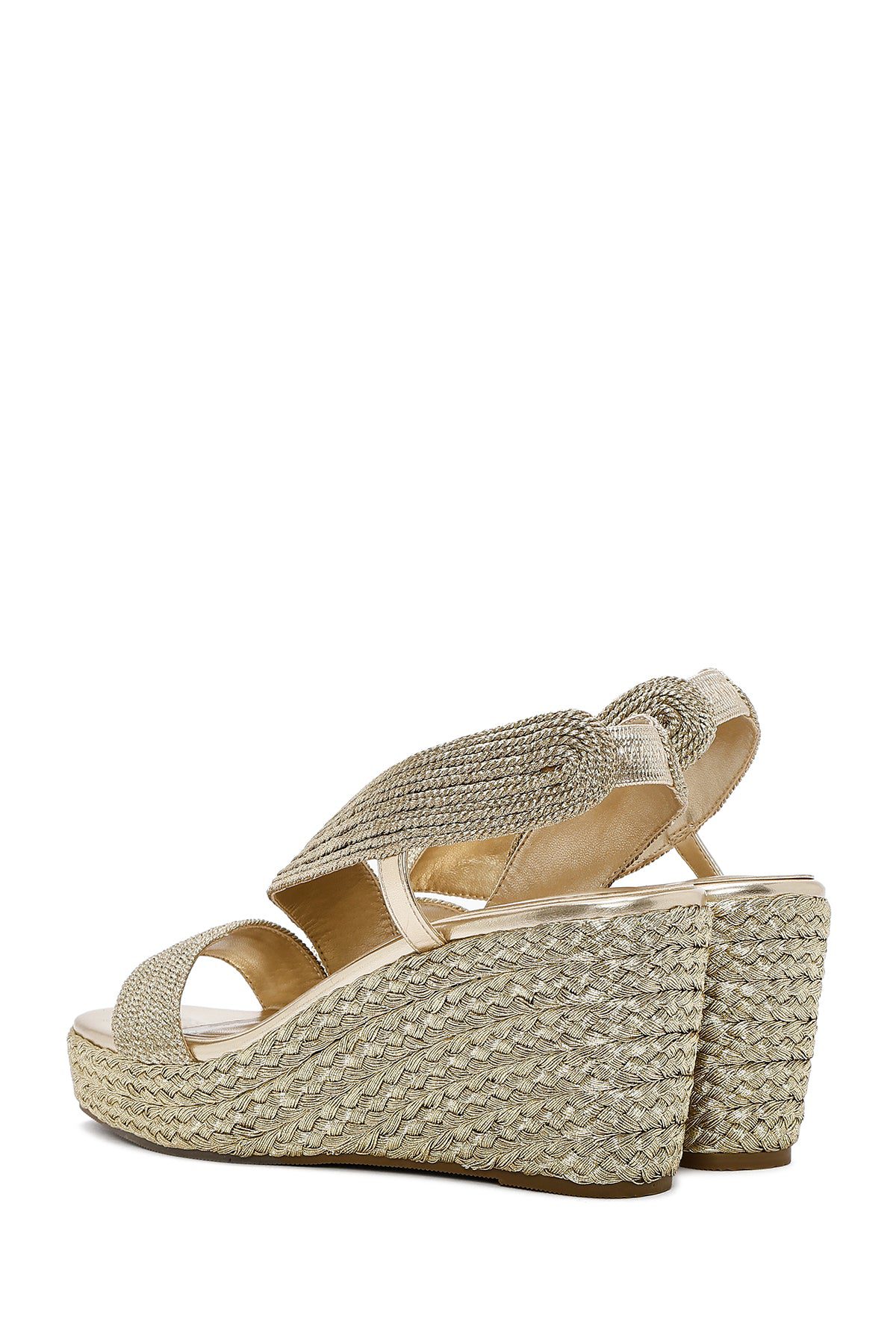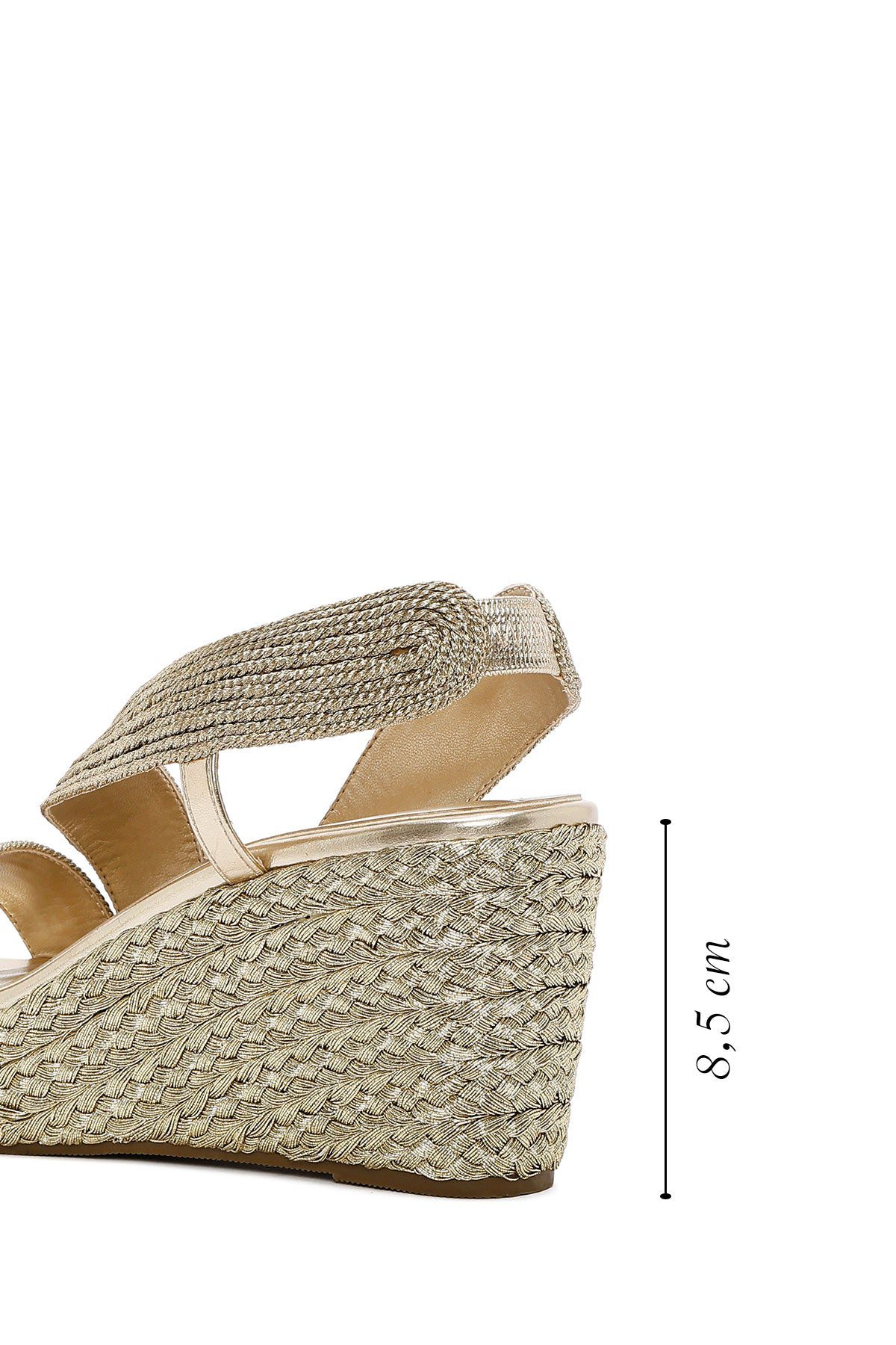 Kadın Altın Dolgu Topuklu Örgü Espadril Sandalet