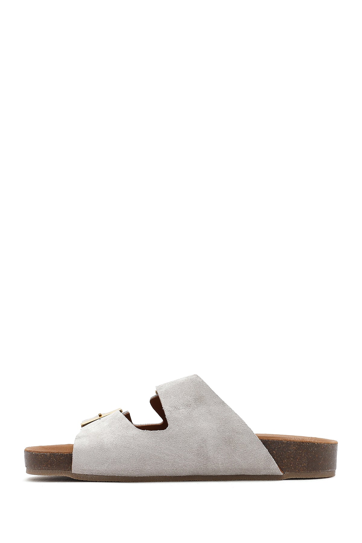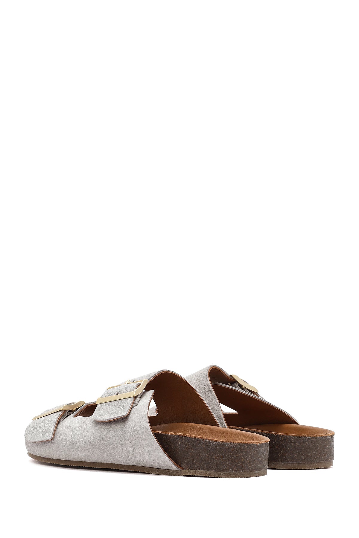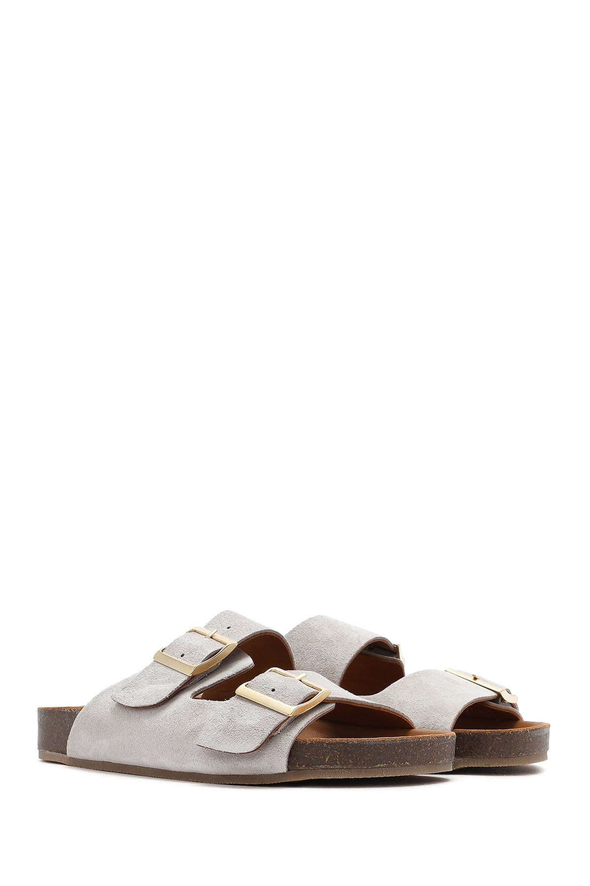 Kadın Gri Çift Tokalı Süet Deri Terlik