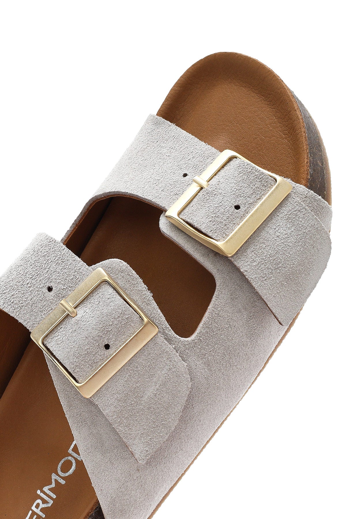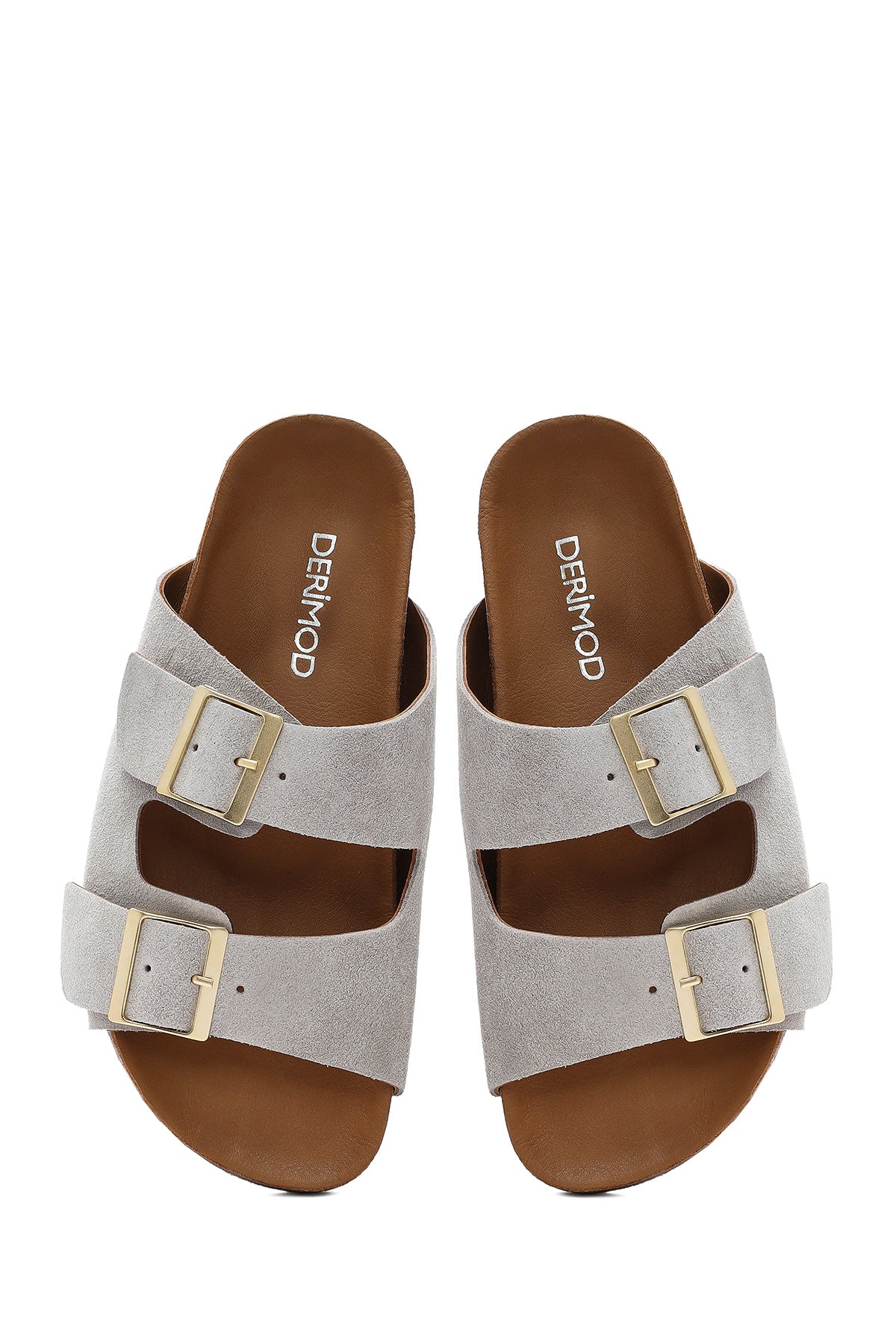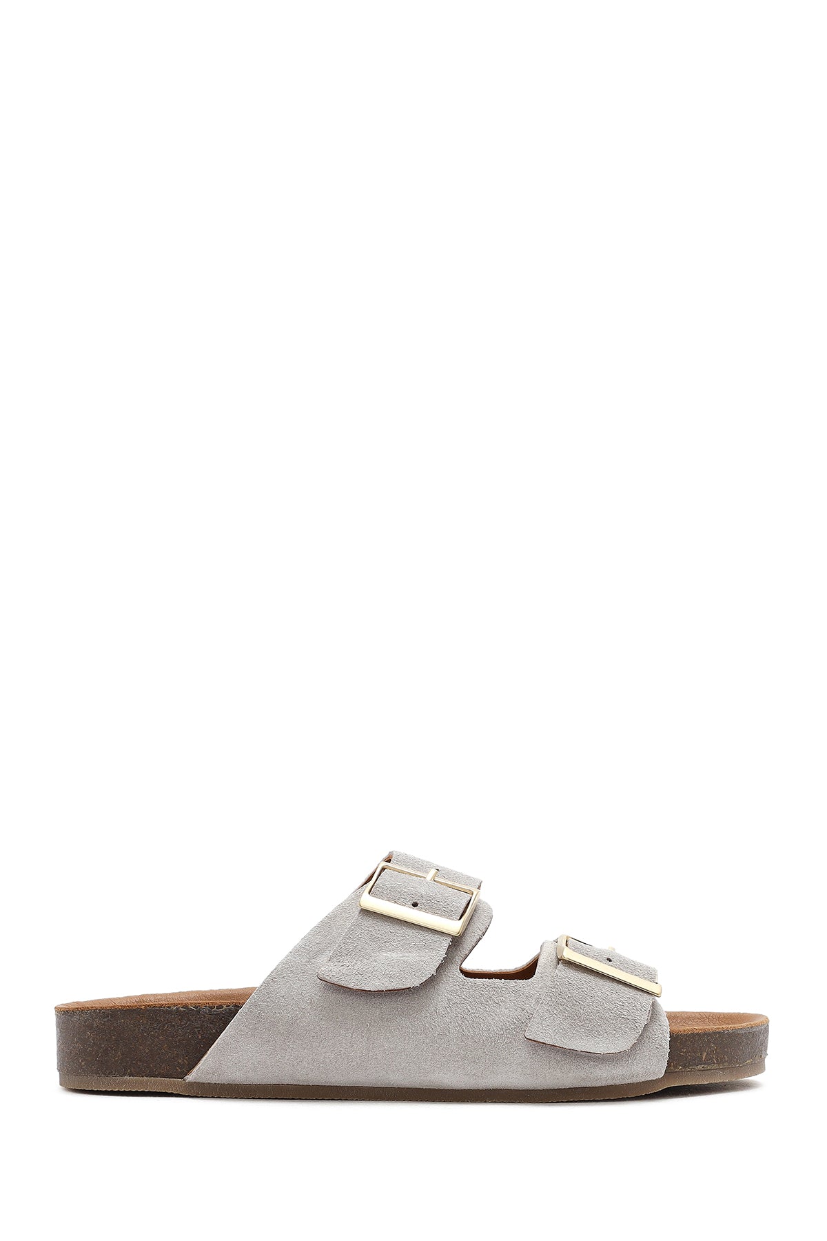 Kadın Gri Çift Tokalı Süet Deri Terlik