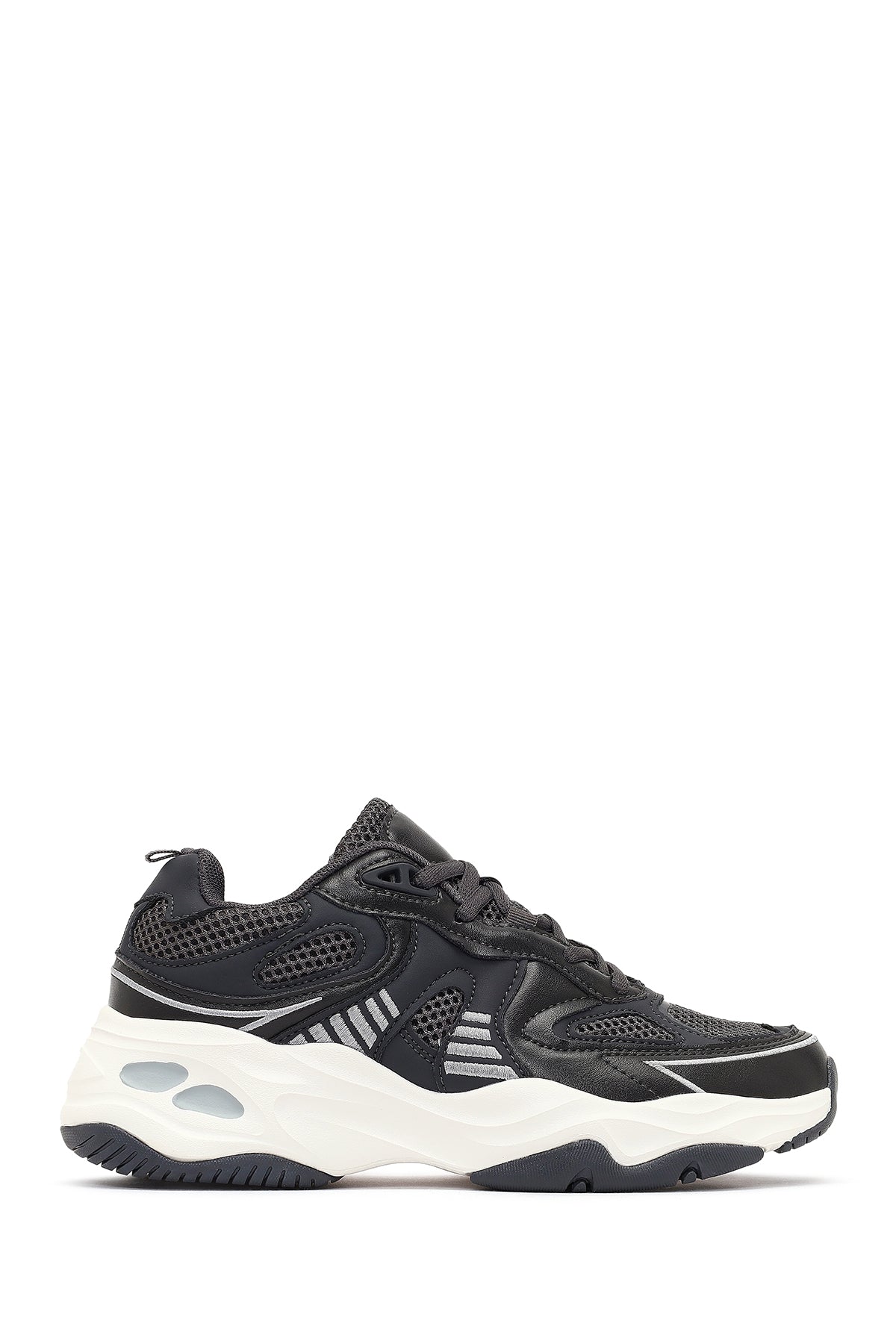Kadın Gri Bağcıklı Kalın Tabanlı Sneaker