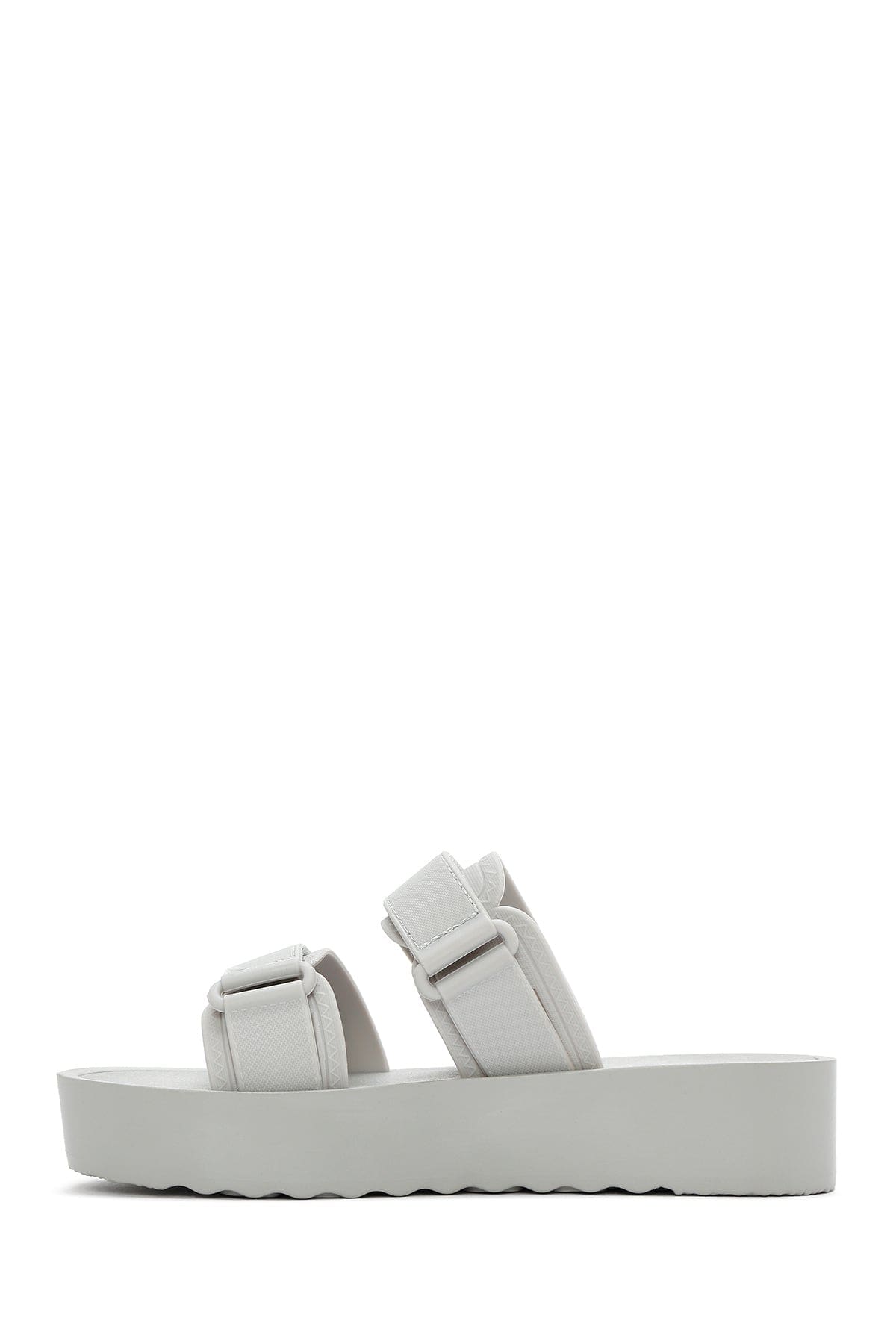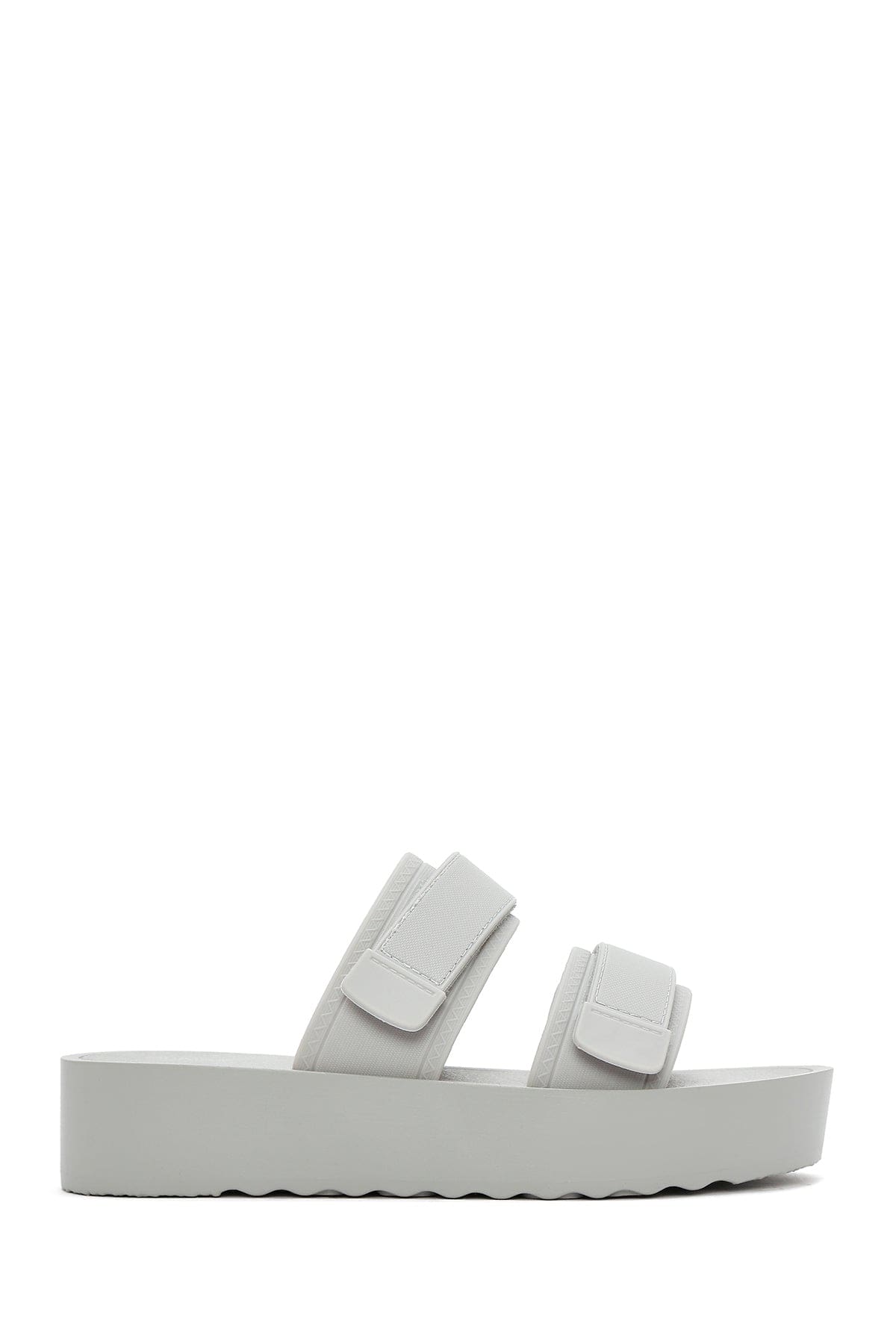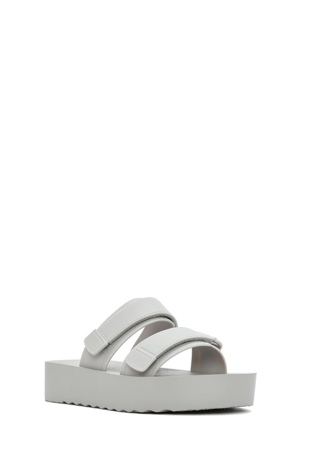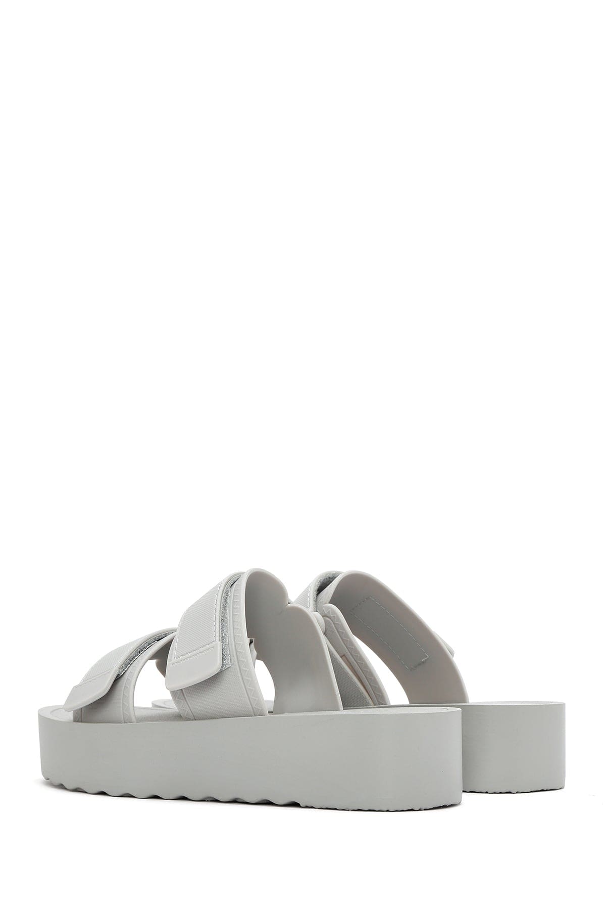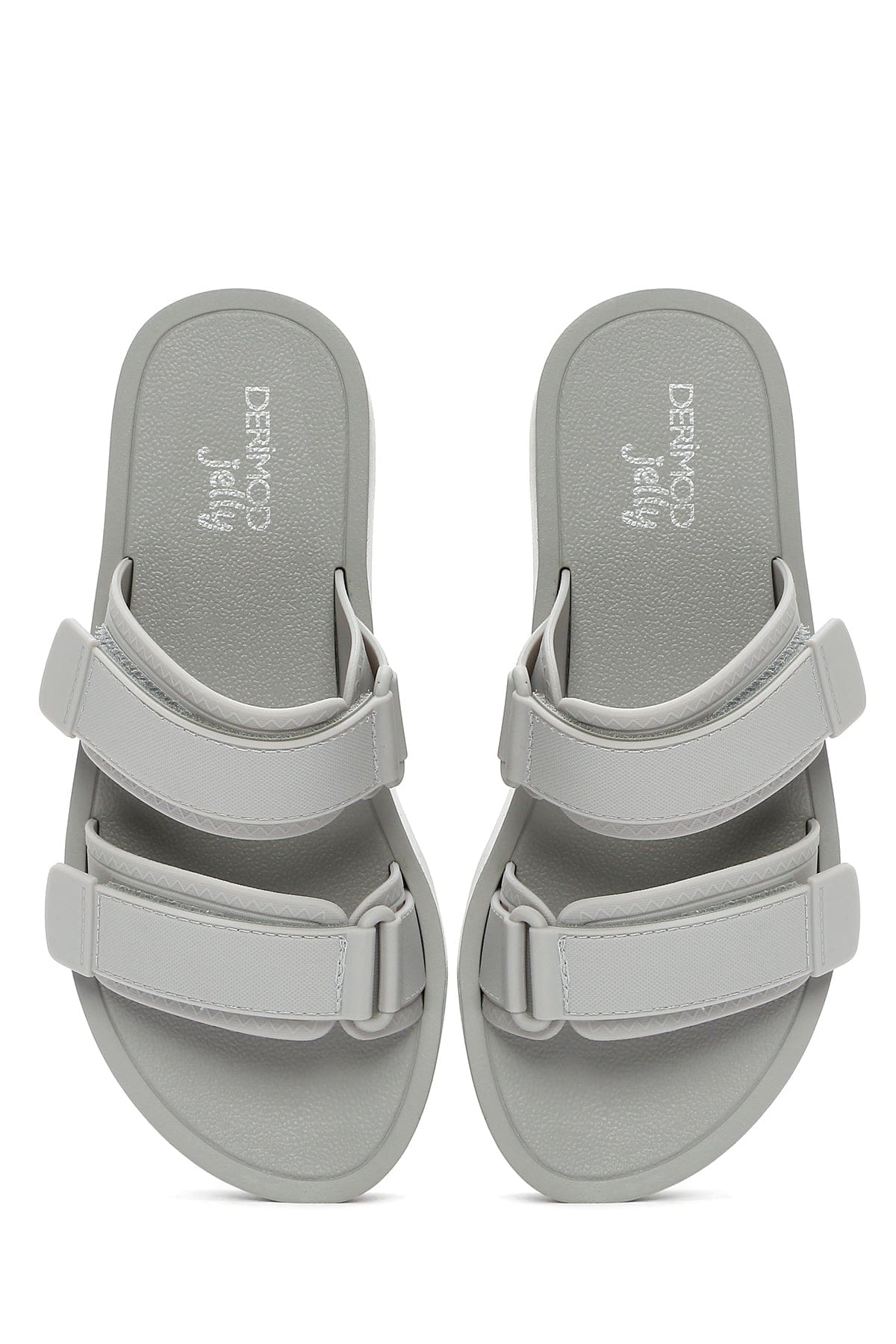 Kadın Gri Bantlı Kalın Tabanlı Jelly Terlik