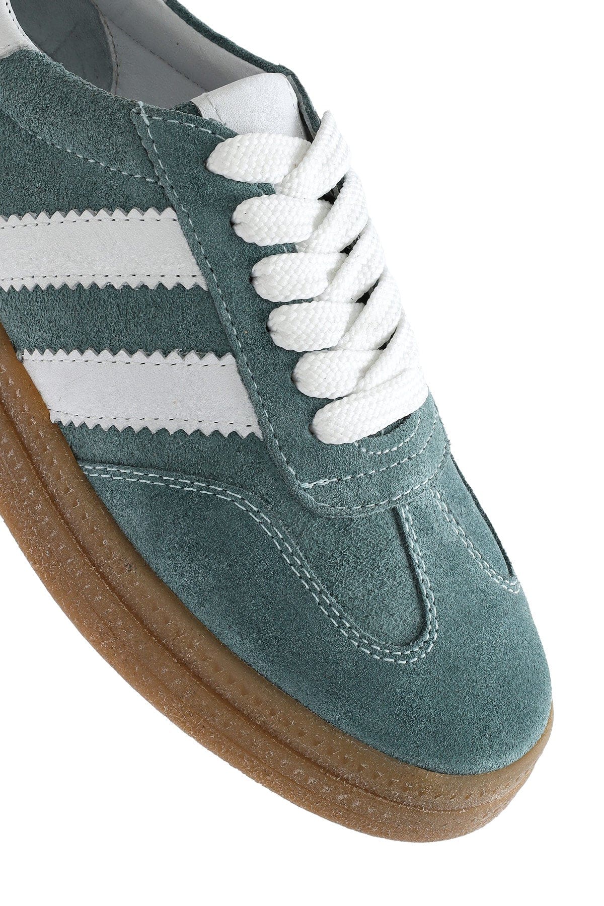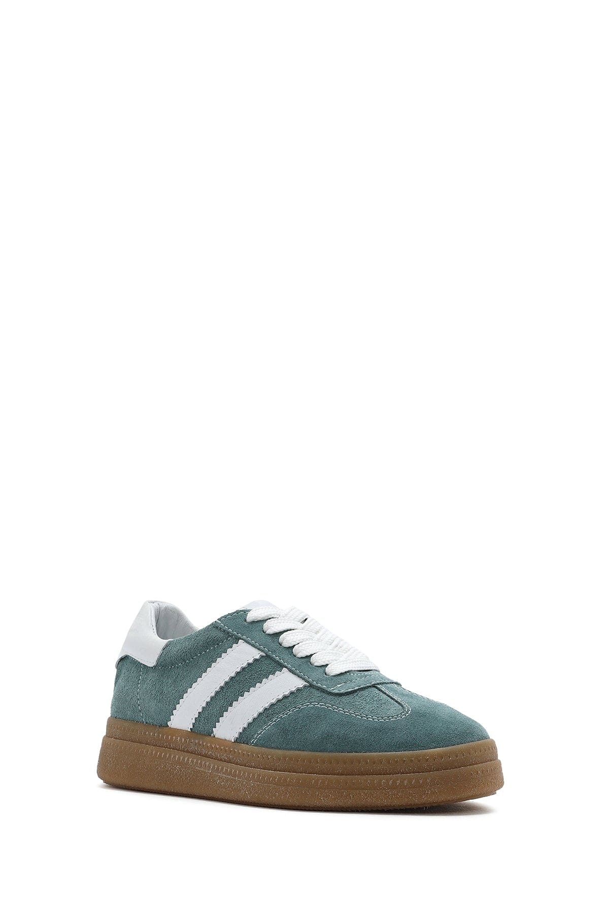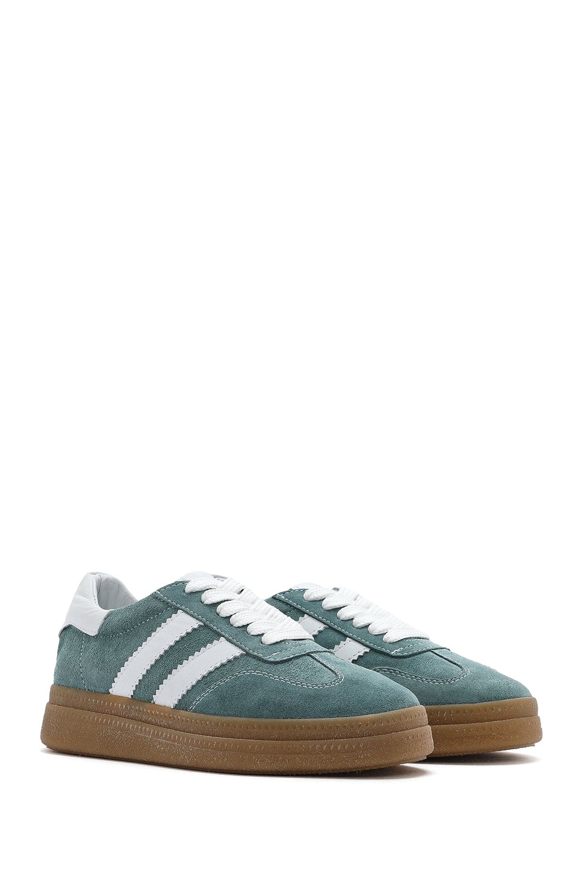Kadın Yeşil Bağcıklı Kalın Tabanlı Süet Deri Sneaker