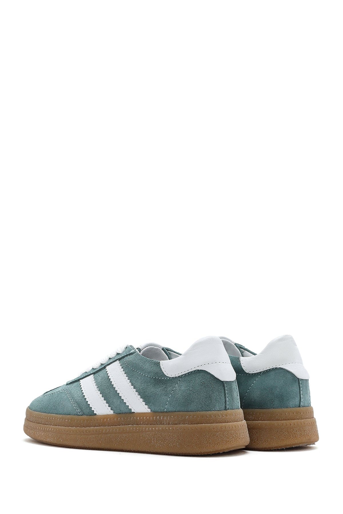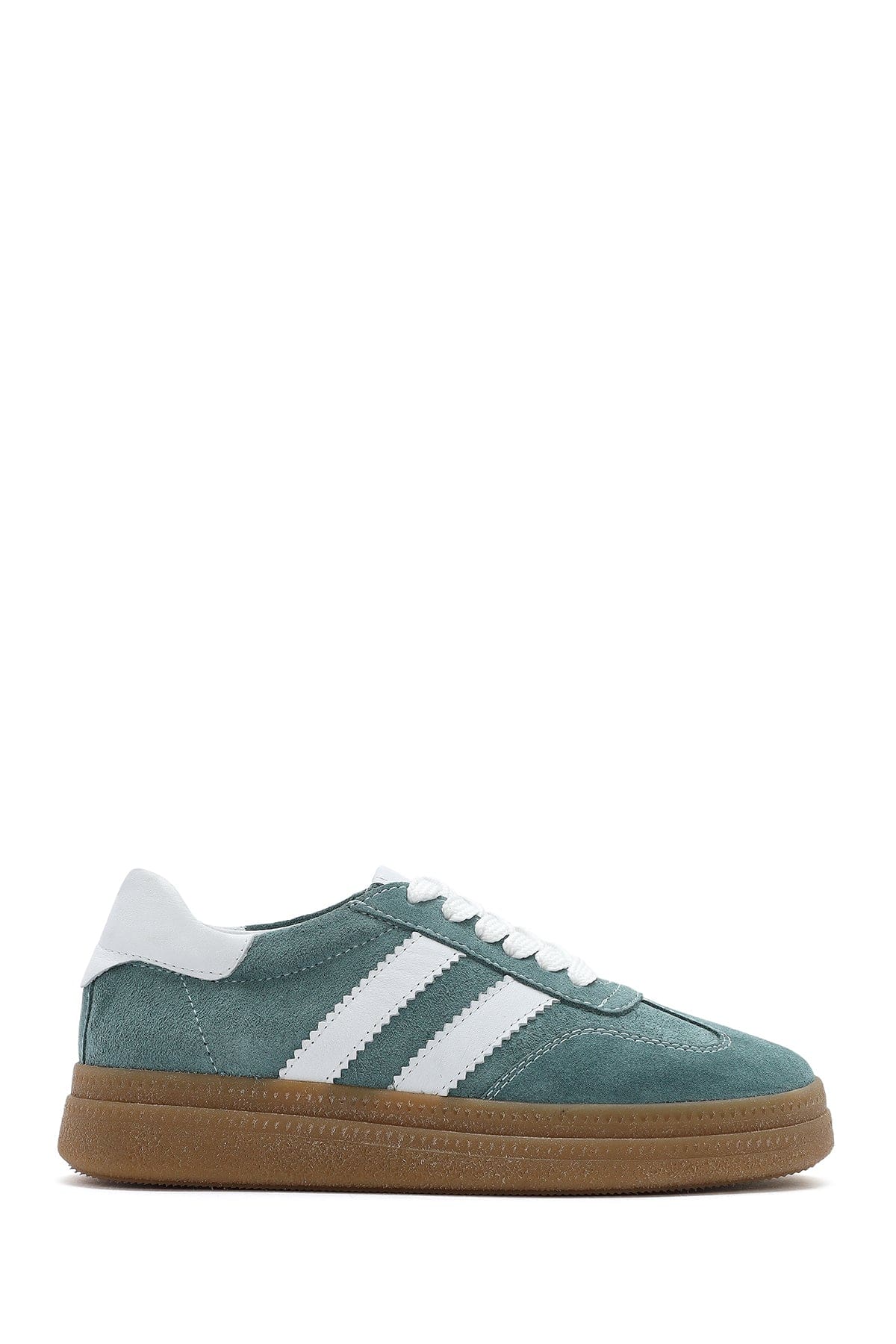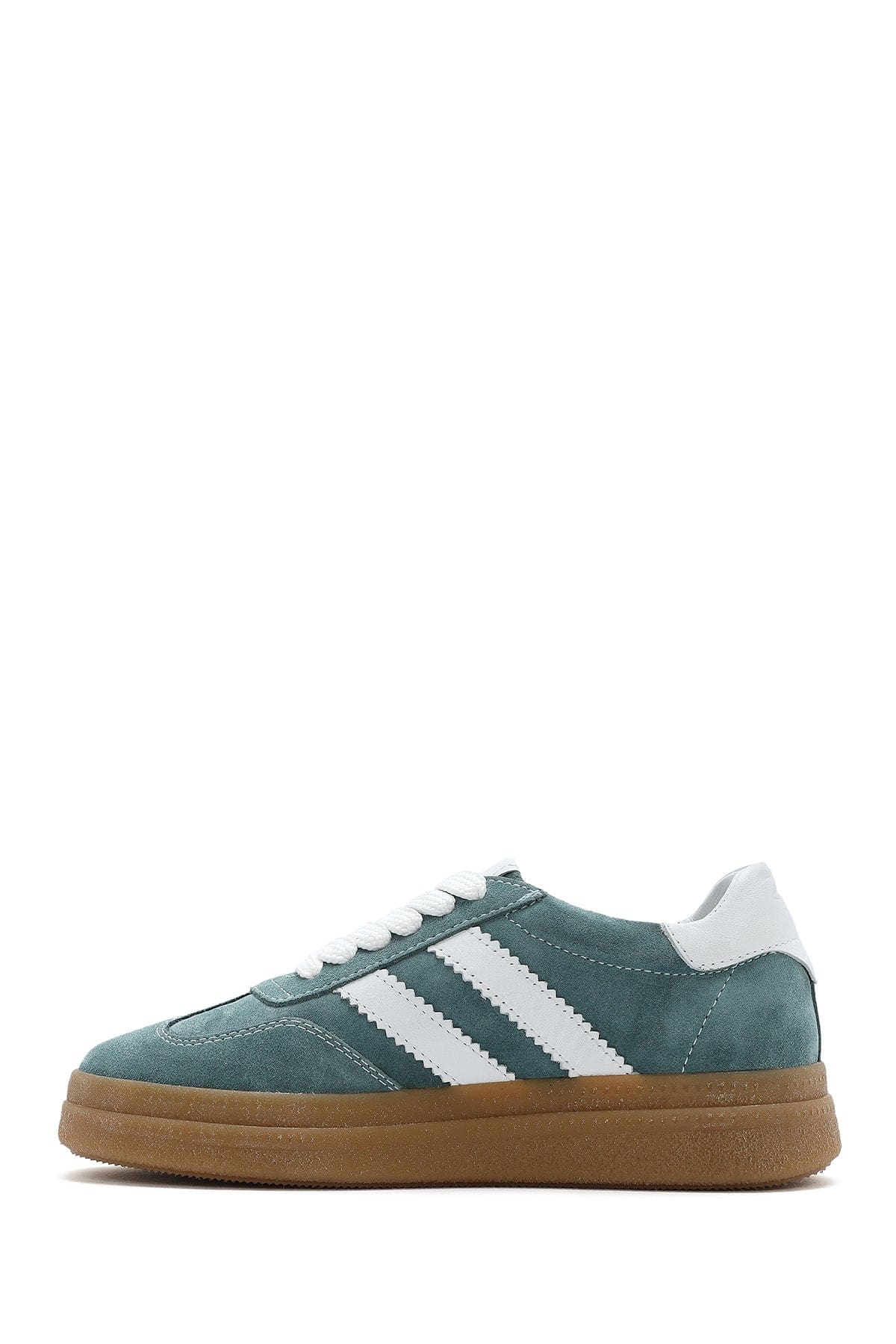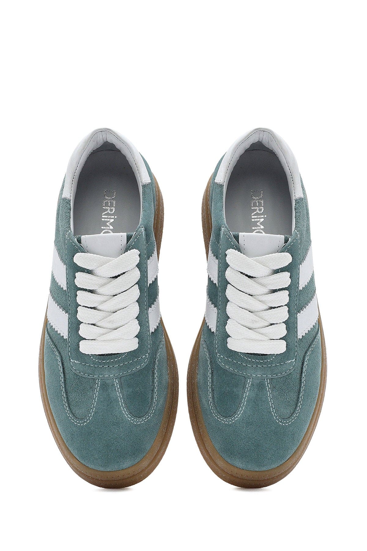 Kadın Yeşil Bağcıklı Kalın Tabanlı Süet Deri Sneaker
