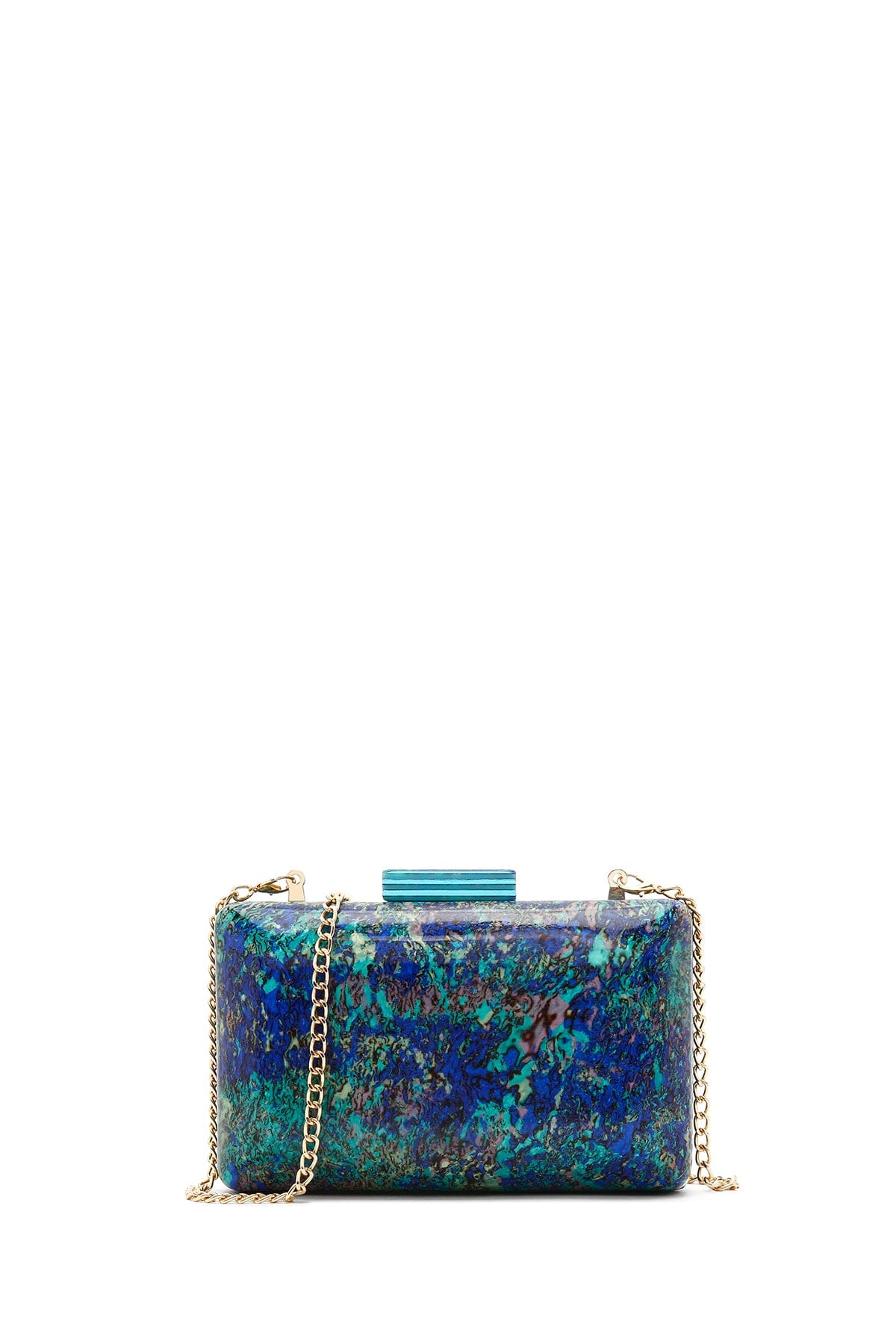 Kadın Yeşil Uzun Zincir Askılı Desenli Mini Portföy Abiye Çantası