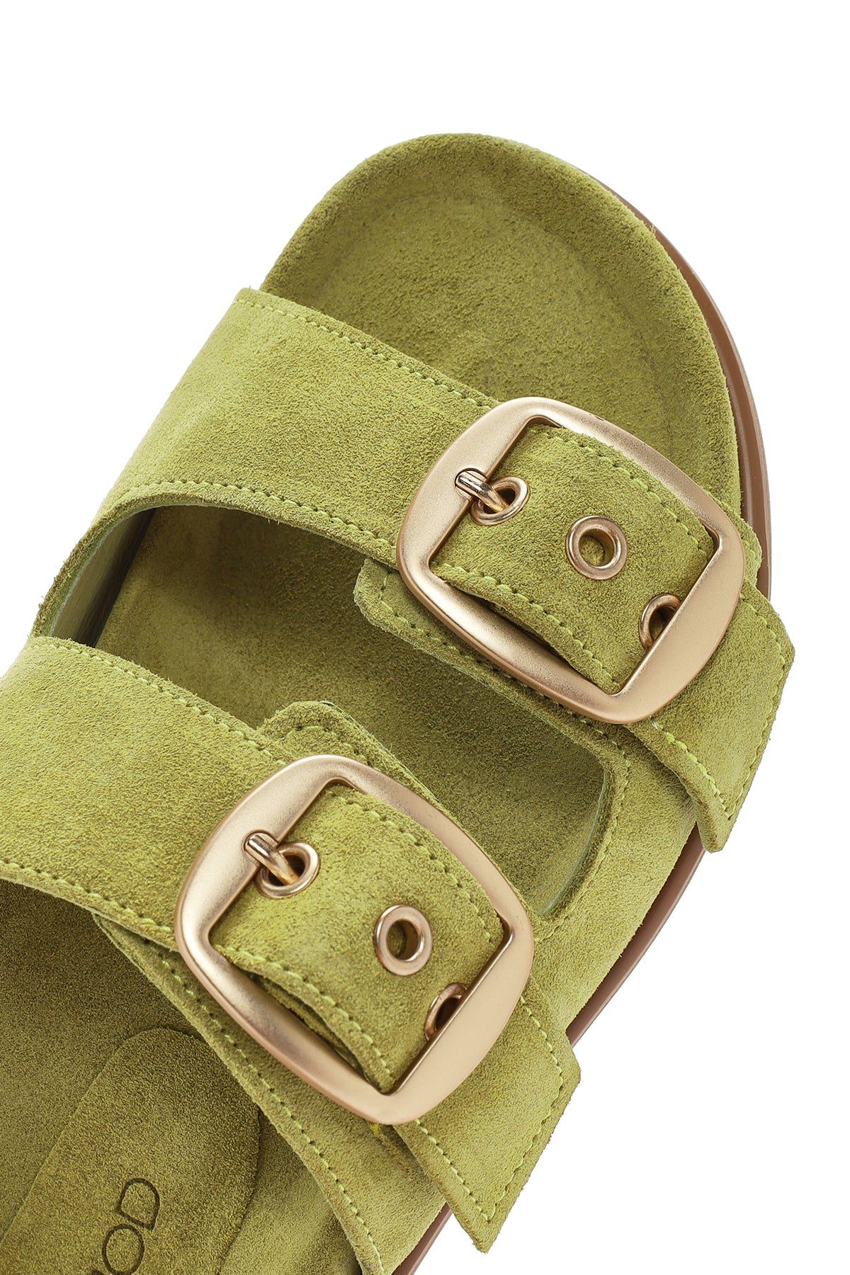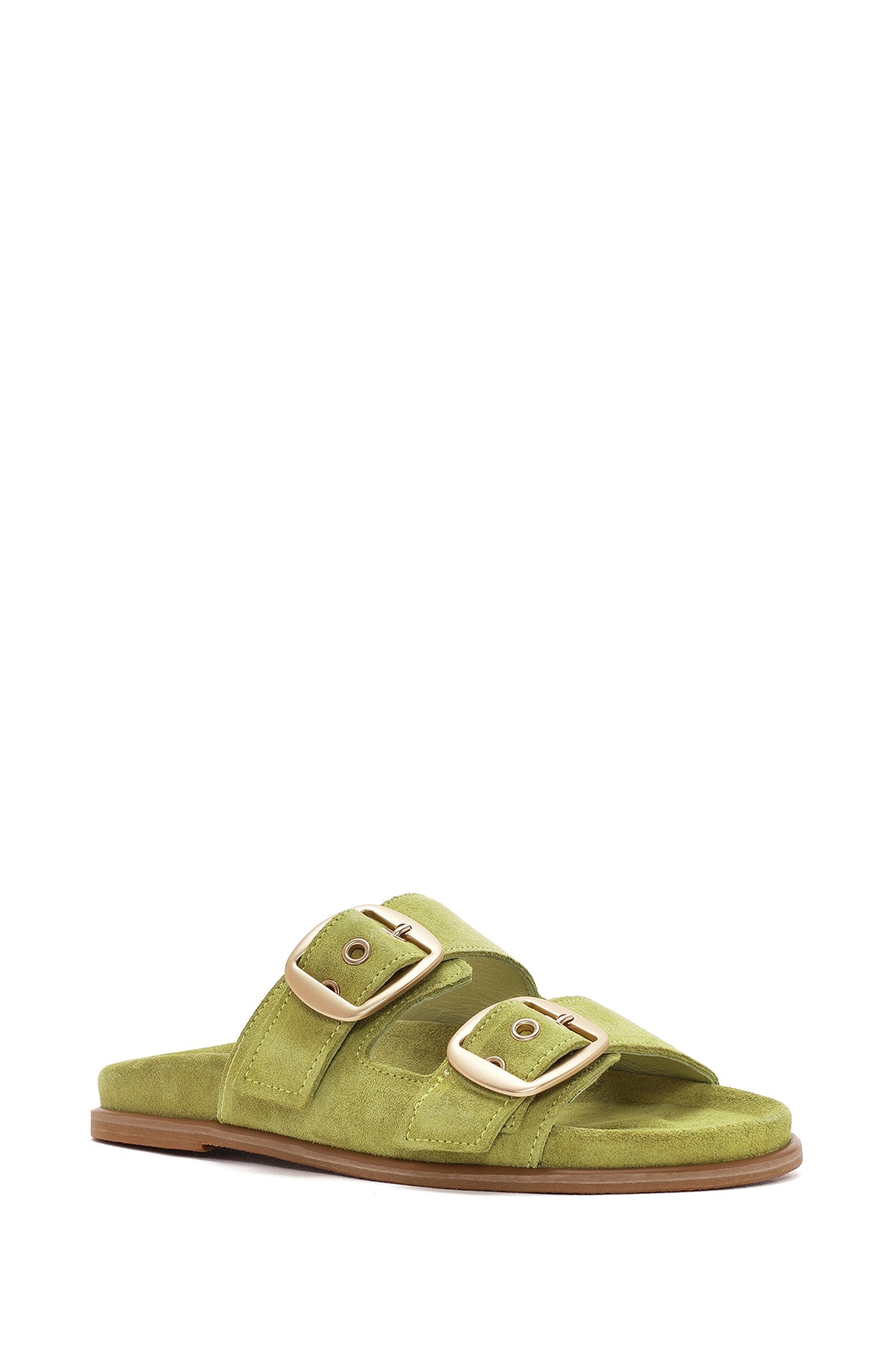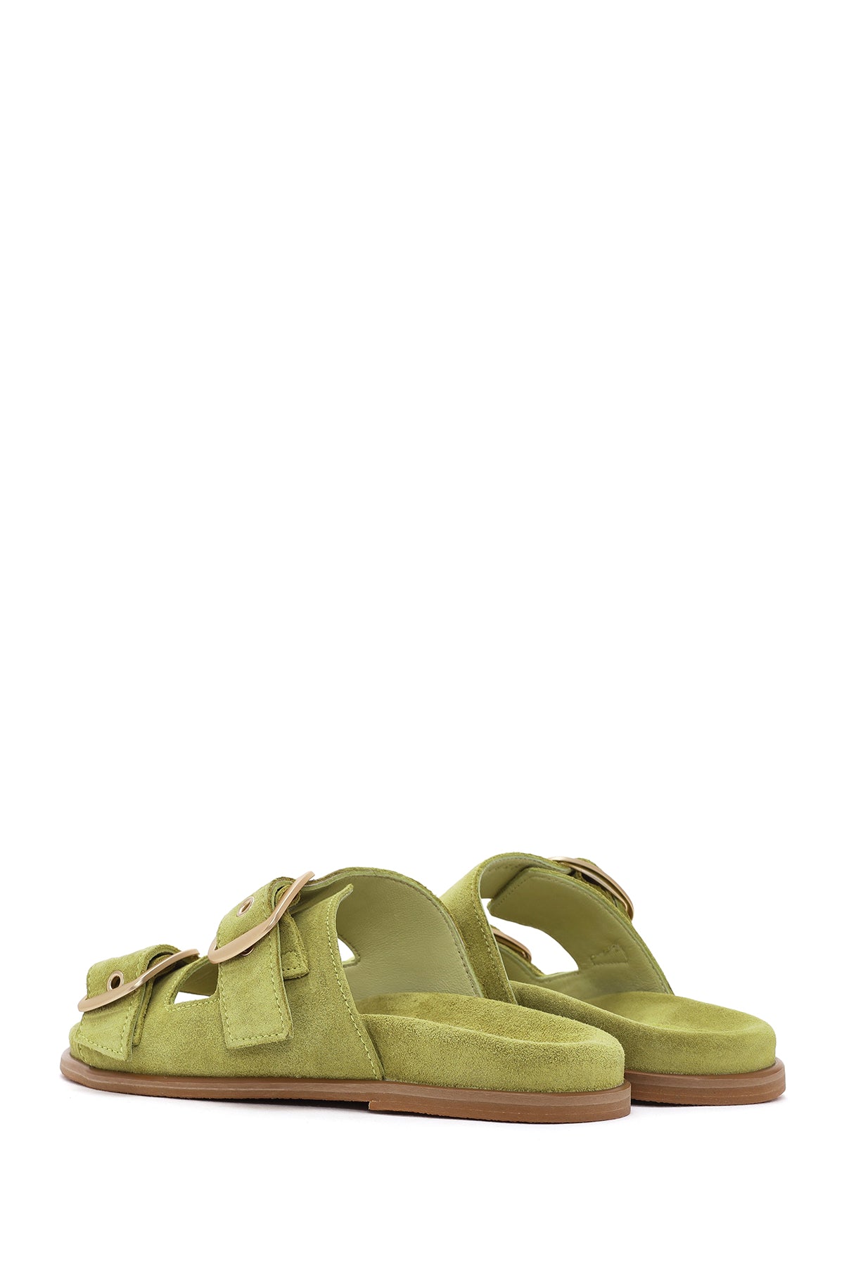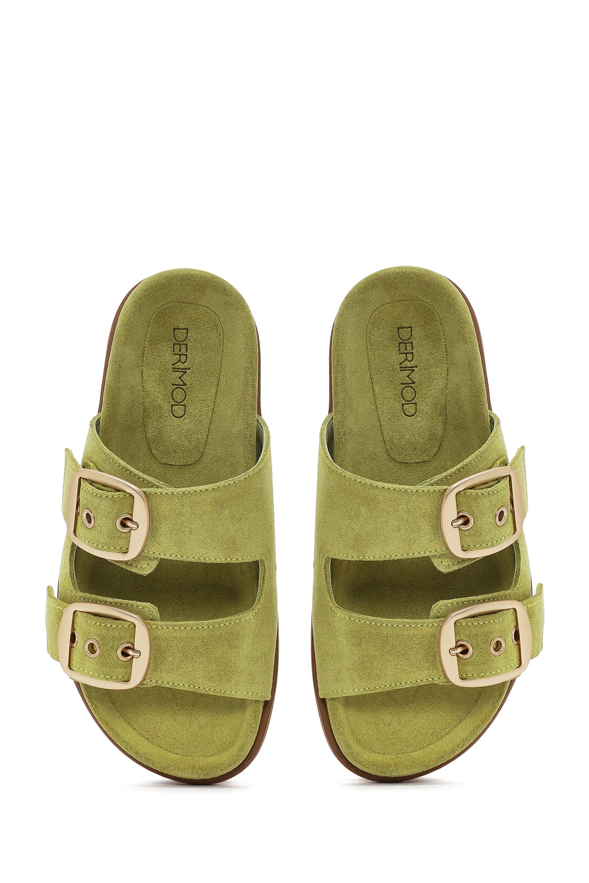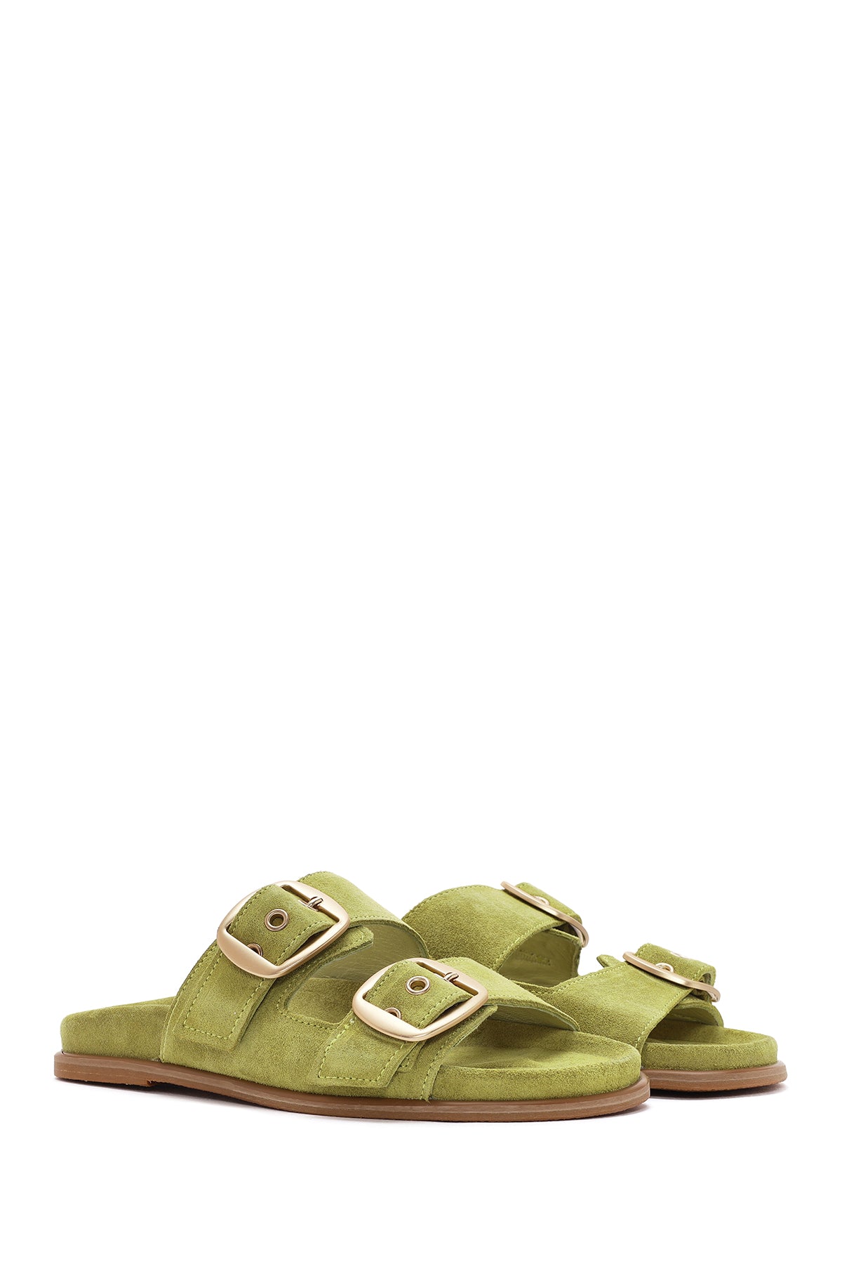 Kadın Yeşil Tokalı Süet Deri Terlik