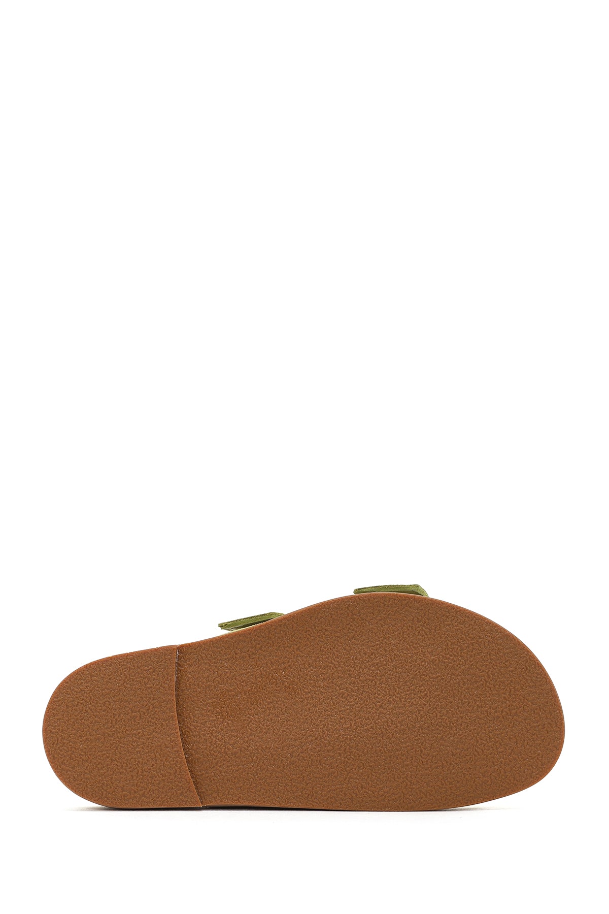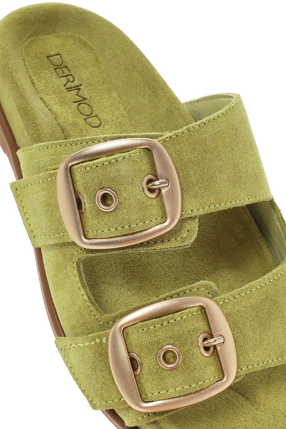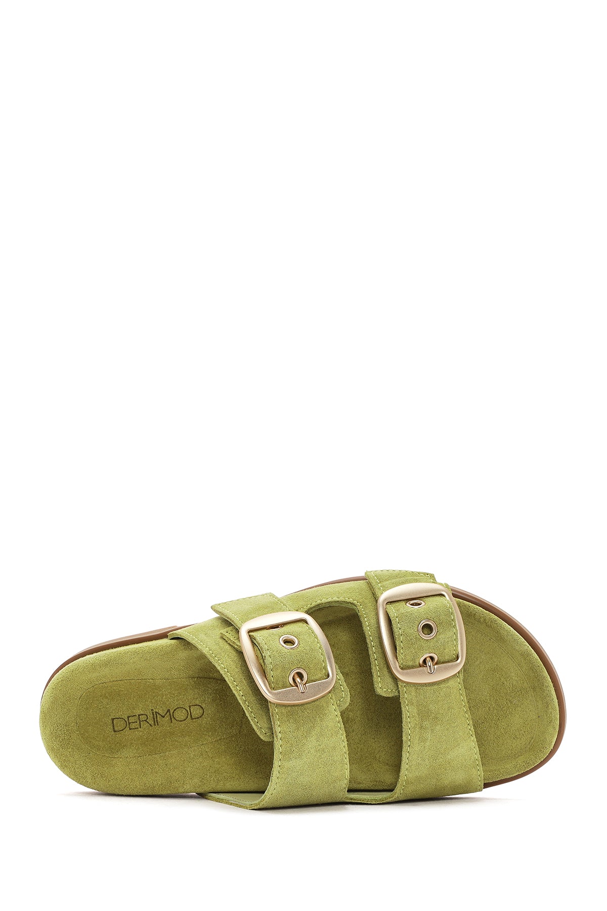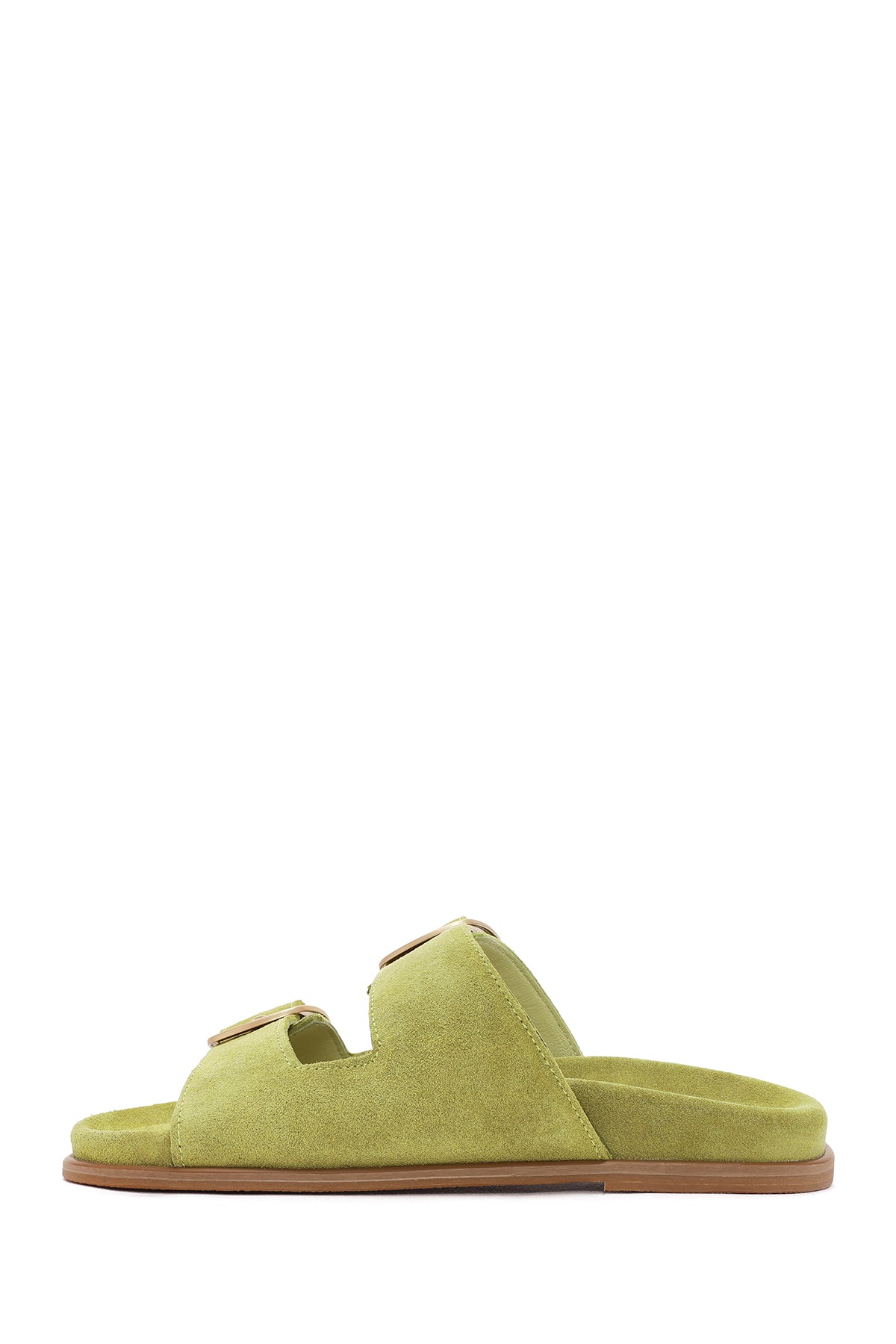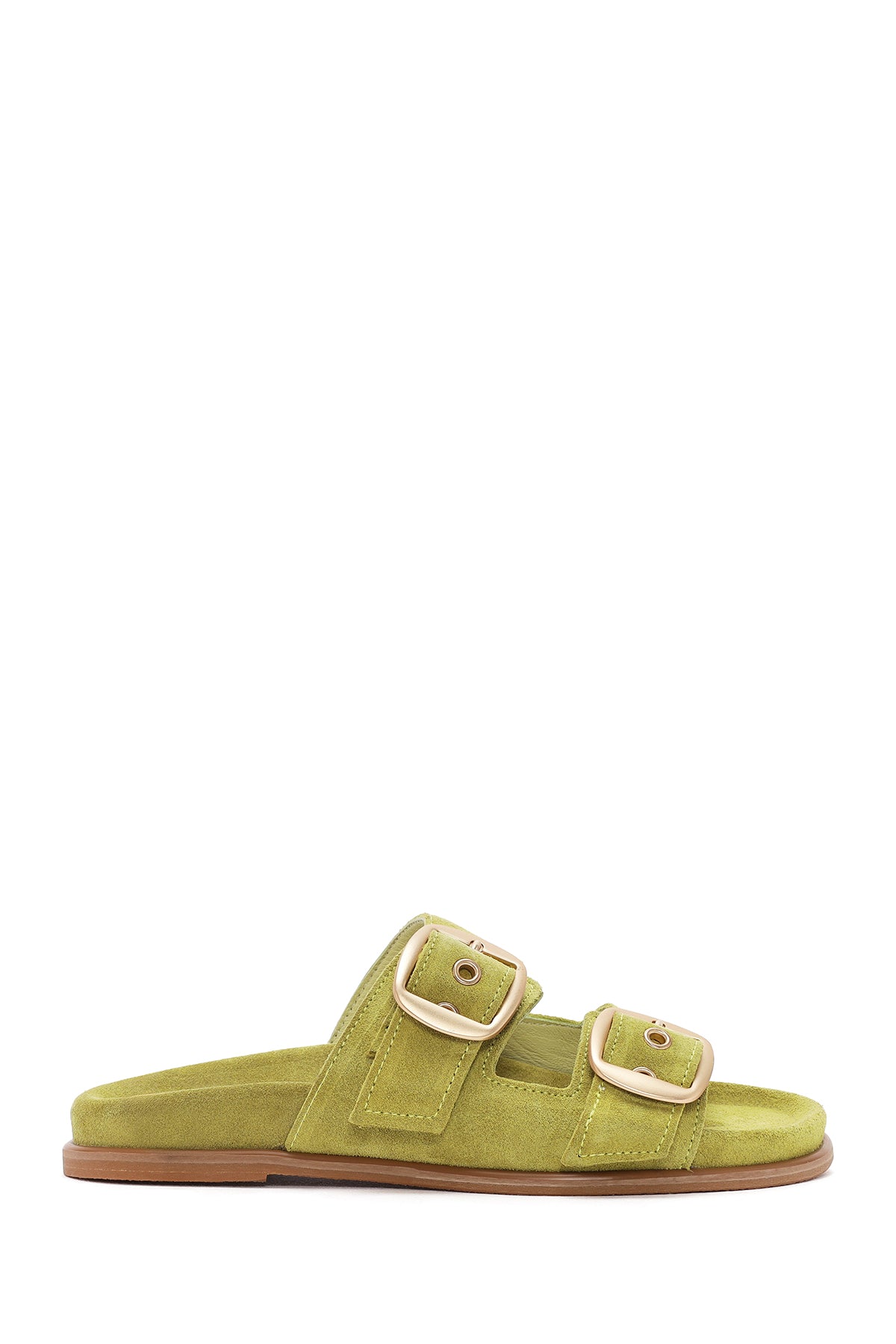 Kadın Yeşil Tokalı Süet Deri Terlik
