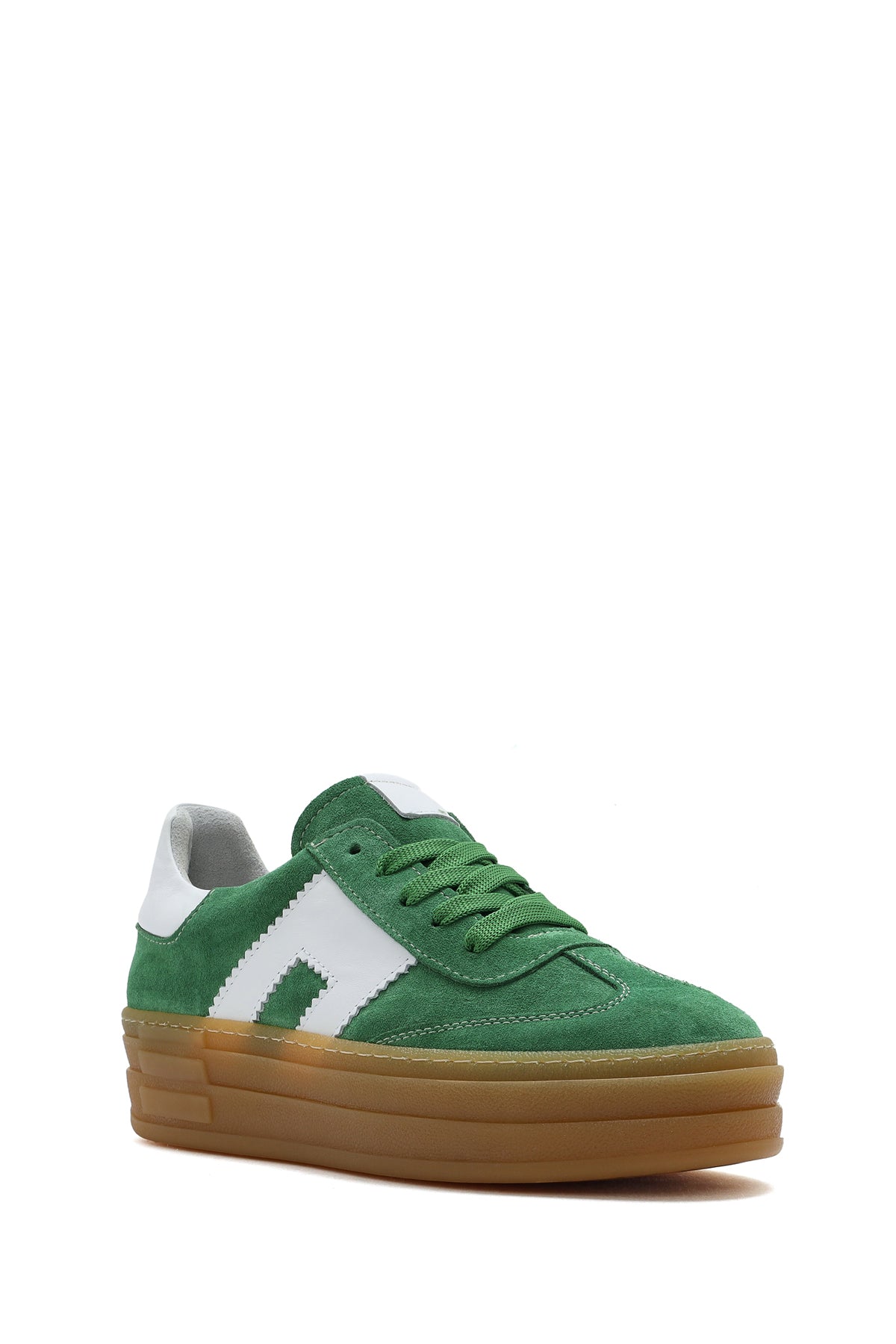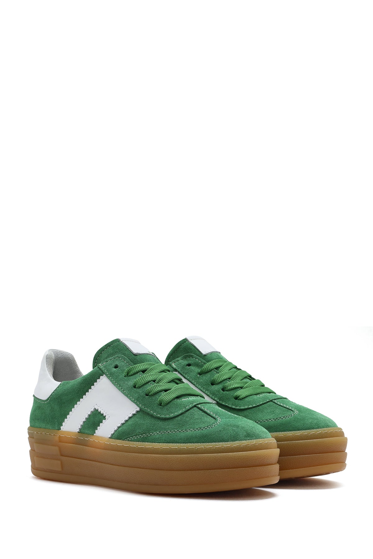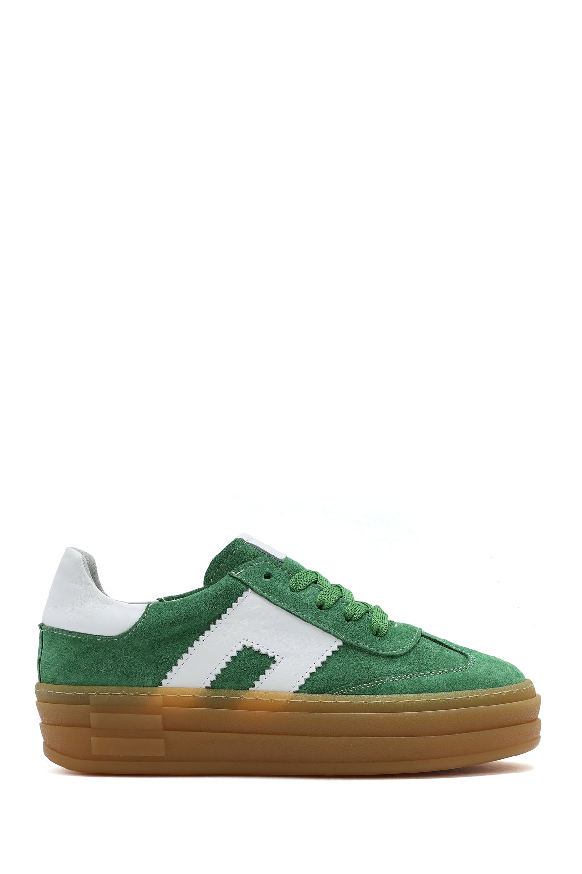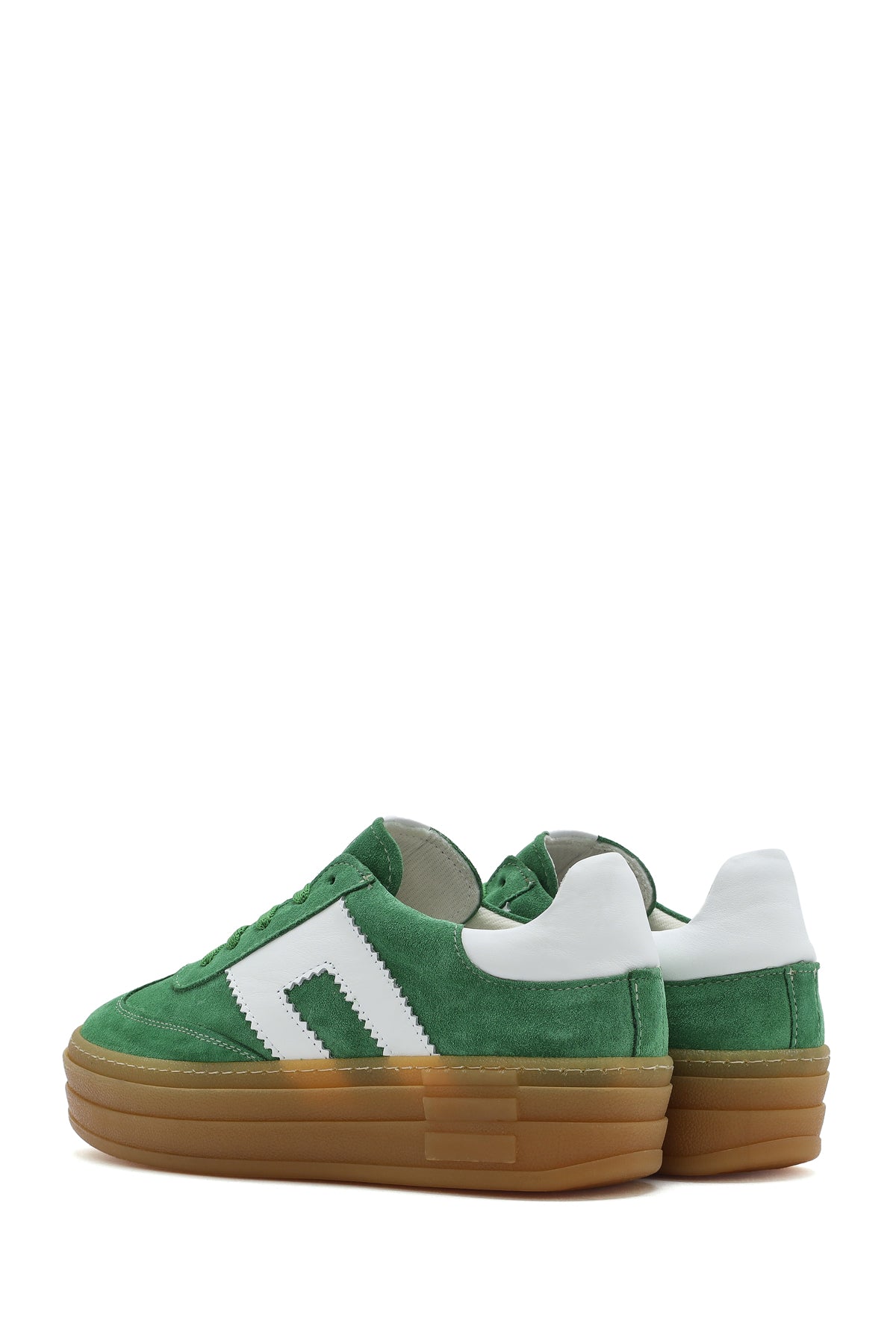 Kadın Yeşil Bağcıklı Süet Deri Sneaker