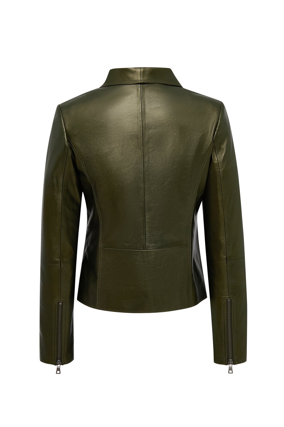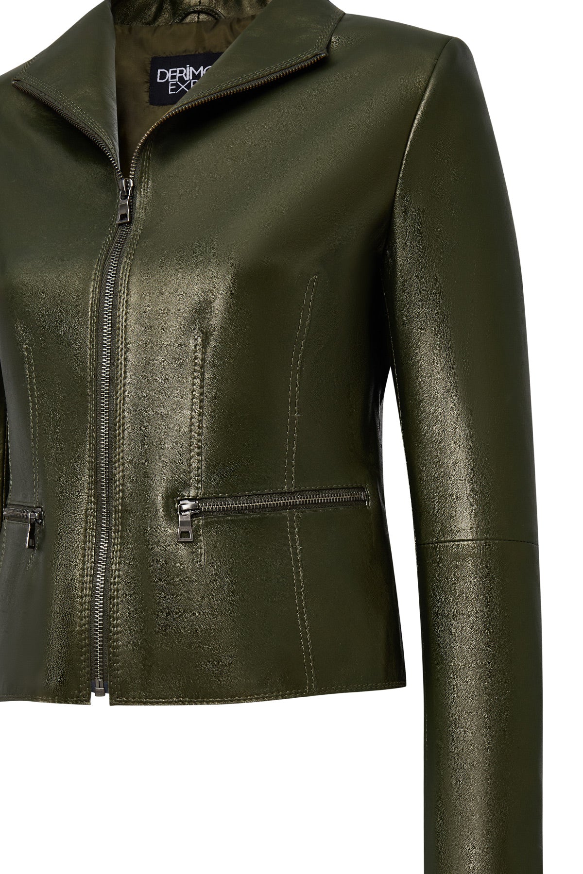 کت چرمی زنانه سبز یقه برگردان Amy دری مد