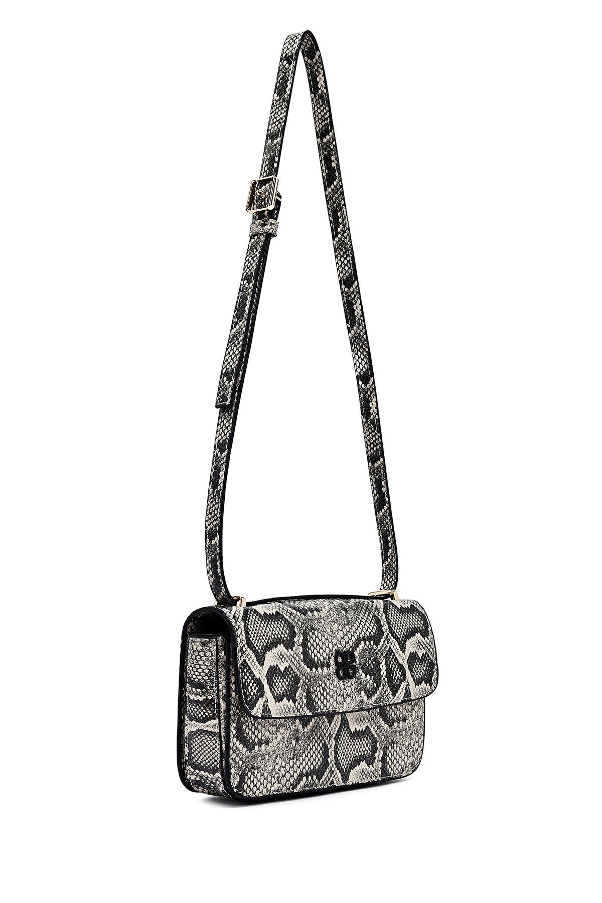 Kadın Gri Uzun Askılı Desenli Çapraz Çanta