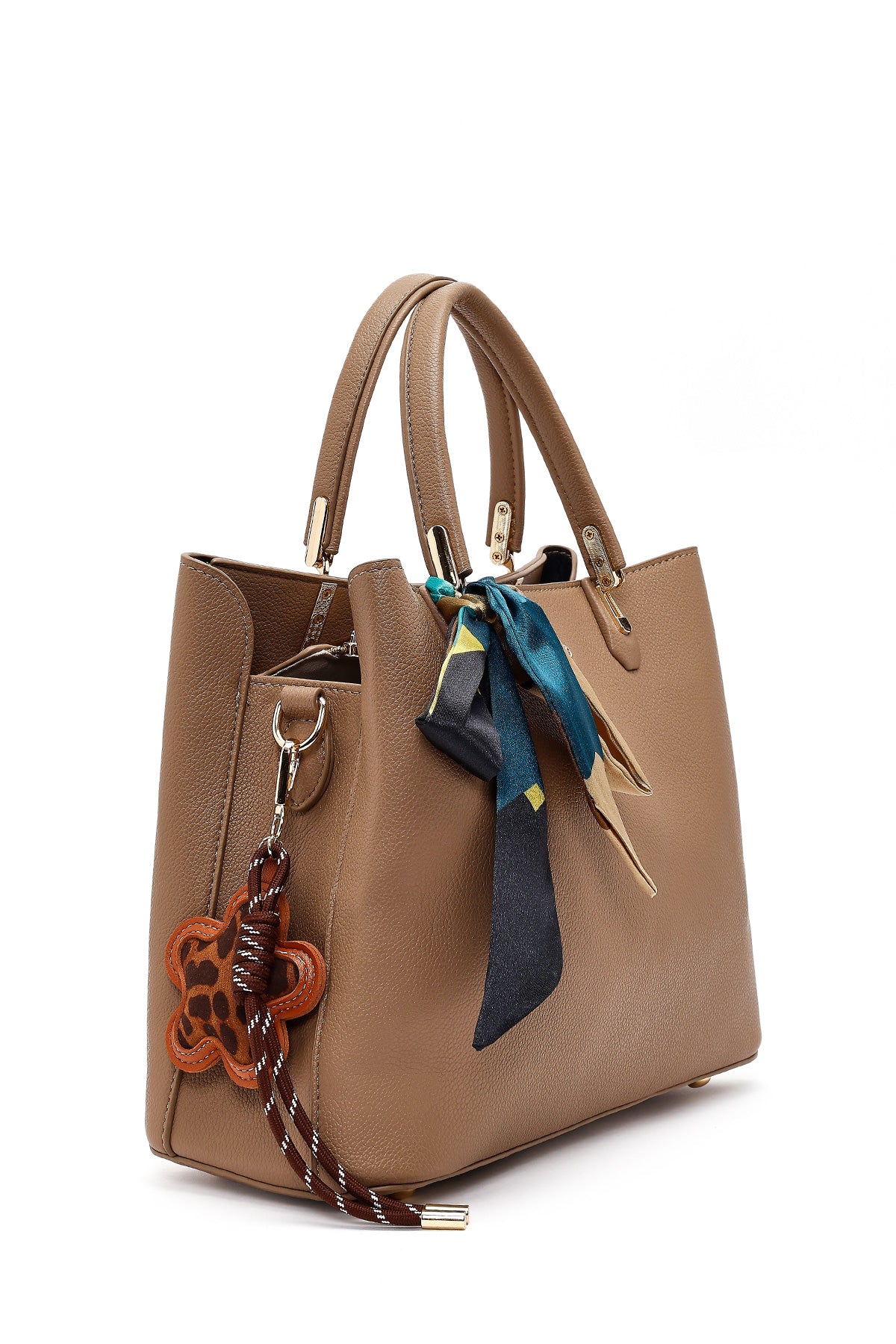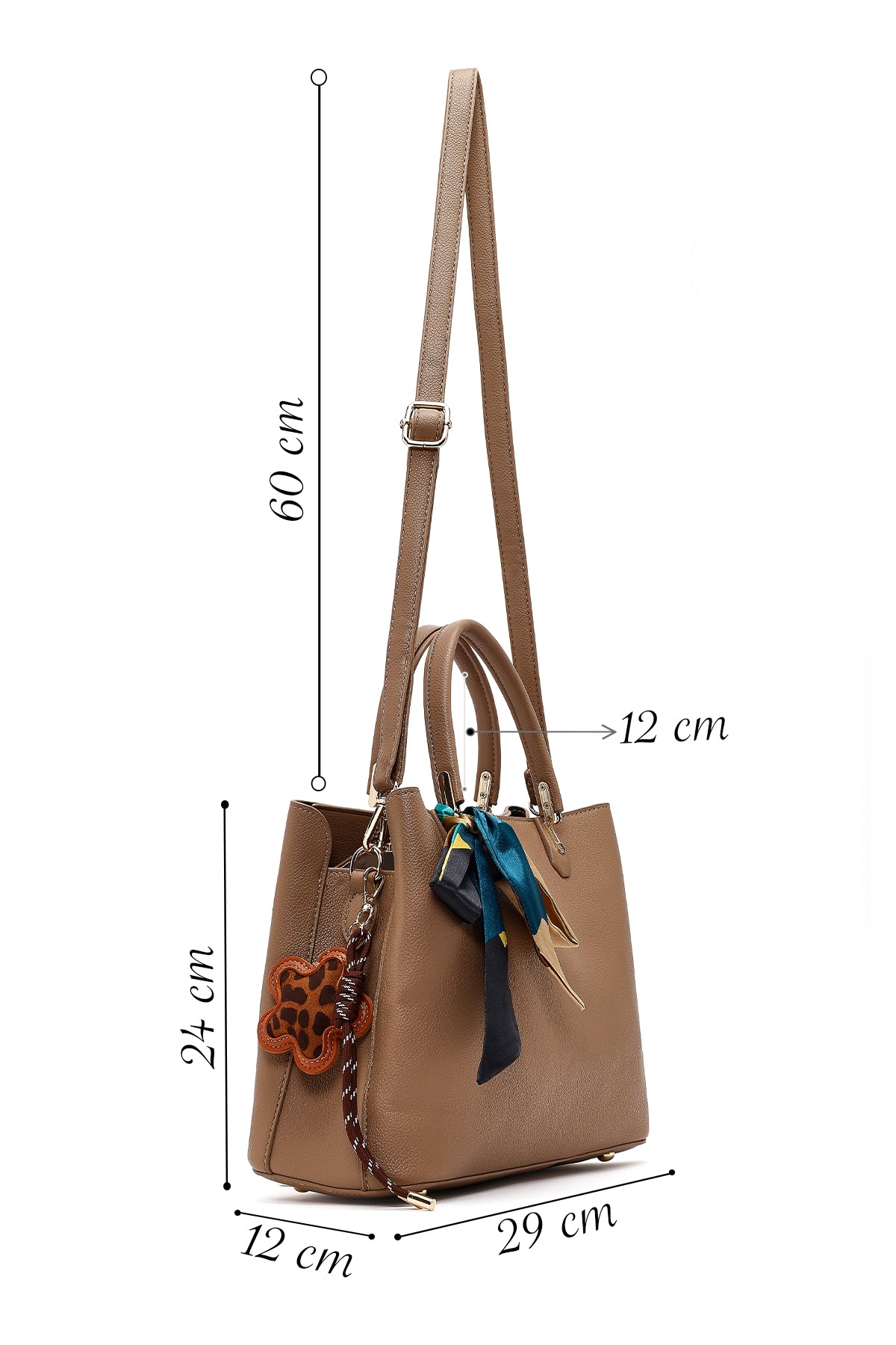 کیف زنانه طوسی بلند بنددار با اکسسوری دری مد