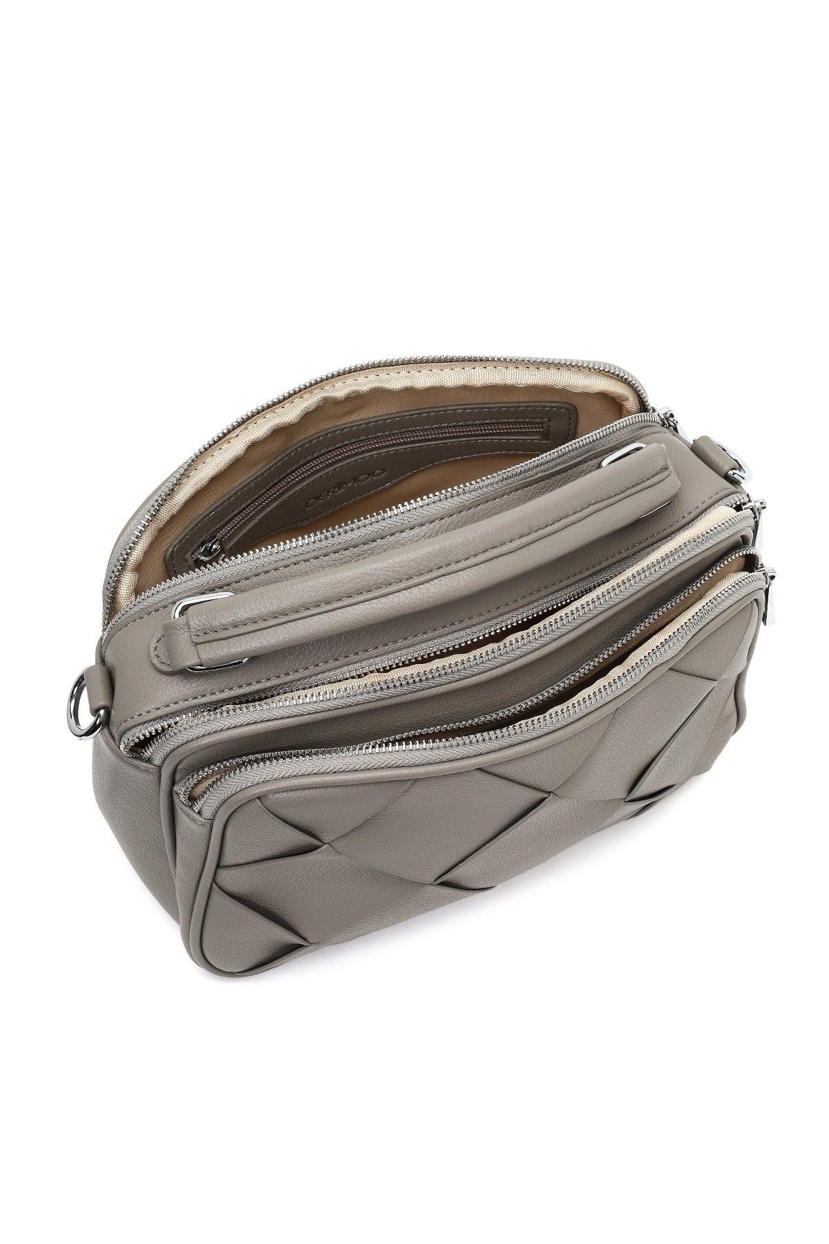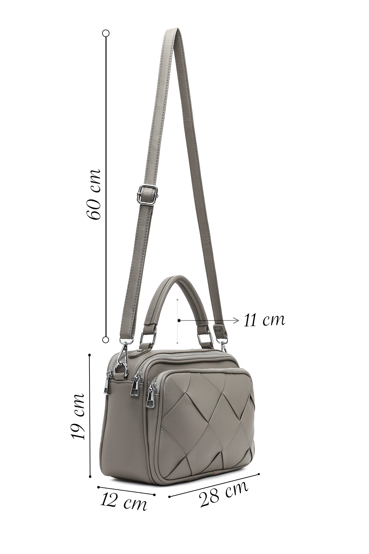 کیف زنانه خاکستری بلند بنددار بافتنی دری مد