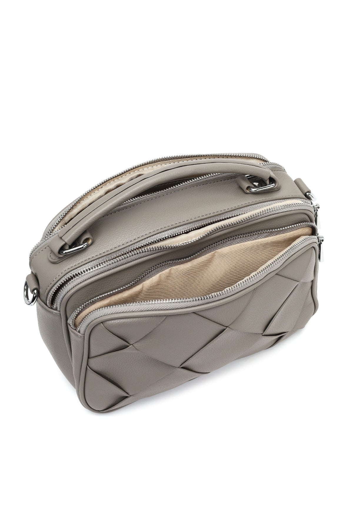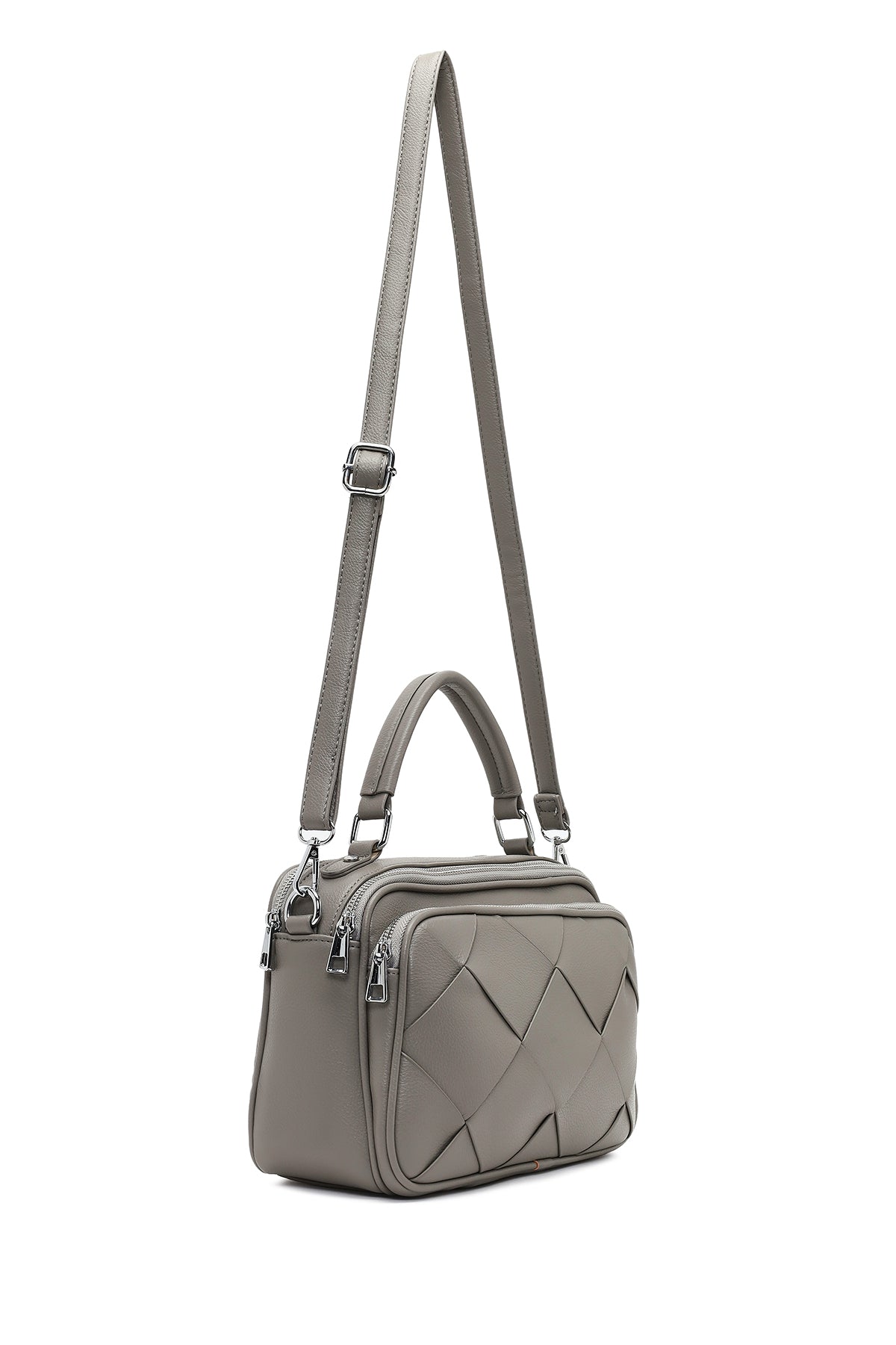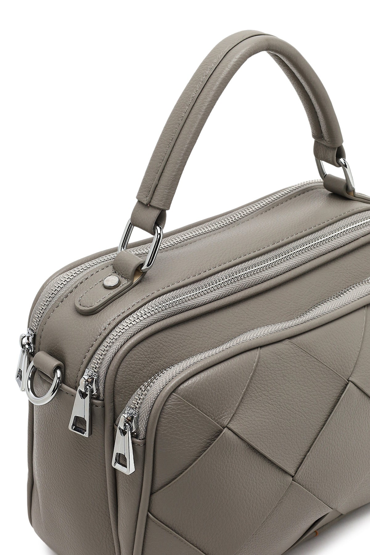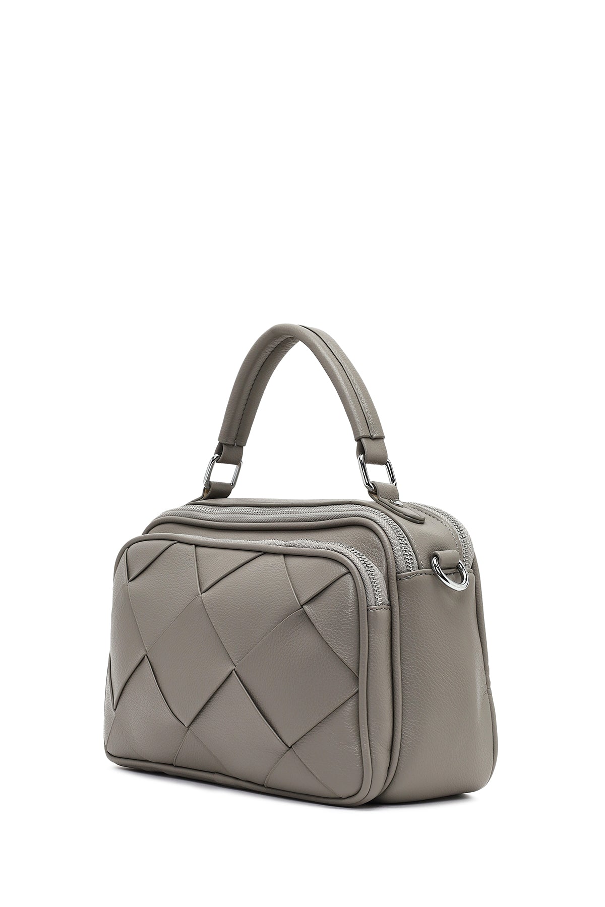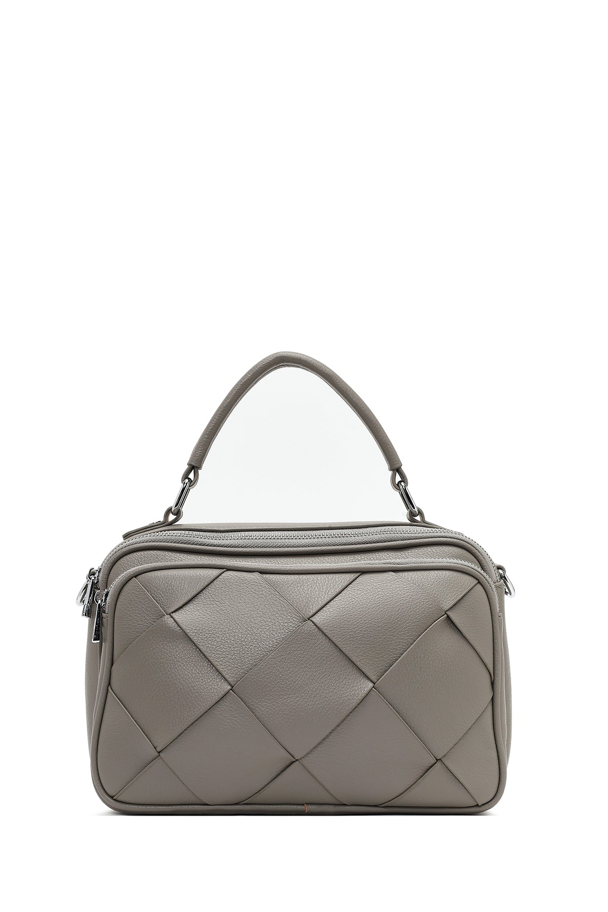 Kadın Gri Uzun Askılı Örgülü Kol Çantası