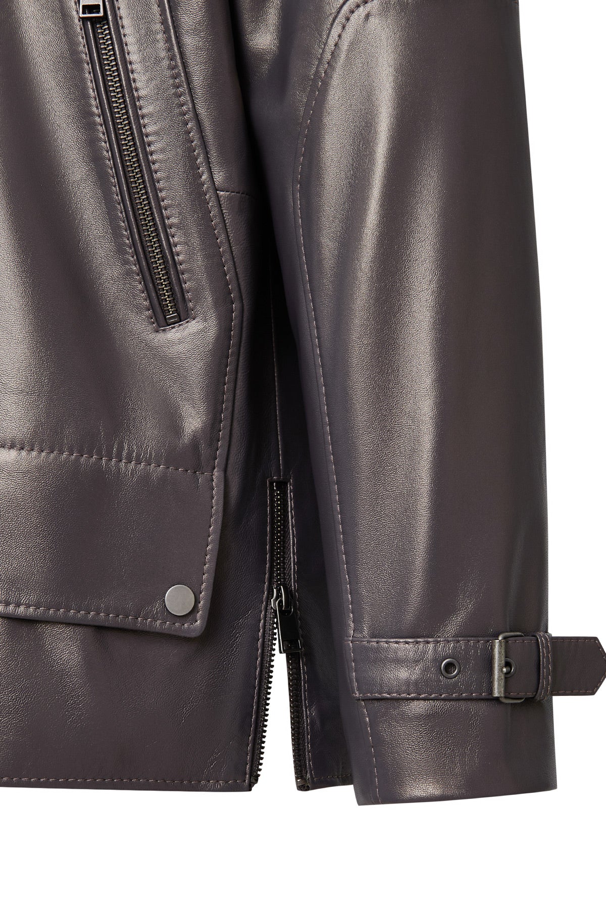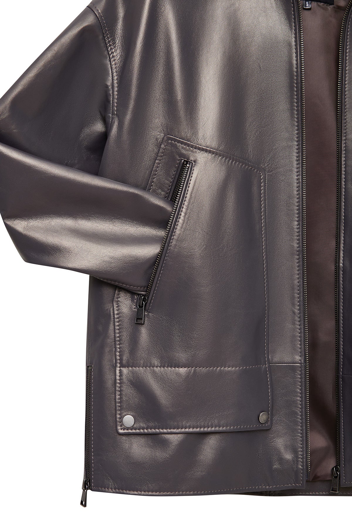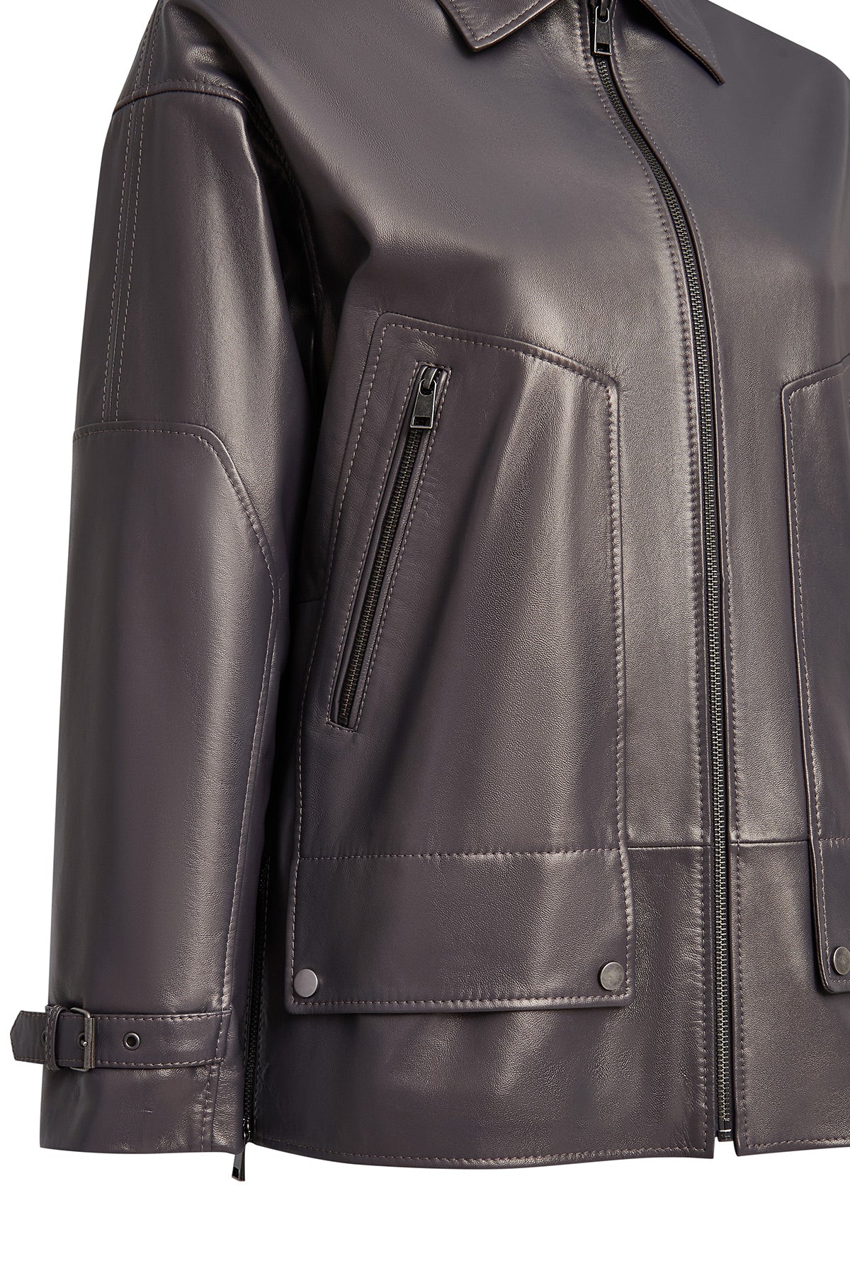 Rosalin Kadın Gri Gömlek Yaka Oversize Deri Mont