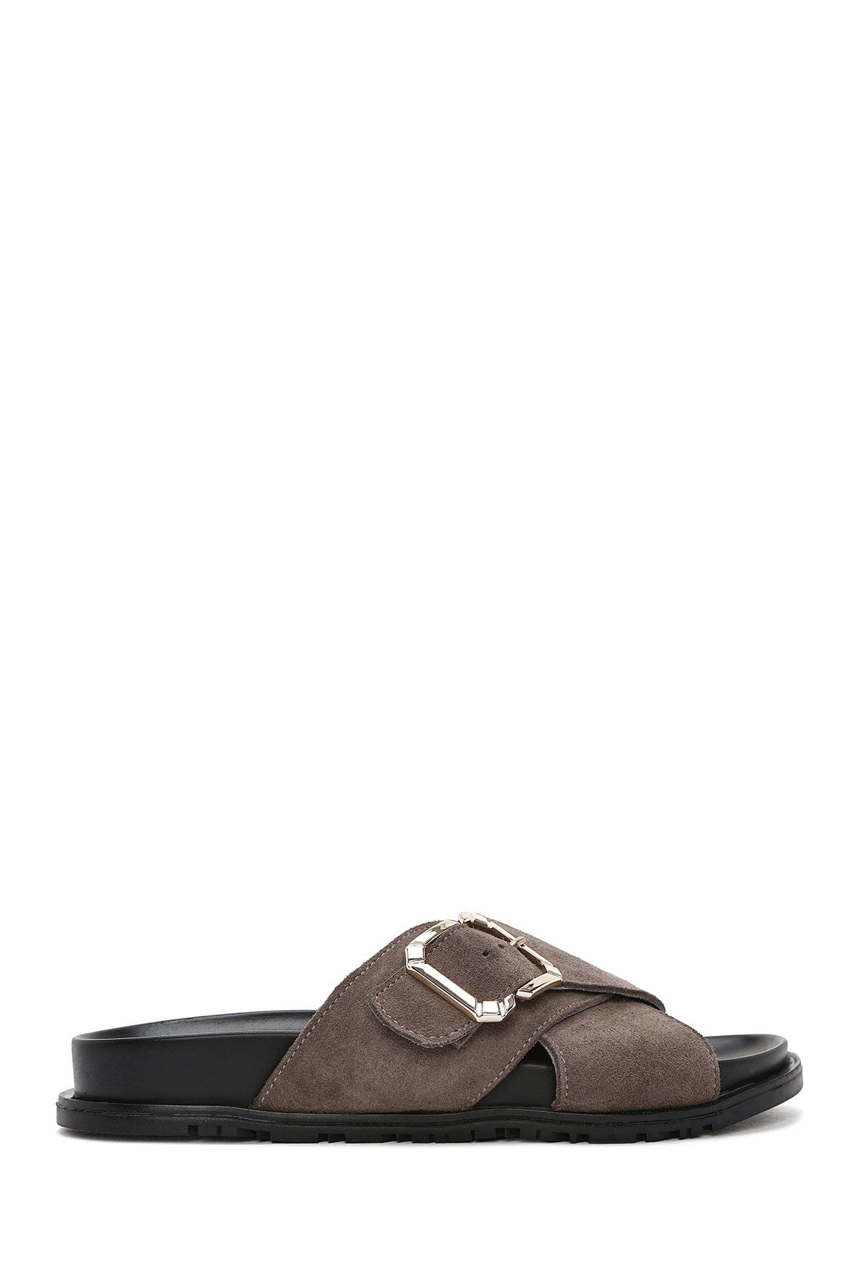 Kadın Vizon Tokalı Süet Deri Terlik